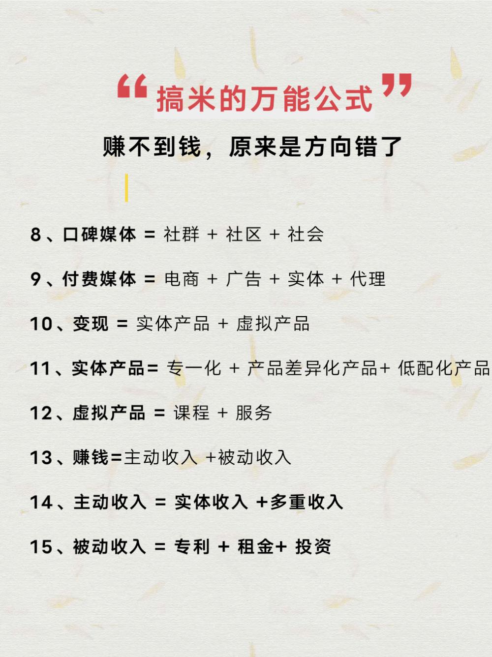 “搞米的万能公式”赚不到钱,原来是方向错了😓 #认知#富人思维#创业#强者