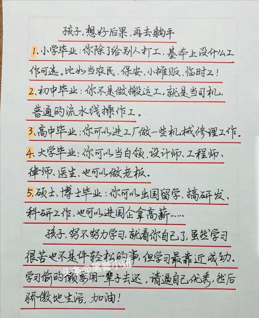 不愧是大才子董宇辉,用5句话说服孩子努力学习,这是我见过最好最全的答案!总有一句能叫醒躺平的孩子! 天才之所以卓越非凡,并非天资超人一等, 而是付出了持续不断的努力。 读书,是普通人逆风翻盘的唯一“捷径”。贫者因书而富,富者因书而贵、贵者因书而守成、忠厚传家长久,诗书继长。 …… 让孩子明白读书的意义,梦要考自己去实现,给孩子准备一本《孩子,为自己读书》!孩子看完之后,成绩直线上升! 孩子为你自己读书