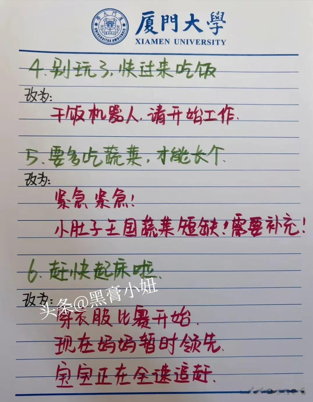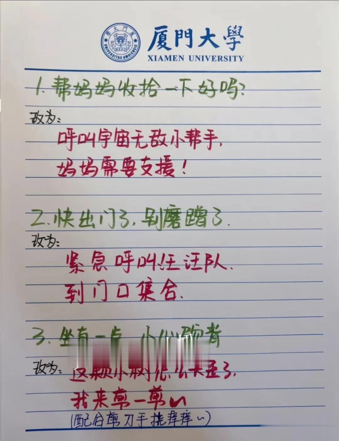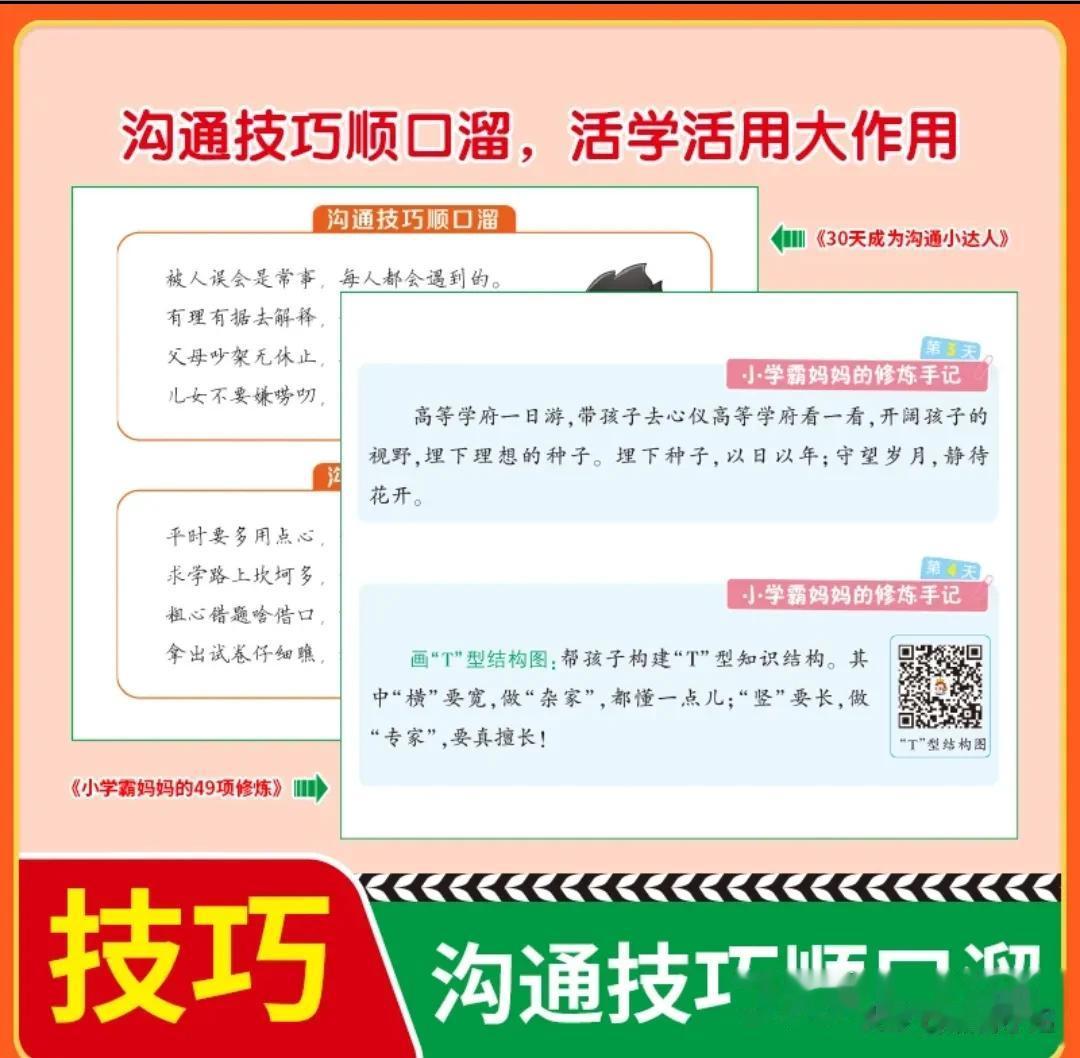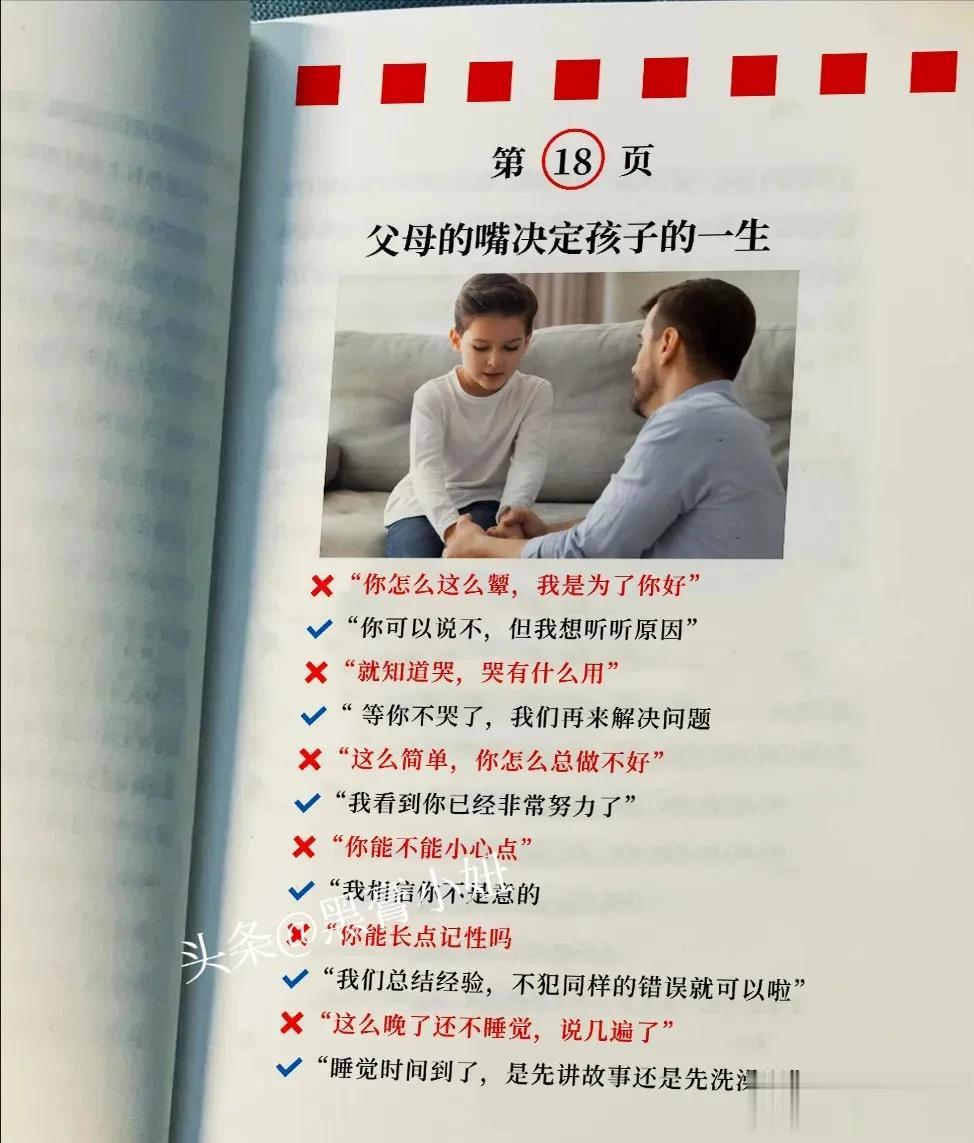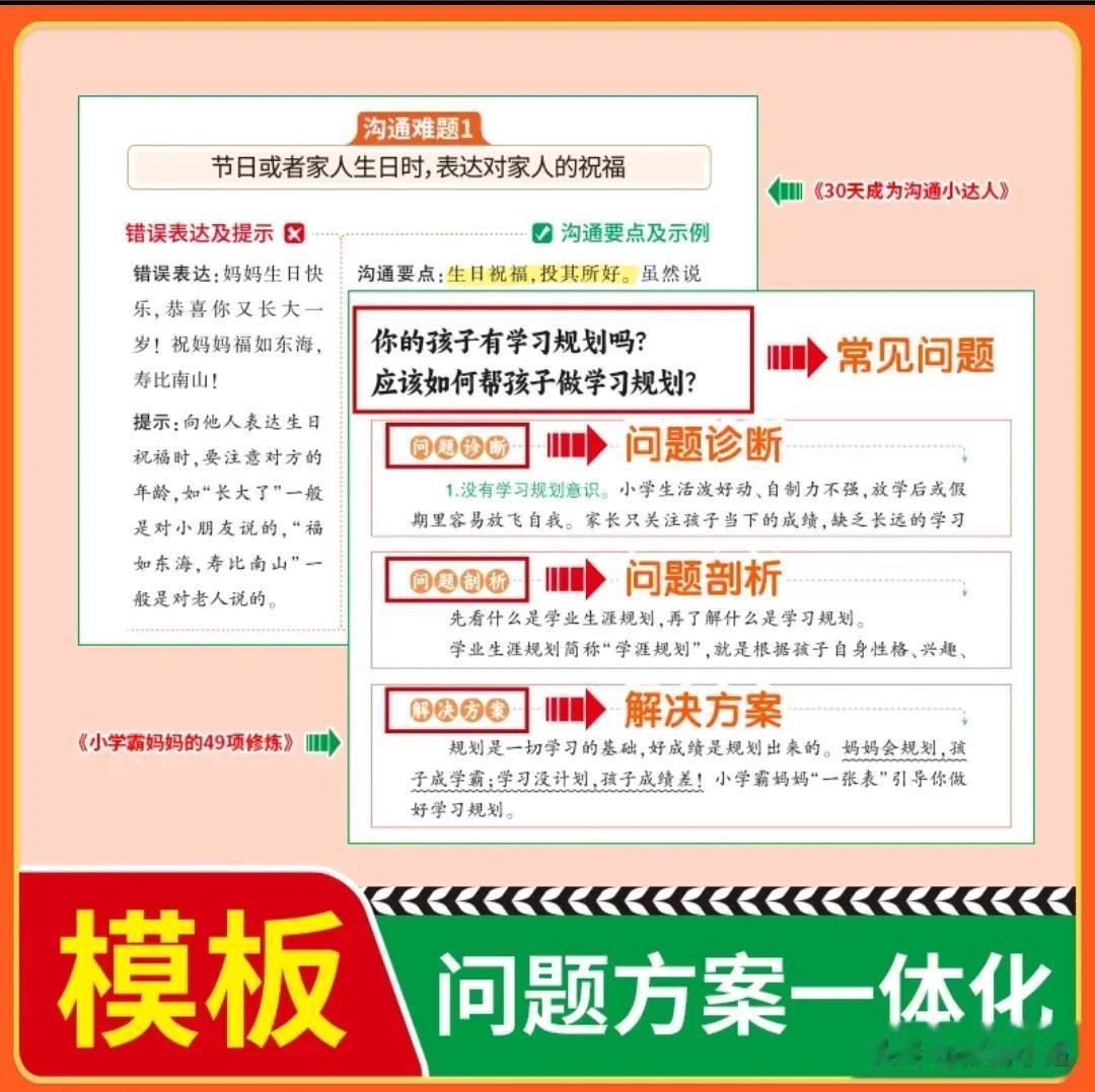 一位985学霸妈妈直言:换种方式说话,孩子会屁颠屁颠配合你!这就是亲子关系语言的力量,好孩子都是夸出来的,夸出孩子“内驱力”,夸出“优良作风”,夸出“好习惯”,夸出……不懂怎么夸孩子,把这些背下来当口头禅! 不要语言暴力! 比如帮妈妈收拾一下好吗? 改为:呼叫宇宙无敌小帮手,妈妈需要支援! 快出门了,别磨蹭了! 改为:紧急呼叫汪汪队到门口集合. 坐直一点,小心驼背 改为:这颗小树怎么长走了,我来剪一剪 (配合剪刀手挠痒痒~) 撒谎时:嘴里没有一句实话!长大还了得? 改为:你害怕被指责,害怕我不爱你,所以没说真话,我相信你不是故意的。 你怎么这么颦,我是为了你好 改为:你可以说不,但我想听听原因 就知道哭,哭有什么用 改为:等你不哭了,我们再来解决问题 这么简单,你怎么总做不好 改为:我看到你已经非常努力了 你能不能小心点 改为:我相信你不是意的 …… 父母的嘴会影响孩子的一生,让孩子成为一位会沟通、有教养的优秀孩子,推荐下方这本书来养成!常见难题全覆盖,解决方案助修炼!孩子看了之后更听话了,大人看了之后,知道怎么培养孩子了。 学霸妈妈的修炼