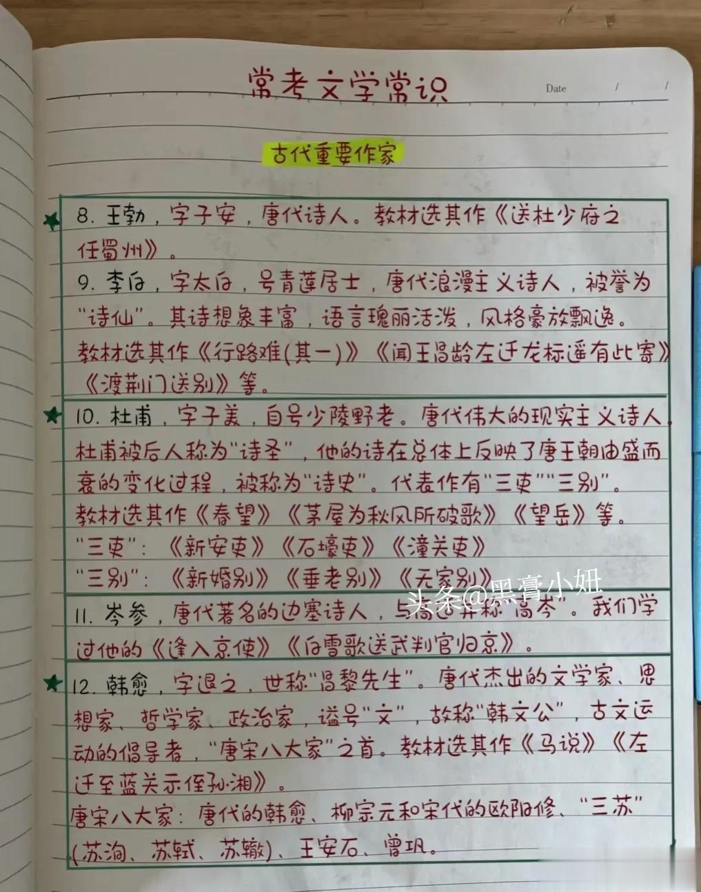 据说这是一位退休多年的老干部,为了帮助初中的孙女语文考试少丢分,特意整理出来一份四大名著和文学常识必考知识点,孩子学完后语文成绩提高了20+。家里有孩子的,为了孩子保存下来,尽早让孩子看一看,不管是小学初中高中,还是将来孩子公务员、事业编考试都能用上。 语文必背名著文学常识