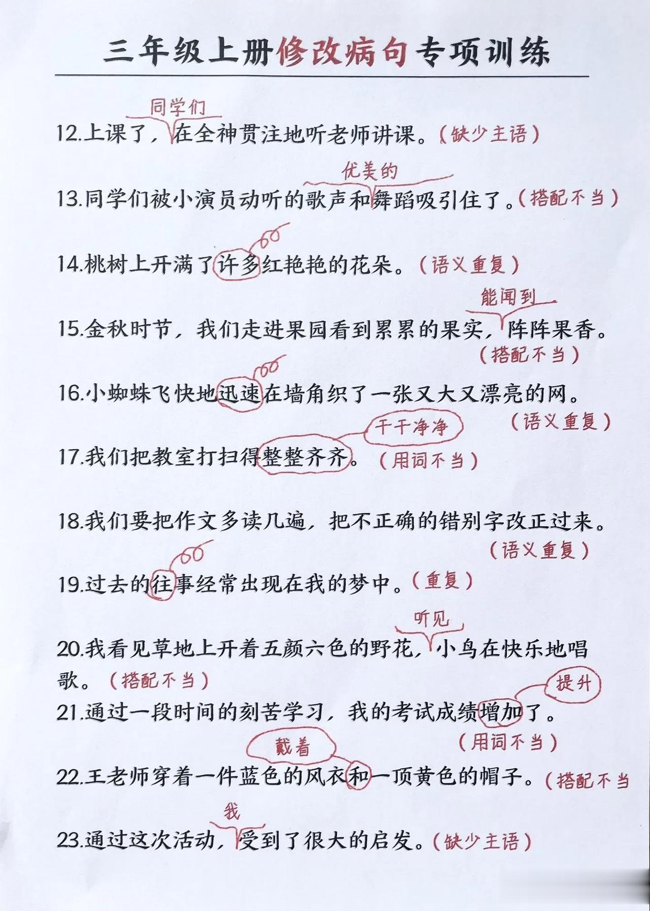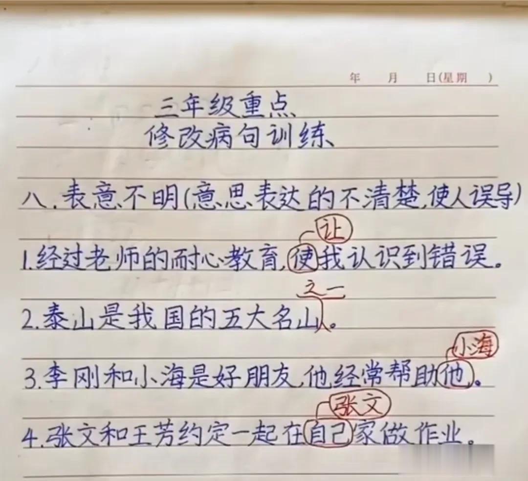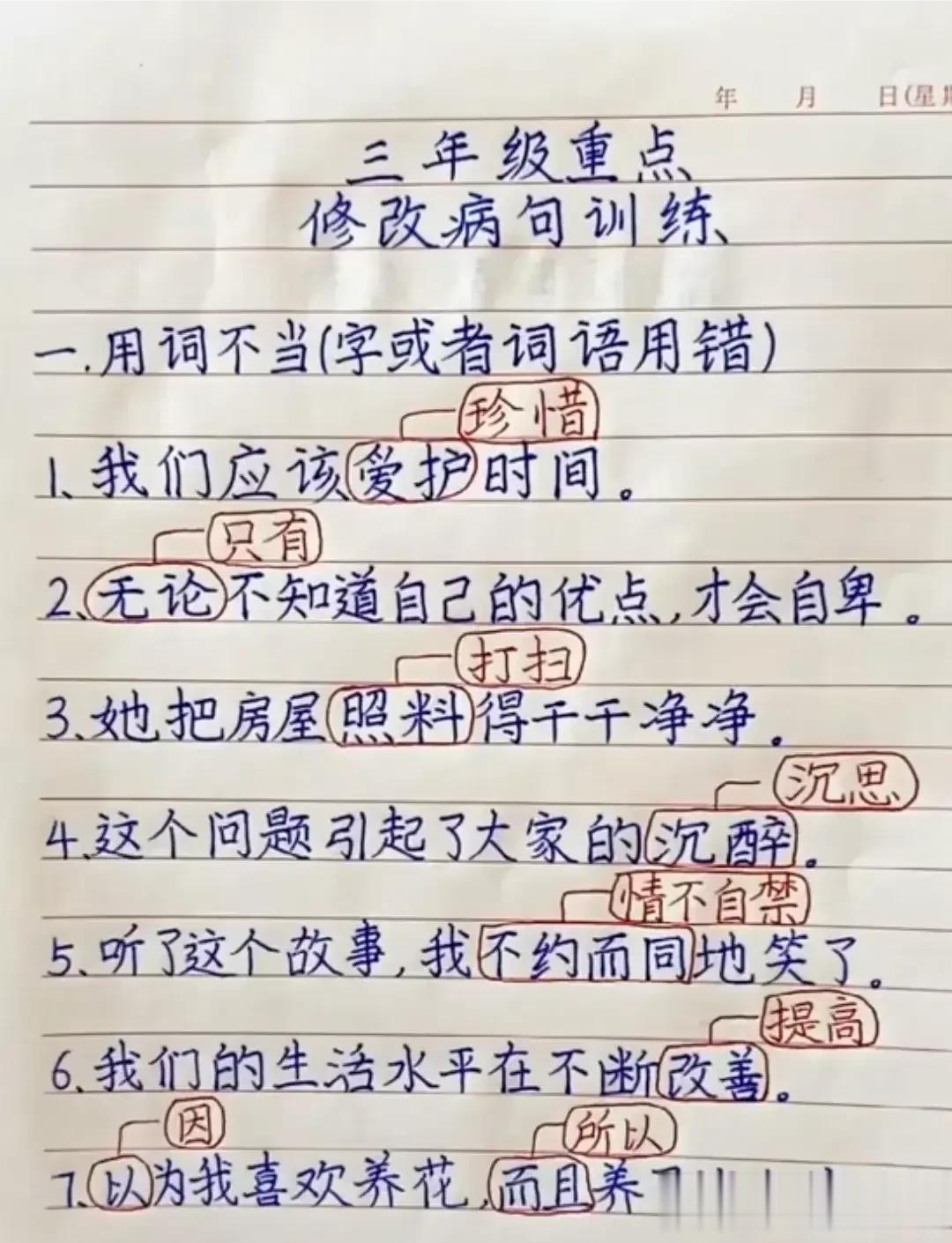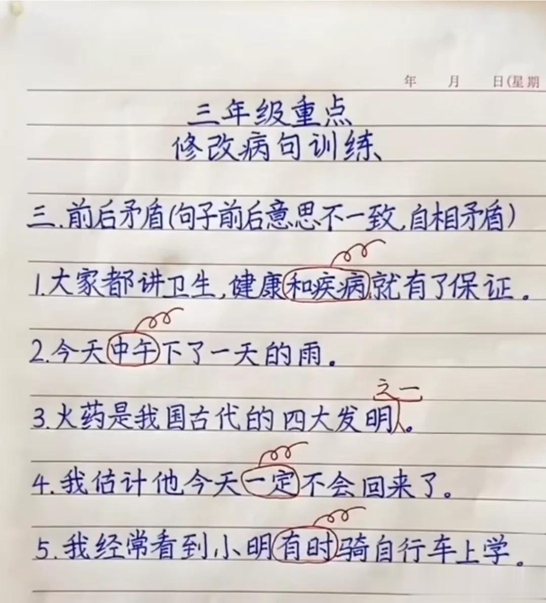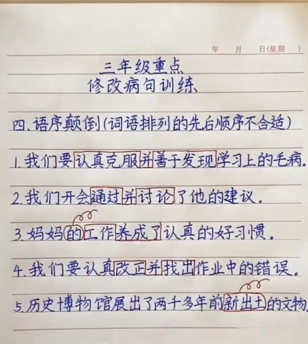 “太卷了”!三年级孩子竟然将常见的八种修改病句的方法和例题全都手写整理出来,这是我见过最全最完整的笔记,有方法有口诀有例题,家有孩子的保存,考试拿高分! 句式训练大全同步习作