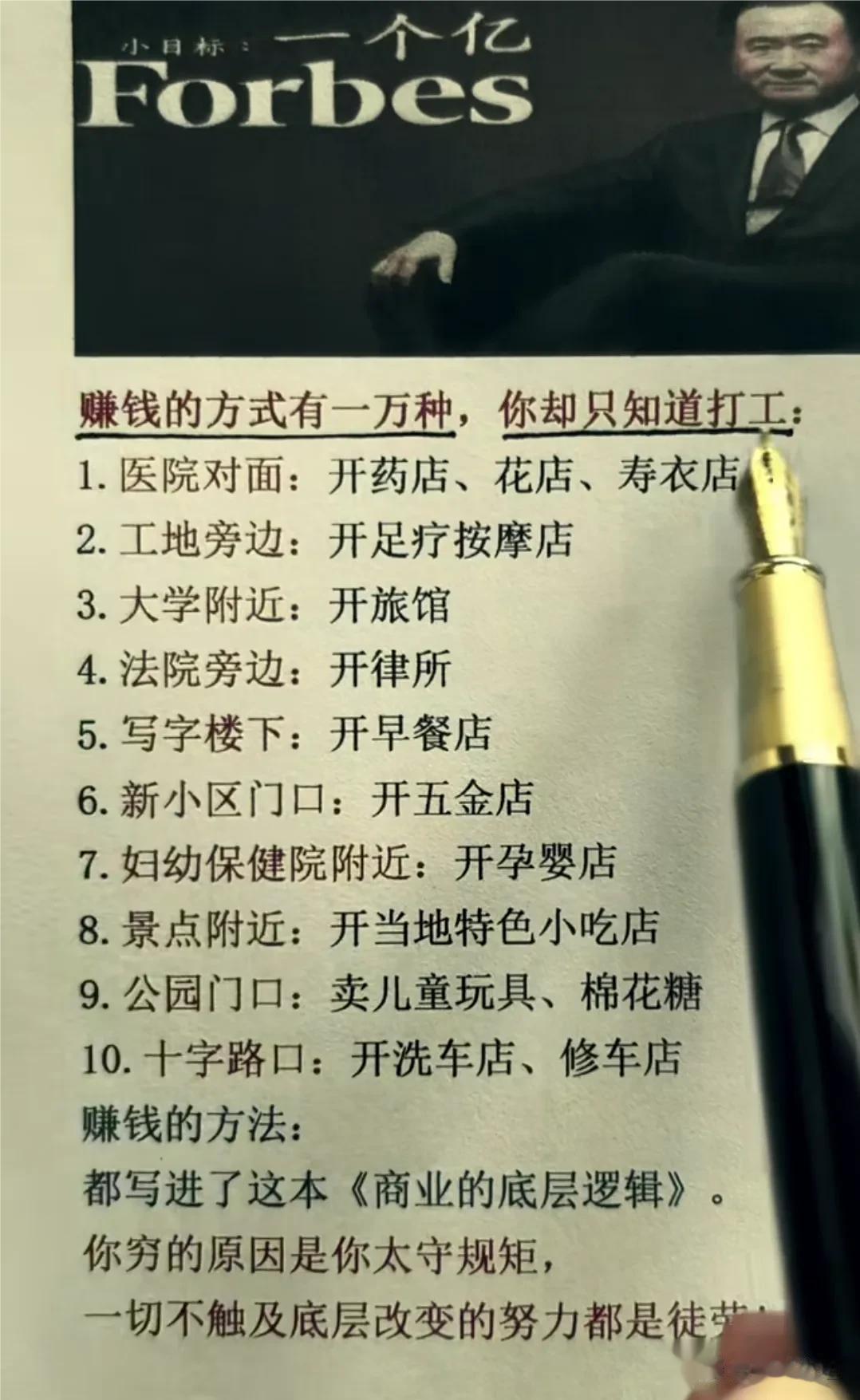 天啦!真的万万没想到,搞钱还有万能公式!套用这个公式,你就知道哪些生意是真正的高利润!让你看清商业的底牌,在搞钱路上如鱼得水!让你的财富稳步增值! 一位富商直言:赚钱的方式有一万种,你却只知道打工;你穷的原因是你太守规矩,一切不触及底层改变的努力都是徒劳。并总结出当下流行的赚钱方法,看完之后,真的后悔的知道太迟了! 如果你还不确定哪些生意是真正的高利润,这套《商业的底层逻辑》一定会带给你一个全新的认知。