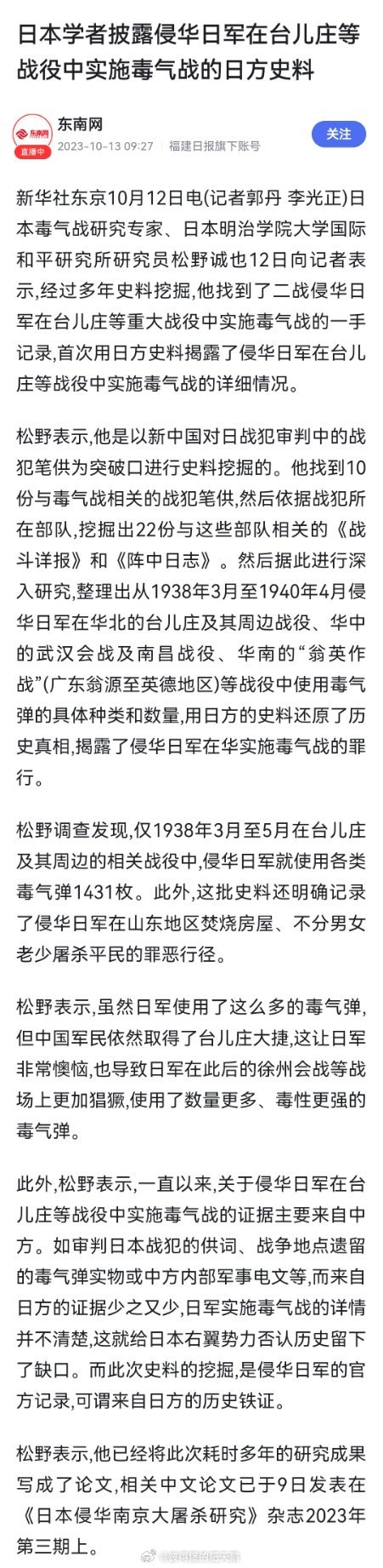 值得注意的是,85年前,侵华日军对我抗日军民同样也使用过毒气弹(见图2)。这是日本明治学院大学国际和平研究所研究员松野诚在整理新中国对日本战犯审判中的战犯笔供进行史料挖掘出来的。近日,他向记者表示,经过多年的史料研究,他找到了二战侵华日军在台儿庄等重大战役中实施毒气战的一手记录,首次用日方史料揭露了侵华日军在台儿庄等战役中实施毒气战的详细情况。