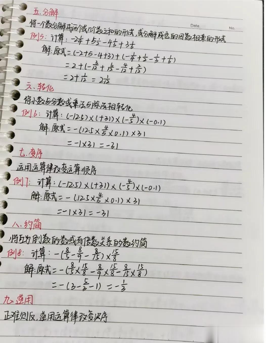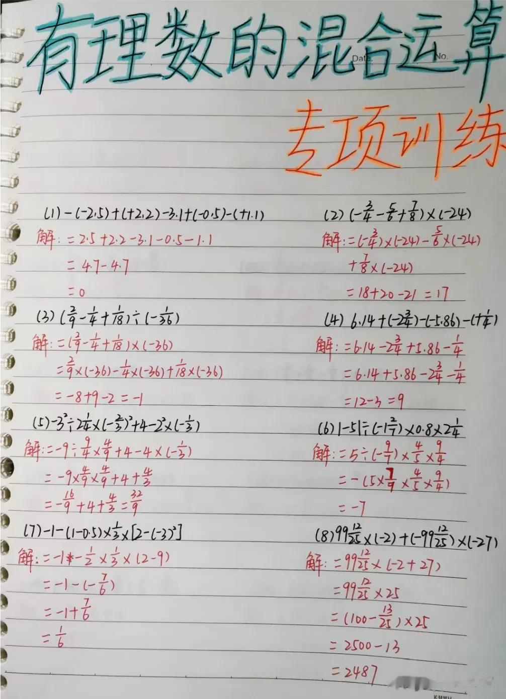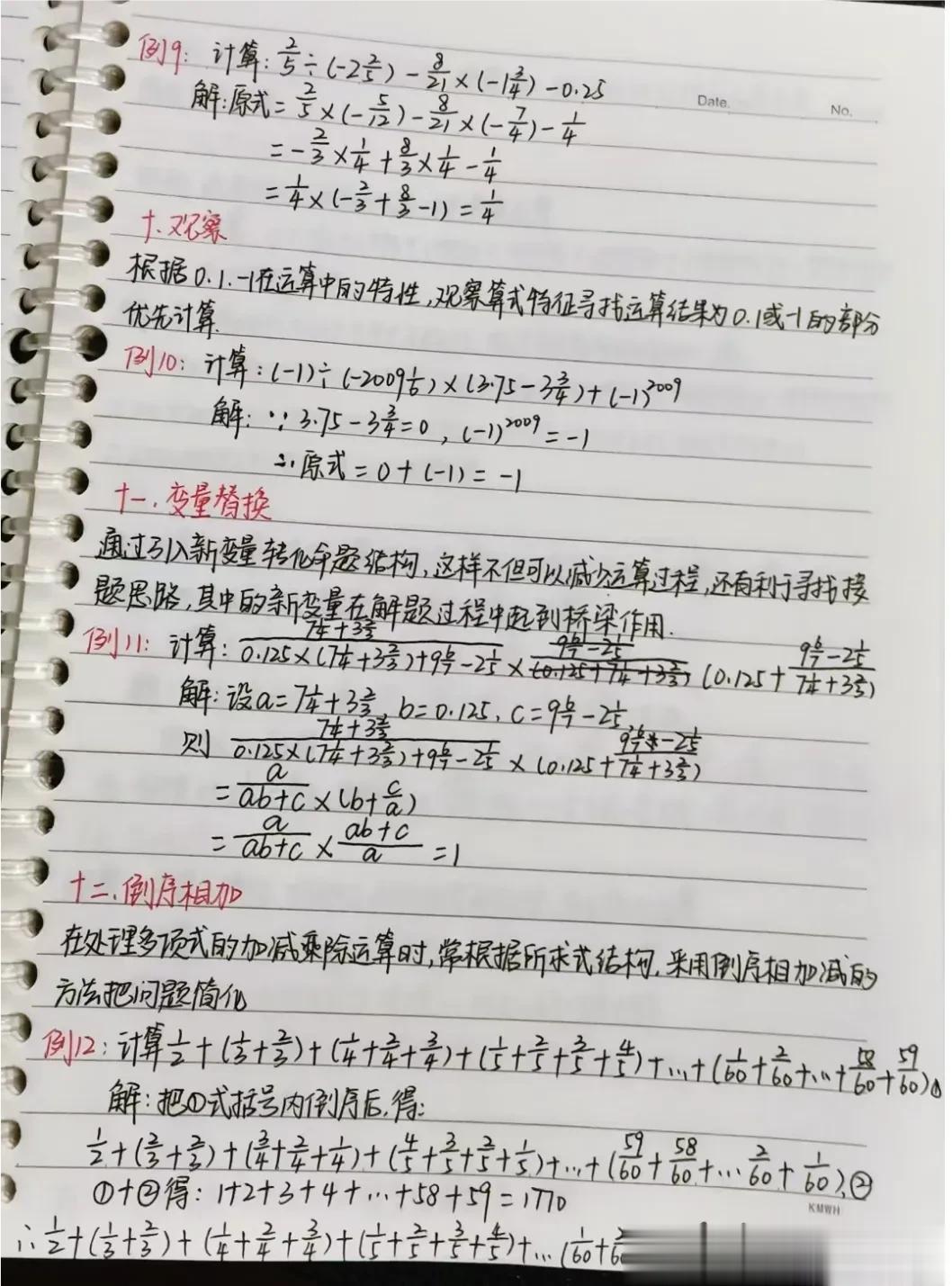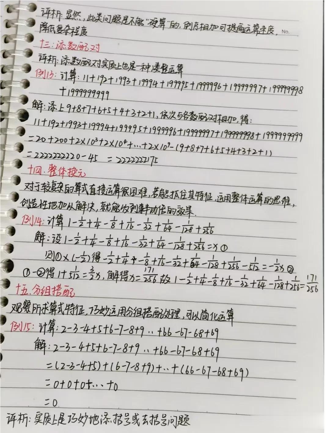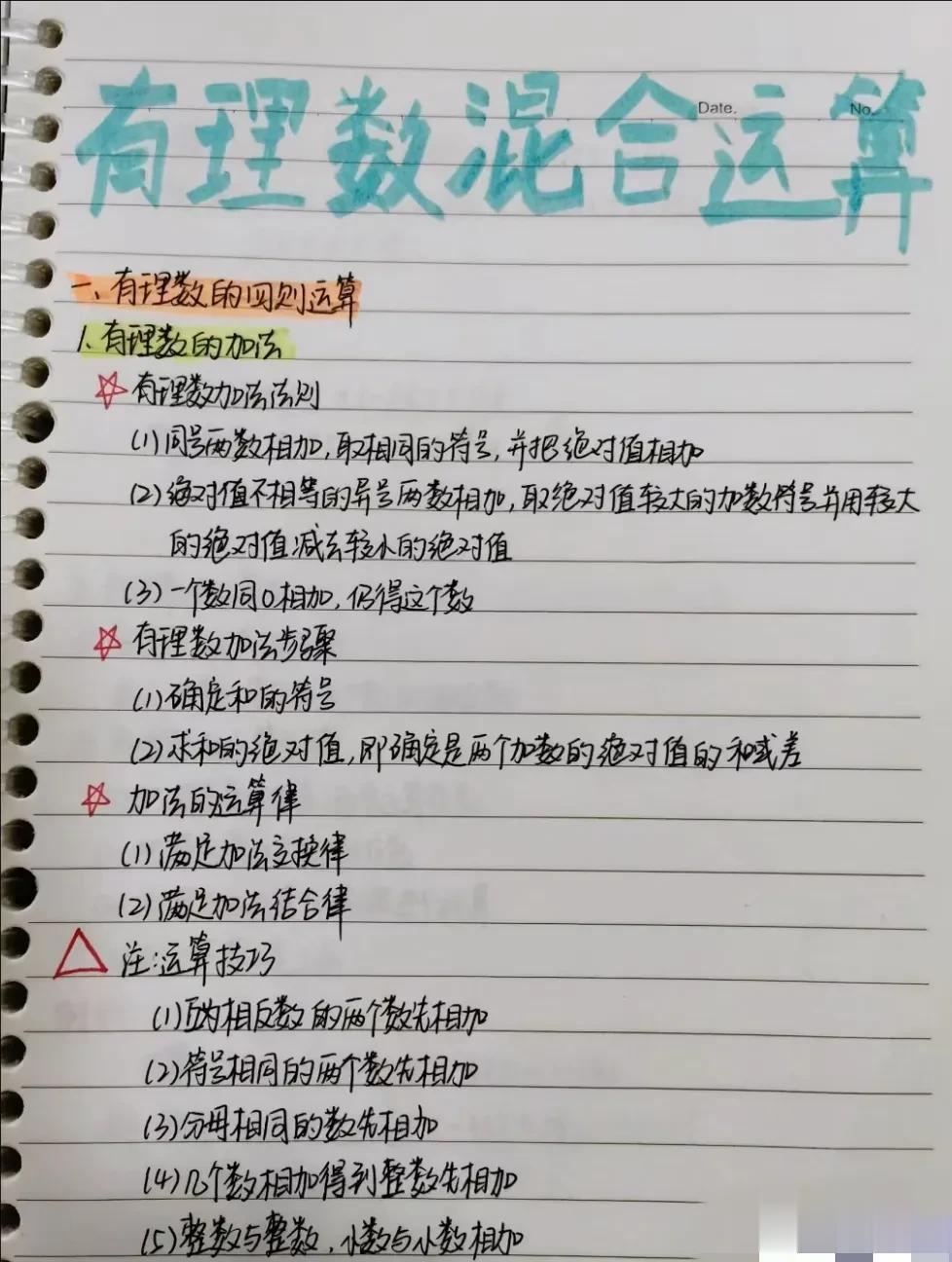 一位十年尖子班数学老师建议:初一数学成绩不好,千万不要去补课!就把这份有理数运算技巧中的15个“小诀窍”,熟练掌握,相信对有理数运算会更加得心应手了。这份老师的手写笔记,简直太惊艳了!赶紧给孩子收藏保存下来!没事让孩子练一练,数学考试拿高分! 初中数学不难,无非就是计算、几何、压轴题,只要有正确的技巧,就能够轻松应对各种数学难题。