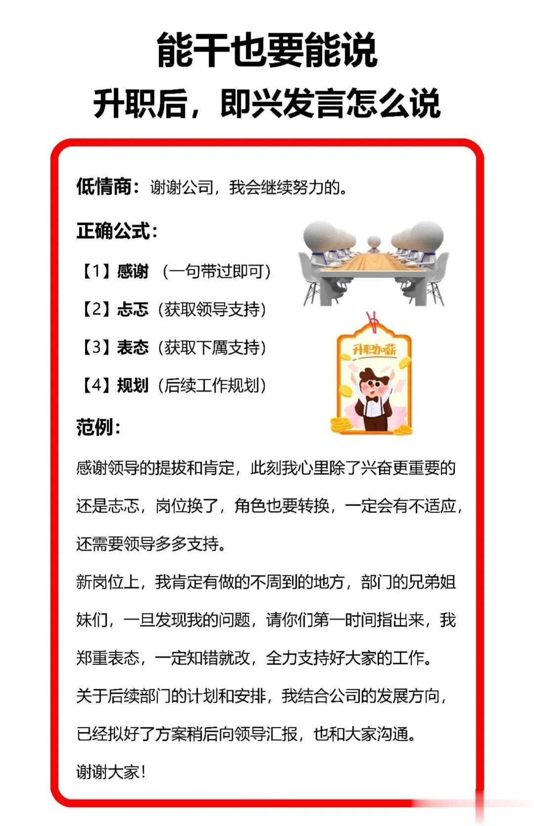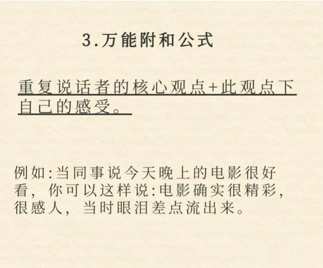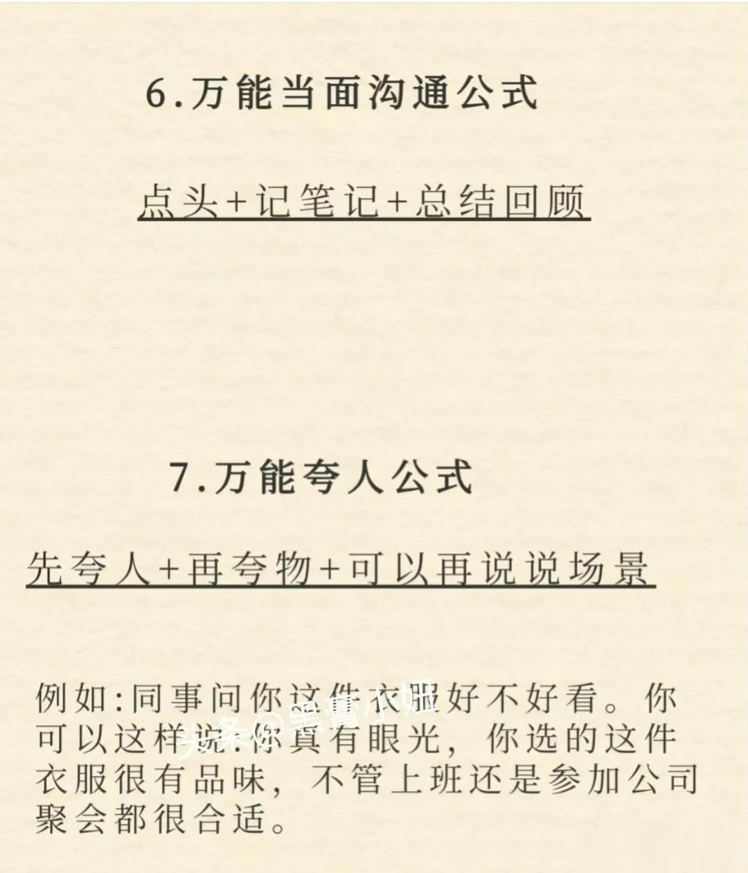 天呐!第一次见到这么全的即兴发言和说话沟通公式,一开口就赢了,简直是秒杀同龄人!什么自我介绍公式、倾听公式、万能附和公式、反套路公式、夸人公式、沟通公式、转移话题公式、被领导表扬发言公式、年会发言公式等等,简直是方方面面的全整理在这了,想提高说话技巧和发言能力的,看这篇就够了! 无论生活还是工作中,表达能力都是非常重要的技能,你看看身边的大领导,有哪位不是发言高手。赶紧系统的学起来! 脱稿演讲与即兴发言
