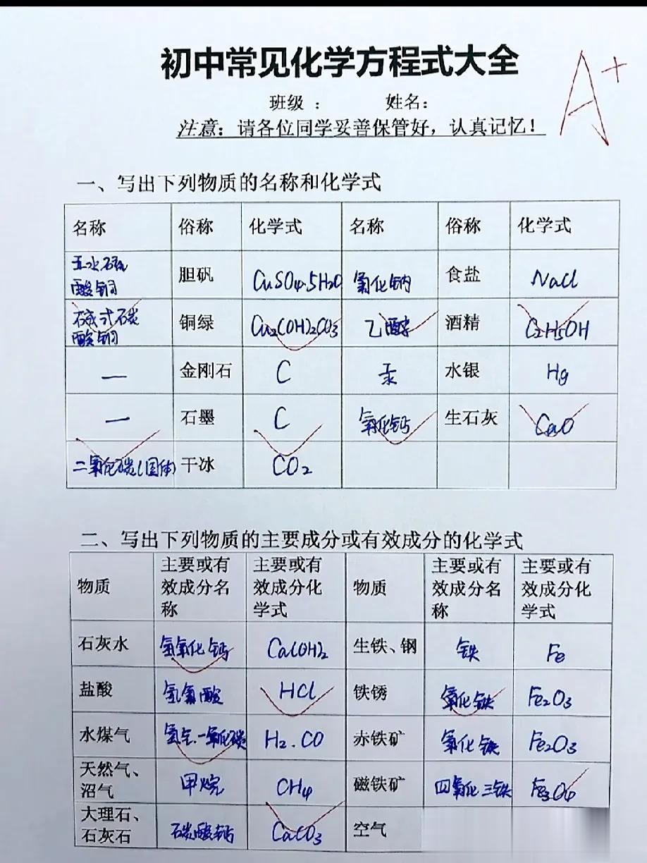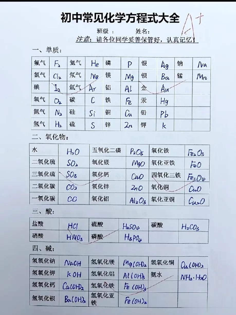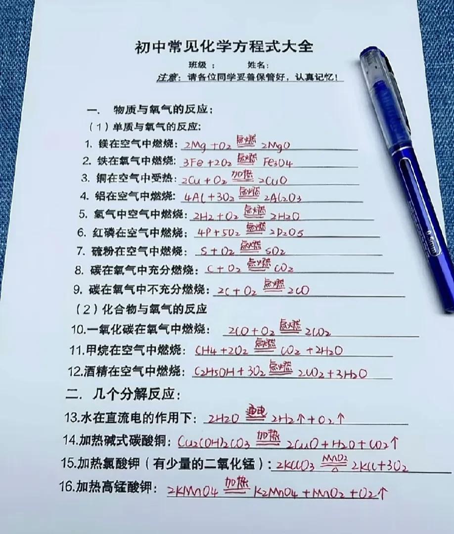 不愧是金牌教师,竟然将化学知识点编成表,难怪全班次次拿di一,什么化学式大全、化学顺口溜、实验现象等等,这是我见过整理最全的,家有初中生的,背下涨分20+! 化学方程式专项训练
