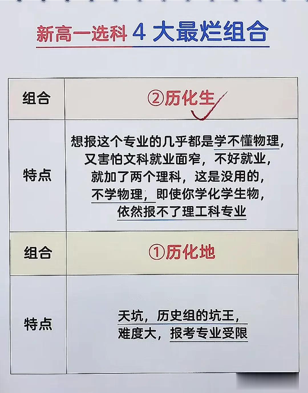 “太给力了!”终于有人把新高一选科组合详细整理出来了,选科记住这8句话,选科不犯愁!看完之后,对孩子进入高中选科太有用了!比如什么是3+1+2的新高考?选科4大最烂组合、选科组合特点、选科组合的优势和劣势,全都很详细,一目了然,赶紧让孩子看一看,对于后续选科很有好处。正所谓,选择大于努力,选科也是一样 高中选科生涯规划通