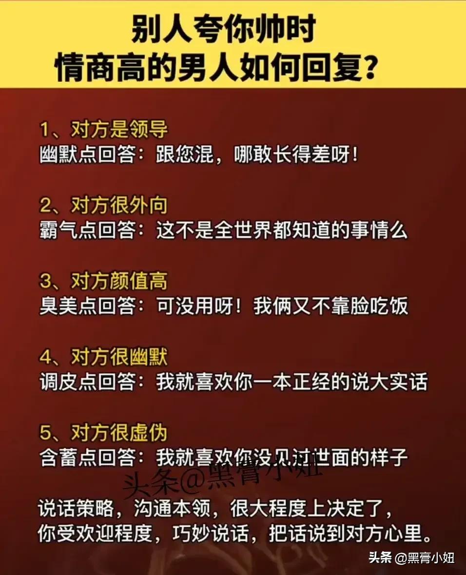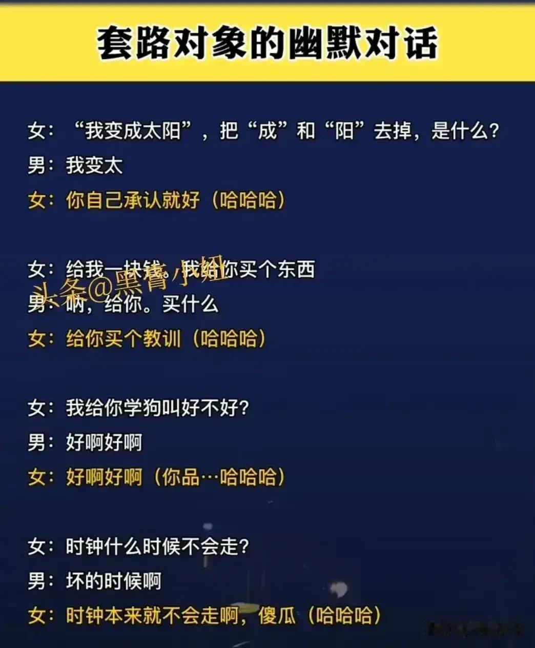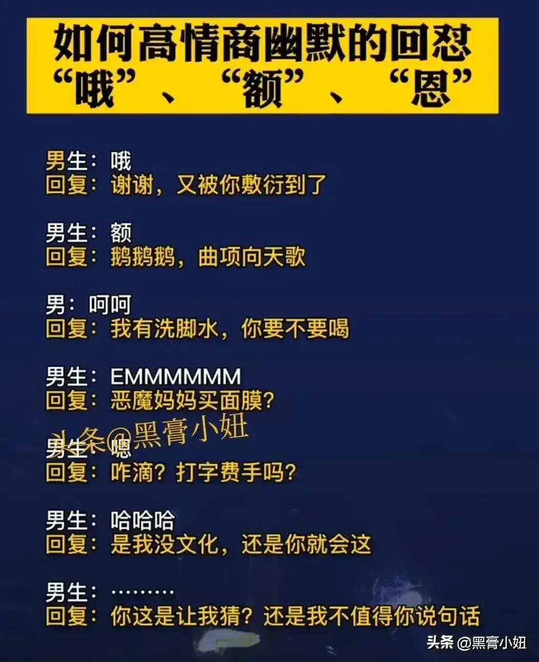 幽默的沟通方式是为了缓解尴尬,也是为人处事的一种智慧!你有多幽默,就有多讨人喜欢,包含提升幽默口才的方法,幽默化解尴尬的方法、幽默风趣的撩妹情话、套路对象的幽默对话、幽默回怼“哦” “额” “恩”,以及沟通社交技巧,赶紧收藏学习!让你大受欢迎的沟通技巧,说幽默话,做幽默人。 类比法:工资就像女生例假,一个月来一次,一周就完了。 反转法:世上无难事,只要肯放弃 夸张法:他俩要是不认识,我把地铁吃了 自嘲法:今年给自己定了个存款3万的目标,现在掐指一算还差5万 夸张法:要不是空气免费,我都活不到现在 典故法:我不是草船,你的贱别往我这里放 …… 幽默感是可以练出来的,只要掌握对了方法,你也可以很幽默,在哪都能受欢迎。更多幽默话术和技巧在下方链接! 幽默沟通学