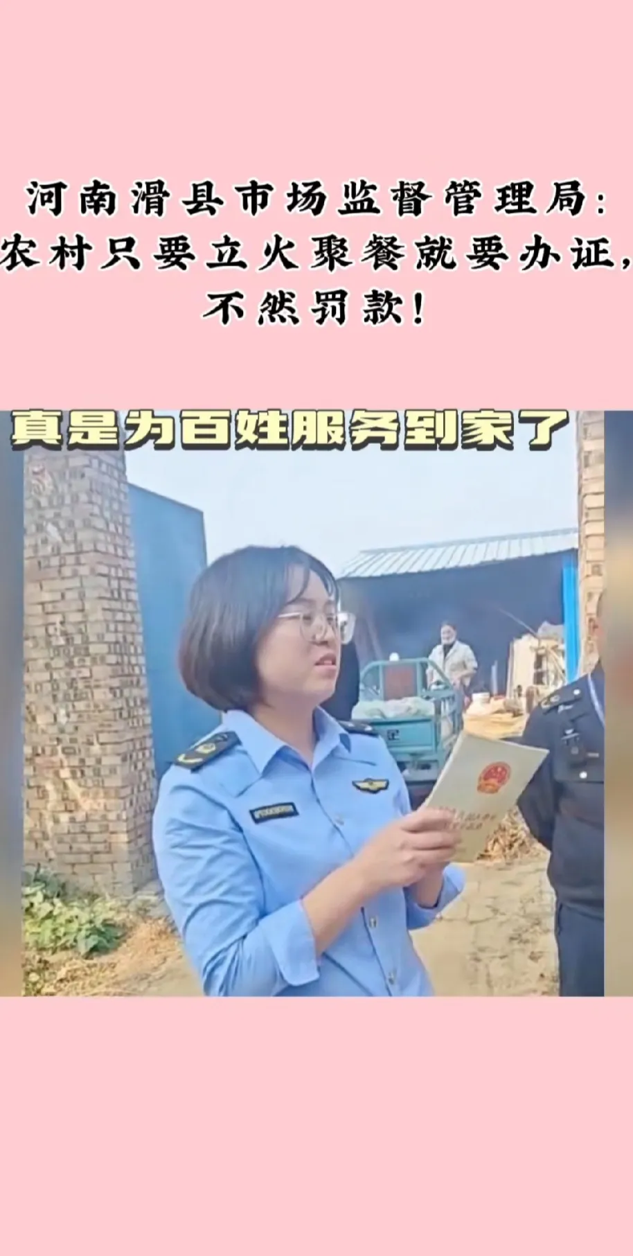 工作人员说的很清楚,要办食品安全许可证和食品经营许可证,不办就会罚款。我的理解是在乡下专业做大席菜的生意人,要办健康证,和食品安全许可证。这样的普法没毛病啊。而且厨师有健康证也是必须的。