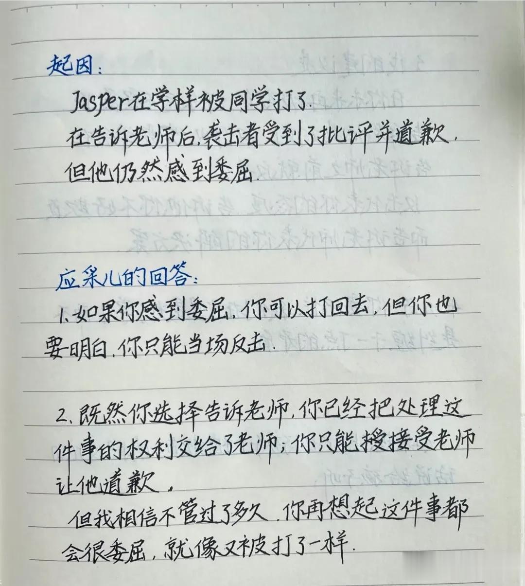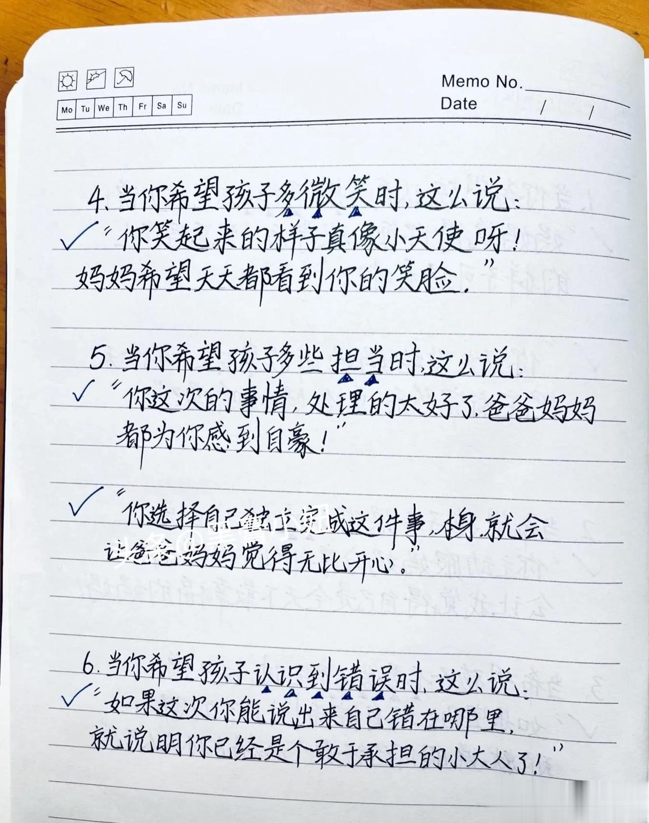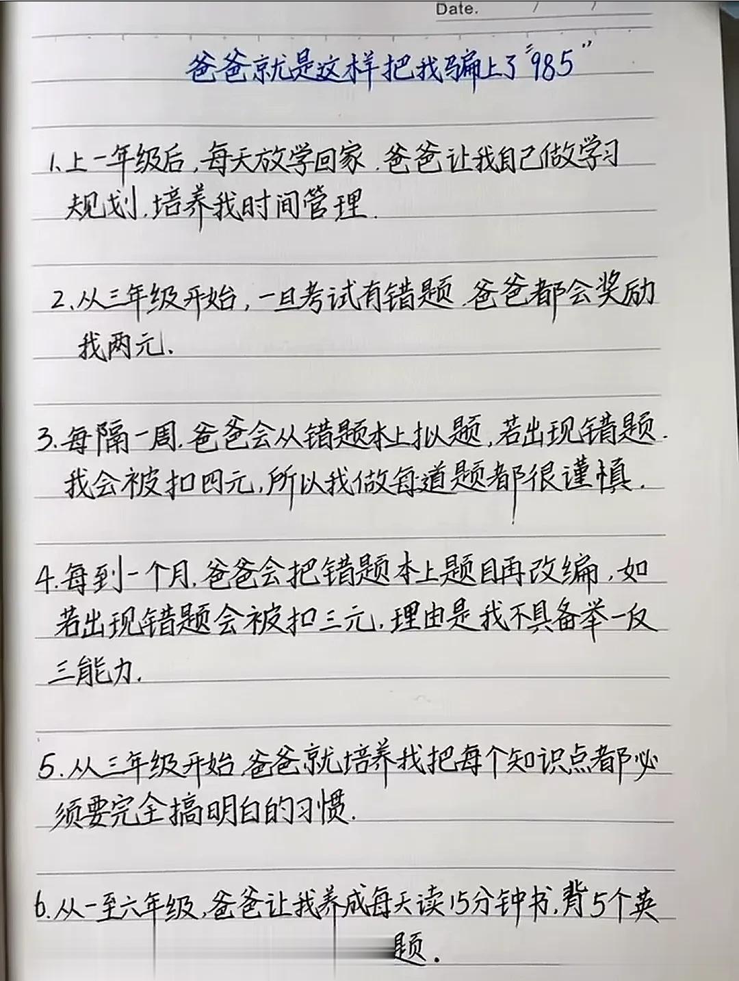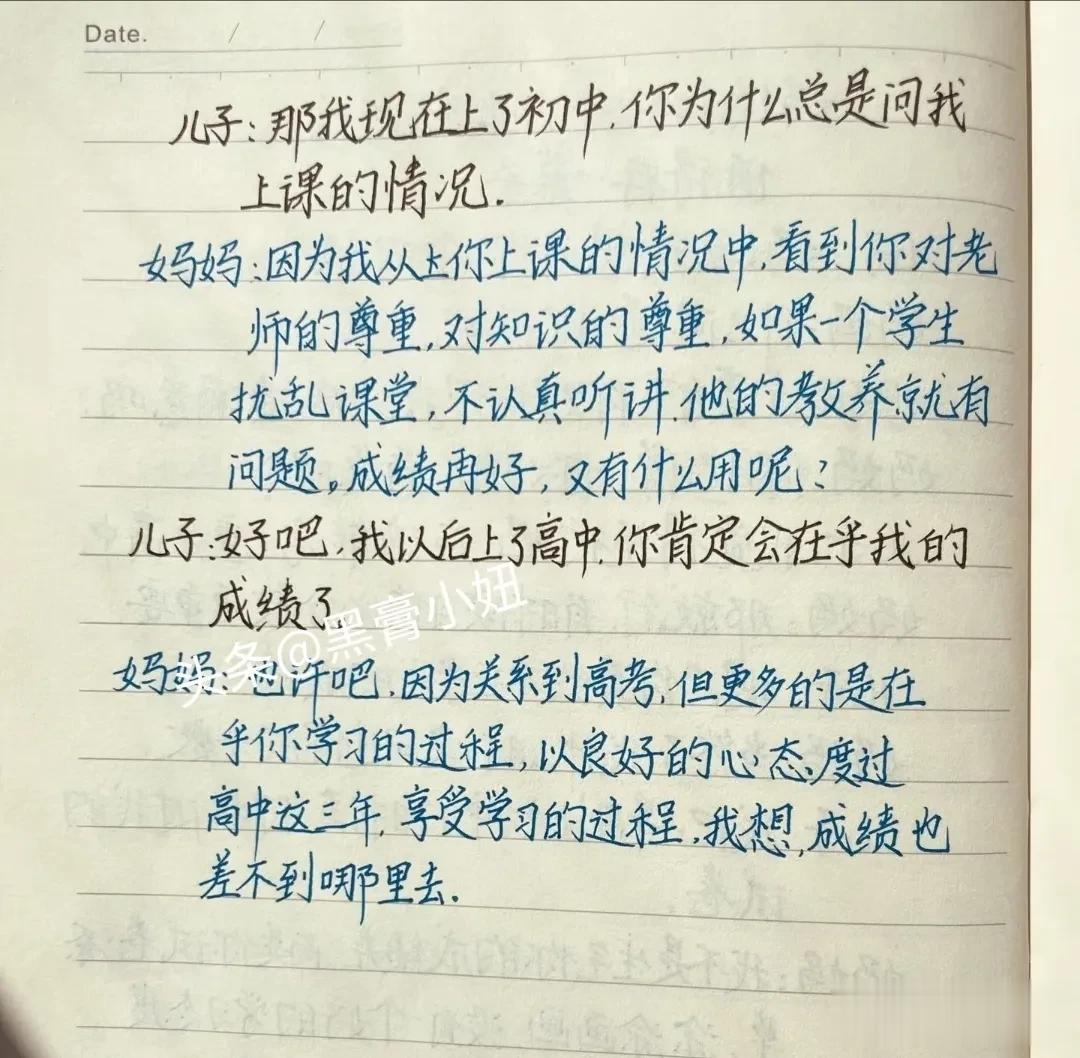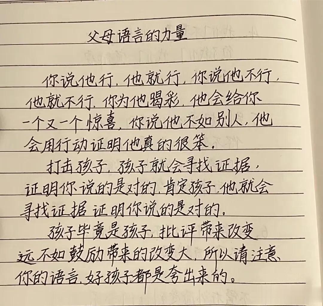 妈妈和孩子幽默对话,值得保存一辈子!考试成绩出来后,家长要和孩子说这几句话! 爸爸就是这样把我骗上了“985”! 孩子在学校被欺负,应采儿的回答亮了! 打骂孩子后,一定要说这些话,修复亲子关系,解开孩子心结! 这样说,让孩子不叛逆,肯定法,用暗示代替吼叫! …… 不愧是学霸妈妈的教育方法,全都手写整理出来!简直太用心了!父母语言的力量:你说他行,他就行,你说他不行,他就不行,你为他喝彩,他会给你一个又一个惊喜,你说他不如别人,他会用行动证明他真的很笨。 教育路上,比关注孩子成绩好坏更重要的,是助力他养成一个健全的人格。 跑得快的孩子不一定走得远。走得远的孩子,一定有教养,有素质,有自律的习惯和积极向上的人生态度。 学霸养成指南,解决沟通难题! 学霸妈妈修炼沟通指南