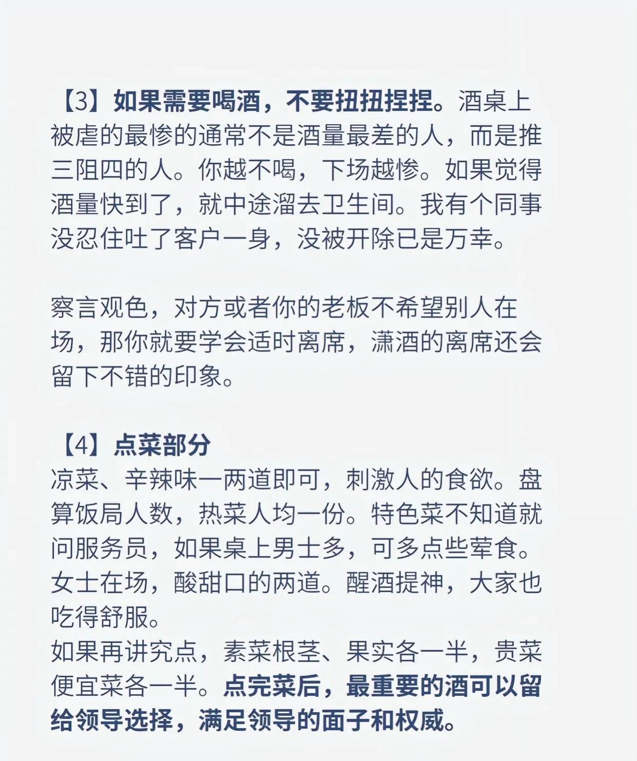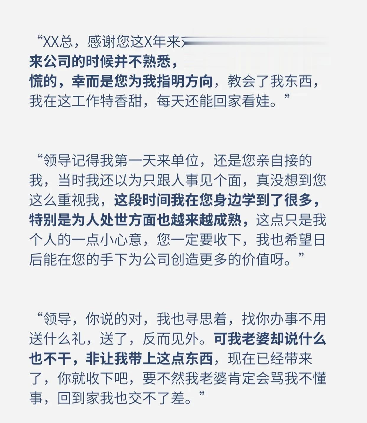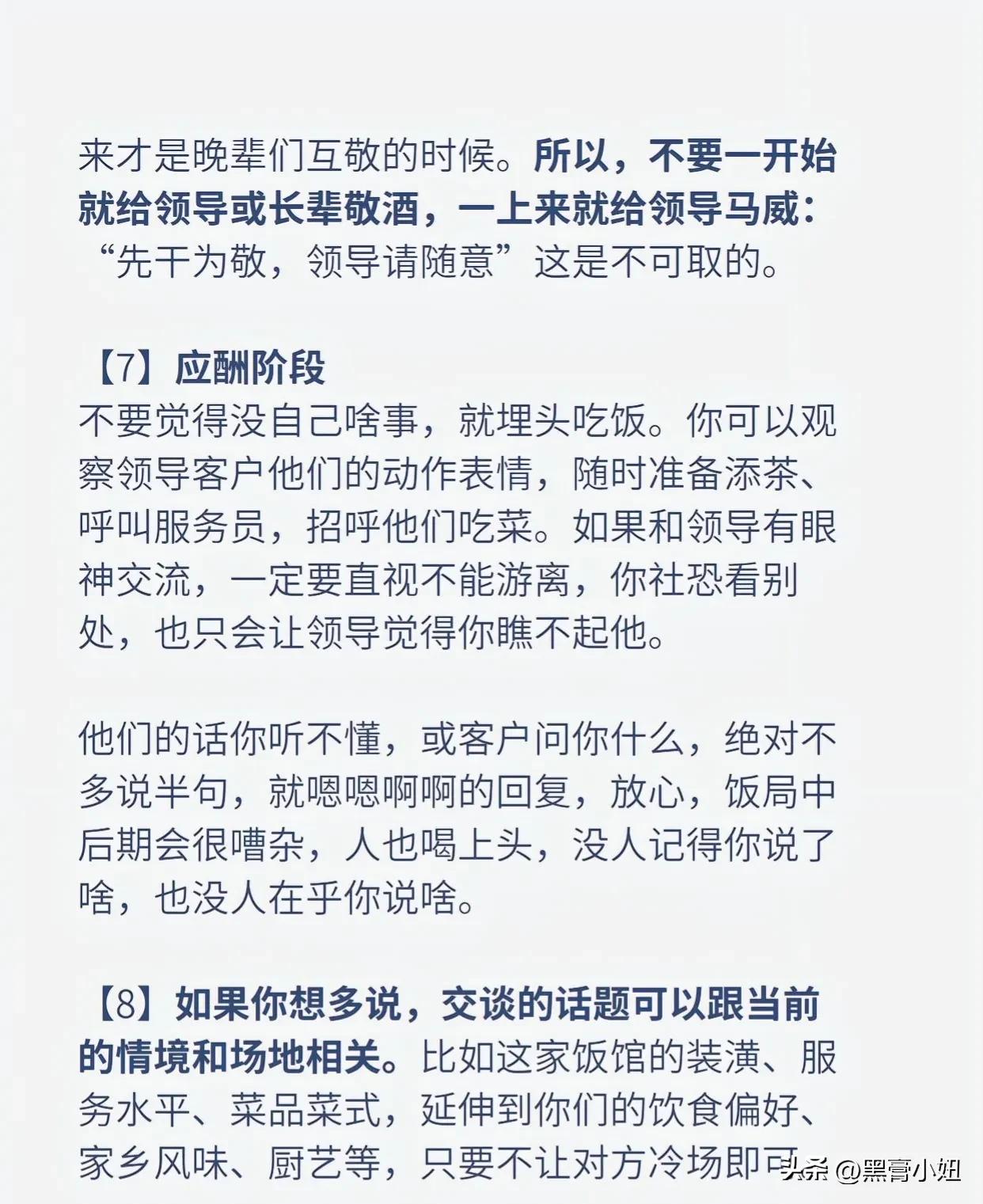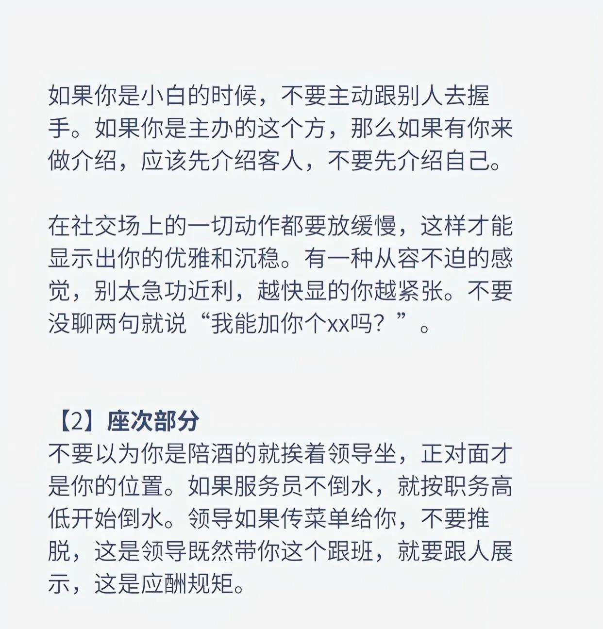 一位厅级退休前辈悄悄告诉我的送礼潜规则、和领导出去应酬,牢记这些“不成文”的规矩,领导不仅高看你,也会更器重你!赶紧学起来!据说,那些在职场中混得好的人,早就摸清并熟练运用了! 人到中年,无论是身在官场、职场,还是生意场,哪怕是平时红白喜事,孩子上学,都免不了要做一件事,那就是应酬。 中国是一个讲关系、讲人情的社会,你会应酬会说话会做人,朋友就多,人脉就广,做事情也会更顺利! 应酬是门技术活,懂得应酬,你的事情就成功了一大半。懂得应酬就有人脉有资源,不懂应酬,再大的困难也解决不了,再小的问题也会变得难缠。赶紧下方链接系统的学起来! 中国式应酬送礼技巧