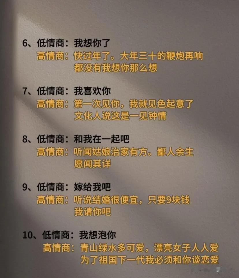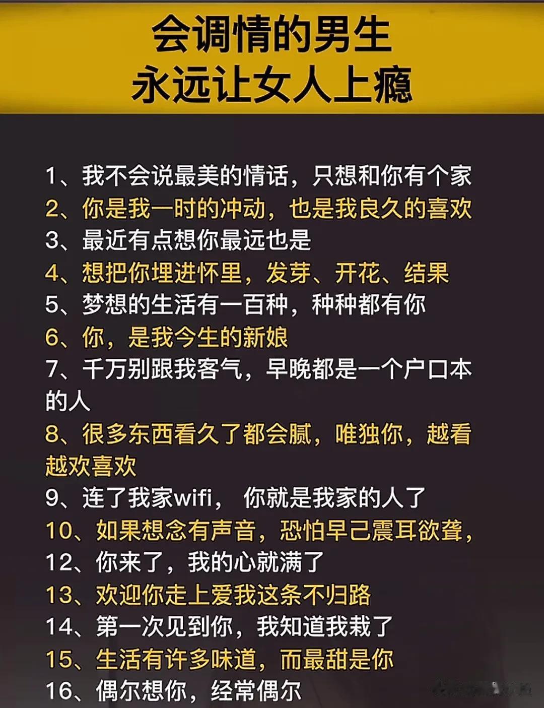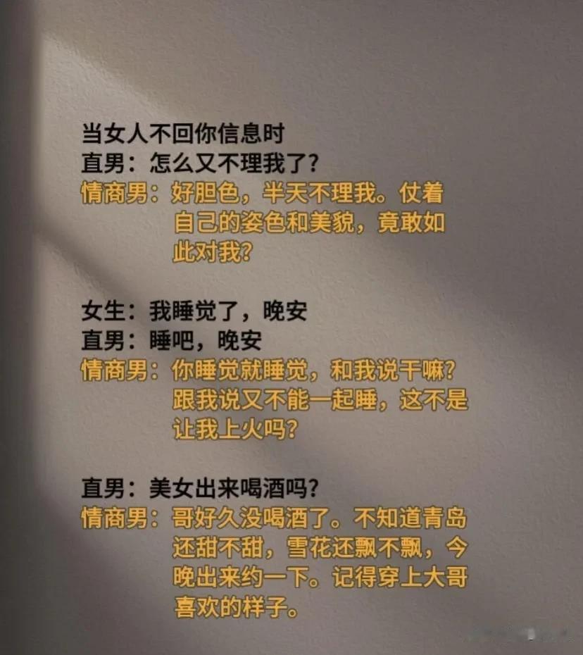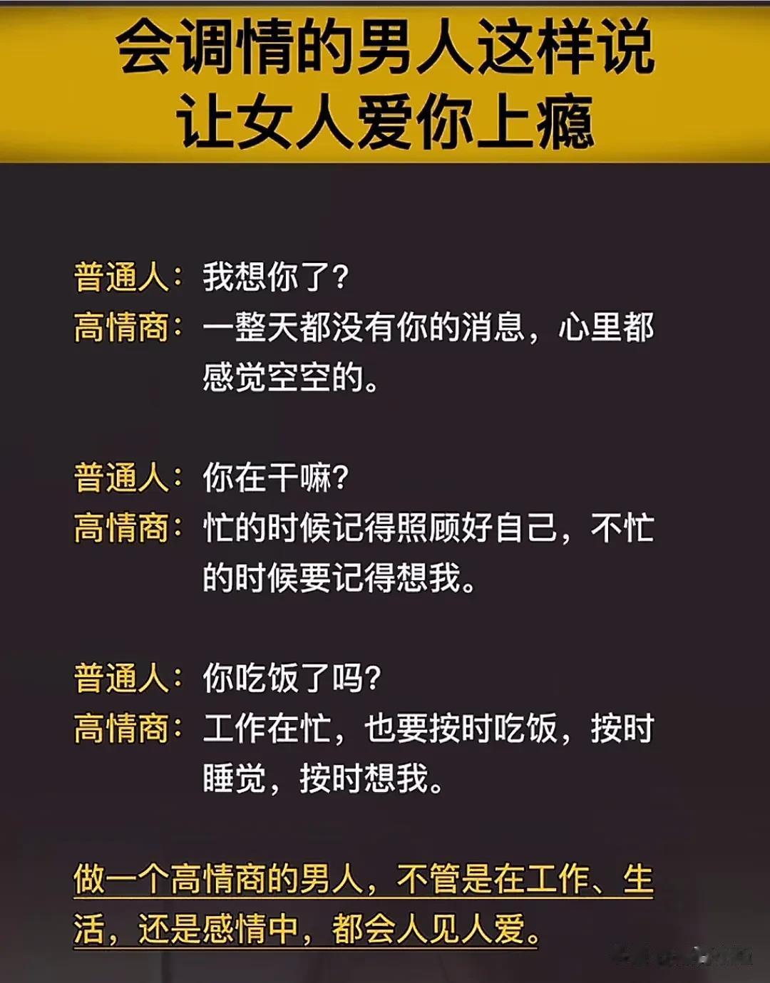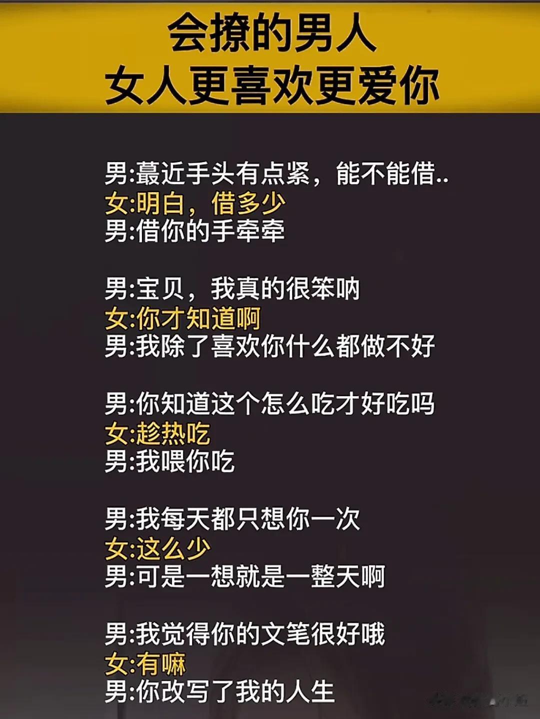 “太甜了”!果然会调情的男人,永远会让女人上瘾!会说话是优势,会聊天才是本事!学会幽默聊天,让对方越来越爱你! 你有多幽默,就有多讨人喜欢!牢记幽默公式:情理之中+意料之外,不管和谁都能聊的来,能让你轻松聊出感情聊出机遇!赶紧收藏起来吧,锻炼自己的口才沟通能力,提升自己的幽默感,你将受益终身! 幽默沟通+好好接话