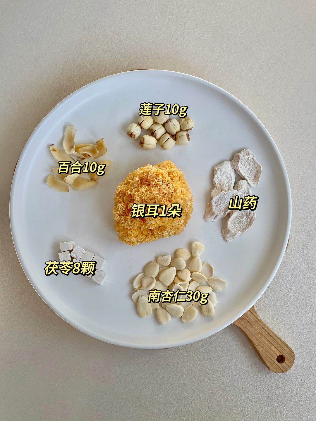 姑姑50多岁啦皮肤还白白嫩嫩的~贼水润!! 平时内养真滴蛮重要的!尤其是秋冬天天气干燥… 要多吃水润的食物,对皮肤🧏🏻♀️很友好哦!! 山药搭配百合的五白羹,🟡黑皮的姐妹一定不要错过~ 📝食材:百合、山药、莲子、银耳、茯苓、南杏仁、冰糖适量 🥣做法:食材洗净放入破壁机中,倒入800ml清水,豆浆模式即可! 醇香丝滑口感!香甜好喝!! 建议姐妹们把奶茶都换成它!经常喝小脸水水润润哒~