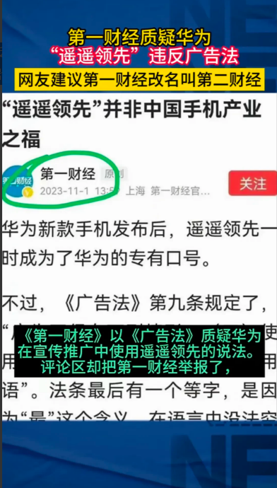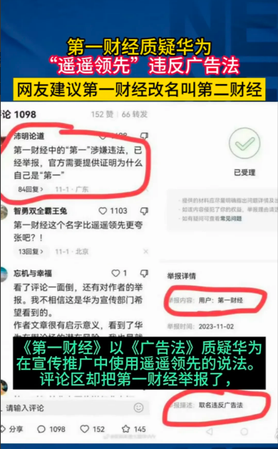 第一财经就是没事找抽型的!华为广告词遥遥领先关你屁事?全国人民都认为的事,需要你来指正吗?怎么非要跟全国人民对着干吗?