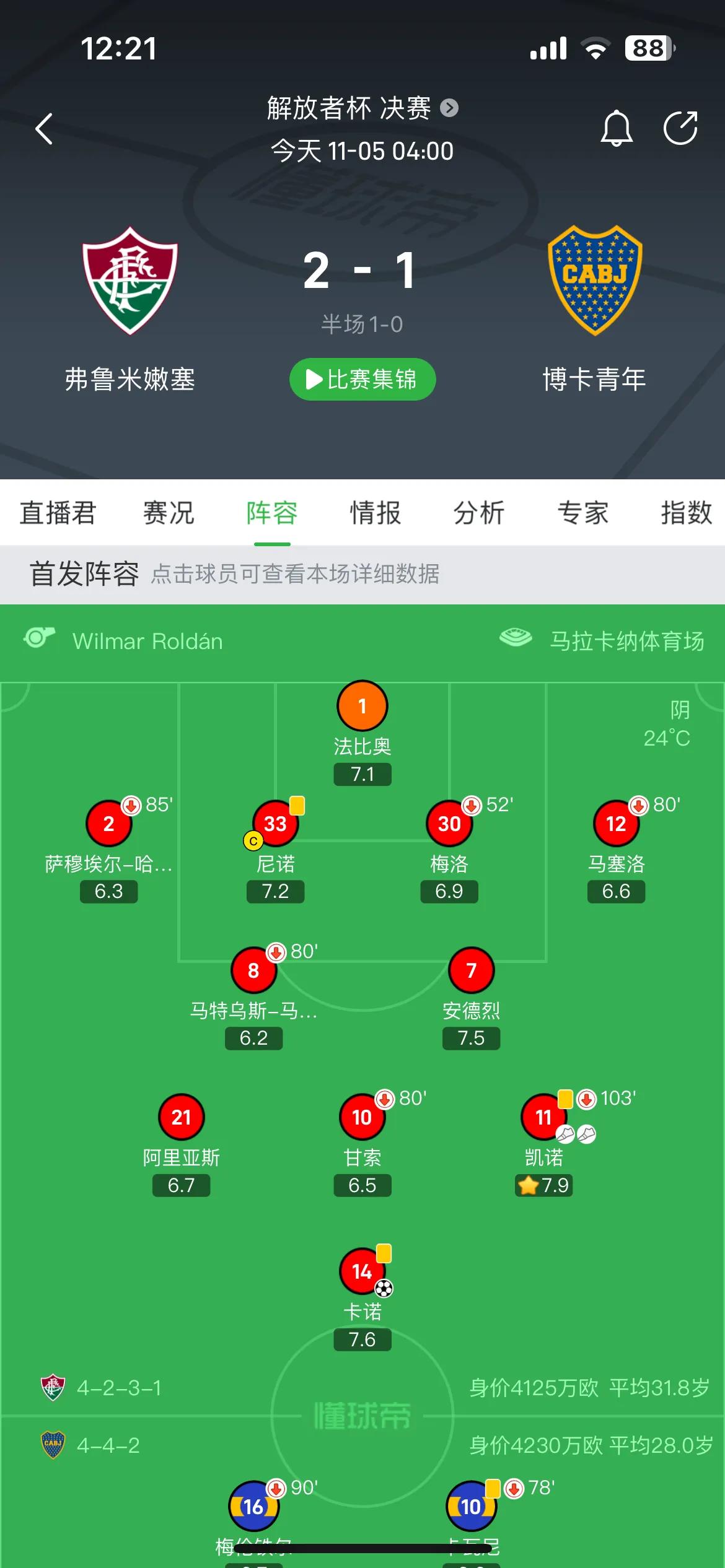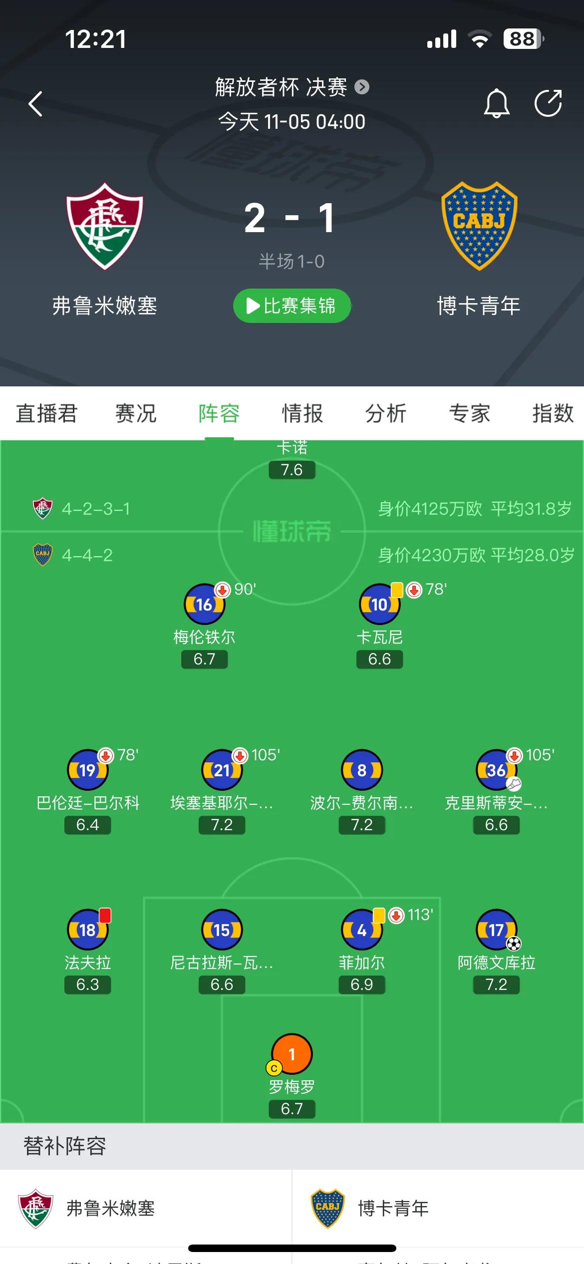 南美解放者杯决赛,弗鲁米嫩塞2比1击败博卡青年夺冠。值得一提的是,这两队有很多大家非常熟悉的老将。 弗鲁米嫩塞: 马塞洛(前皇马队长) 梅洛(前尤文图斯、国际米兰中场) 甘索(前塞维利亚中场、前巴西10号、传AC米兰传了很多年一直没去成) 马龙(曾效力意甲、法甲,不是打乒乓球那个) 博卡青年: 卡瓦尼(乌拉圭神锋,曾效力巴黎、曼联、那不勒斯) 罗梅罗(前阿根廷国门,曾效力曼联) 阿德文库拉(秘鲁国脚,曾效力西甲) 贝内德托(前阿根廷国脚,曾效力马赛)