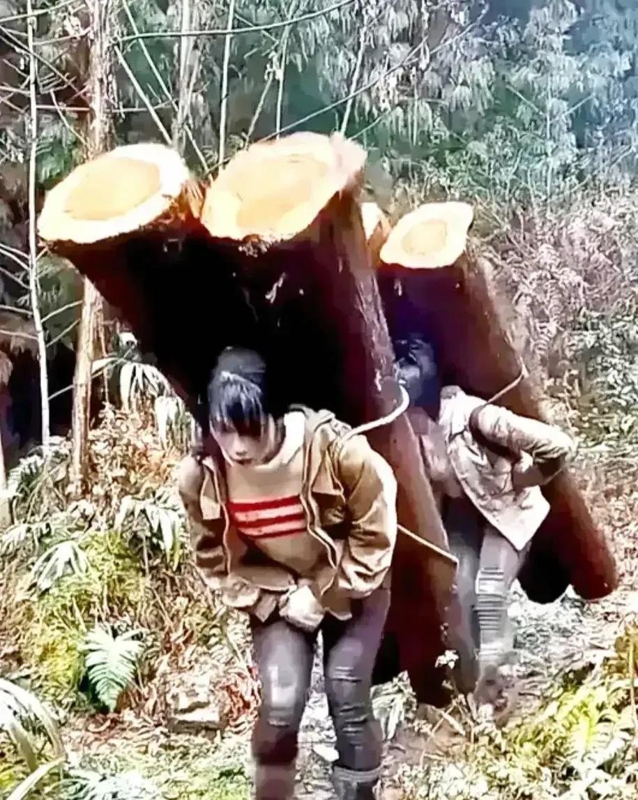 说实话我一身高1.80的大男人都背不了两根两米长一尺大的木头,何况是一娇滴滴的女人所以我一直以来都不信。