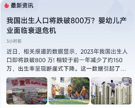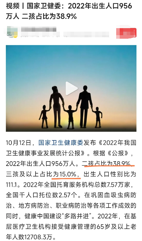 白岩松:人口问题已经迫在眉睫! 没想到白岩松这么刚,他直接在央视说出了这个“房间里大象的问题”。由于出生人口减少,现在幼儿园已经出现了“生源难”的问题。他坦言再过几年这种问题就会蔓延到小学……这个社会如何建设成生育友好型社会依然任重道远。 说出生人口断崖式下跌也不为过。据国家卫健委官方公布的数据,仅仅5年前的2018年全国还能出生1800万人口左右,2022年也就956万,其中二孩和三孩的比例占54%左右,一孩仅仅占46%左右。换言之,现在的90后基本上不愿意生孩子,更别说95后和00后。人口下跌之后,最可怕的影响就是人们对房产继续升值的预期会下降。因为底层逻辑是需求端没有了增长,房子建了给谁住呢? 著名人口学家也是携程董事长梁建章先生曾说过,建议各地对于生娃补贴直接发钱,比如说生一胎10万,生二胎100万。有了保障普通人才真正敢生娃。其实从国家层面也已意识到这个问题,现在国家在全面禁止K12等教培,降低医疗费用等改革也是在给老百姓在减负。 还是希望真正生娃补贴政策能够落地,而不要搞一些直接从第3胎才开始的高门槛福利,有人调侃三胎开始奖励好比是给百岁老人办免费健身卡。