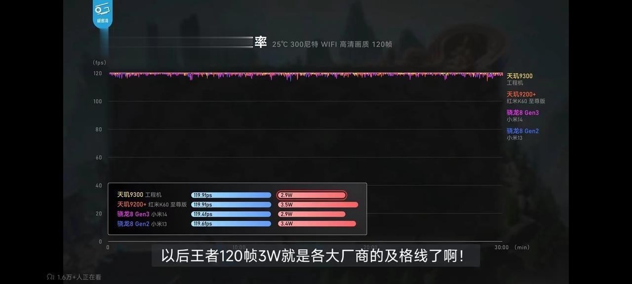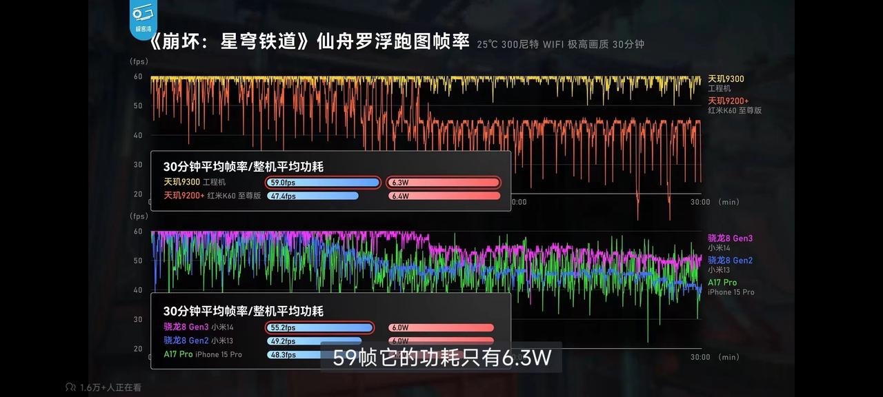 天玑9300#全大核芯更强#CPU、GPU和APU(也就是NPU)性能都是冠军,全方位的yaoyao领先,CPU和GPU能效控制的也很出色,实测游戏原神高画质60帧,平均帧率59.7帧,整机功耗仅有5.5W,最高温度只有44.6℃;王者荣耀高清画质120帧模式,整机功耗2.9W;崩坏星穹铁道,平均帧率59帧,整机功耗只有6.3W;都是目前安卓最强水平!
