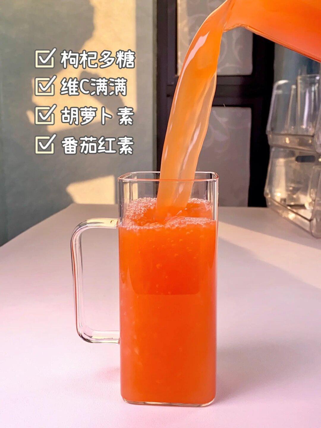 经常熬夜、户外日晒[太阳R]、小脸腊黄的姐妹一定要喝起来! 平时火锅重口味吃的比较多!还不爱运动!可以适当喝一点温热的果蔬汁哦!!清爽又解腻,营养也补充了~这杯富含VC和番茄红素,对👀和🧏🏻♀️皮肤不要泰友好! 📝食材:苹果半个、番茄、胡萝卜半根 ✔️做法:食材清洗干净放入破壁机,加600毫升水果汁模式打2.5min,打好后可以加热一下,激发番茄红素 做法简单5分钟就搞定啦!加热后是酸甜的口感! 还蛮好喝的!酸酸甜甜的!🧏🏻♀️真的不要太掉色了!