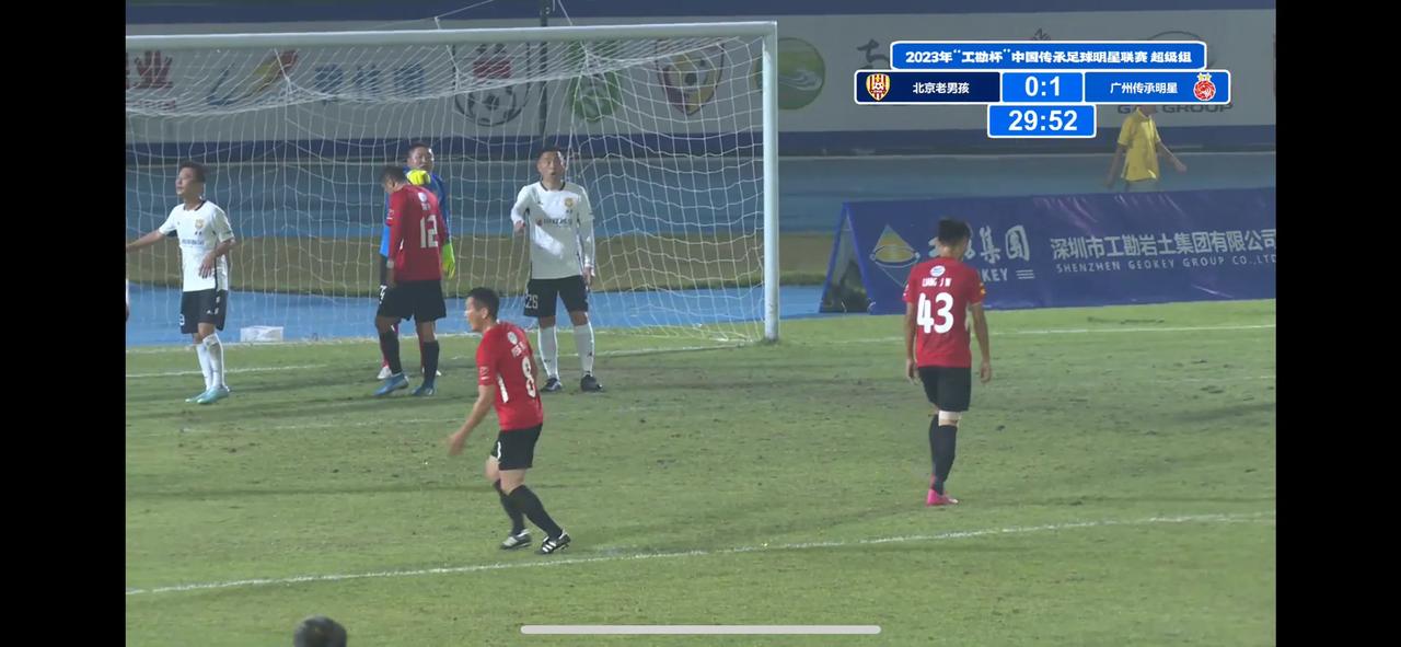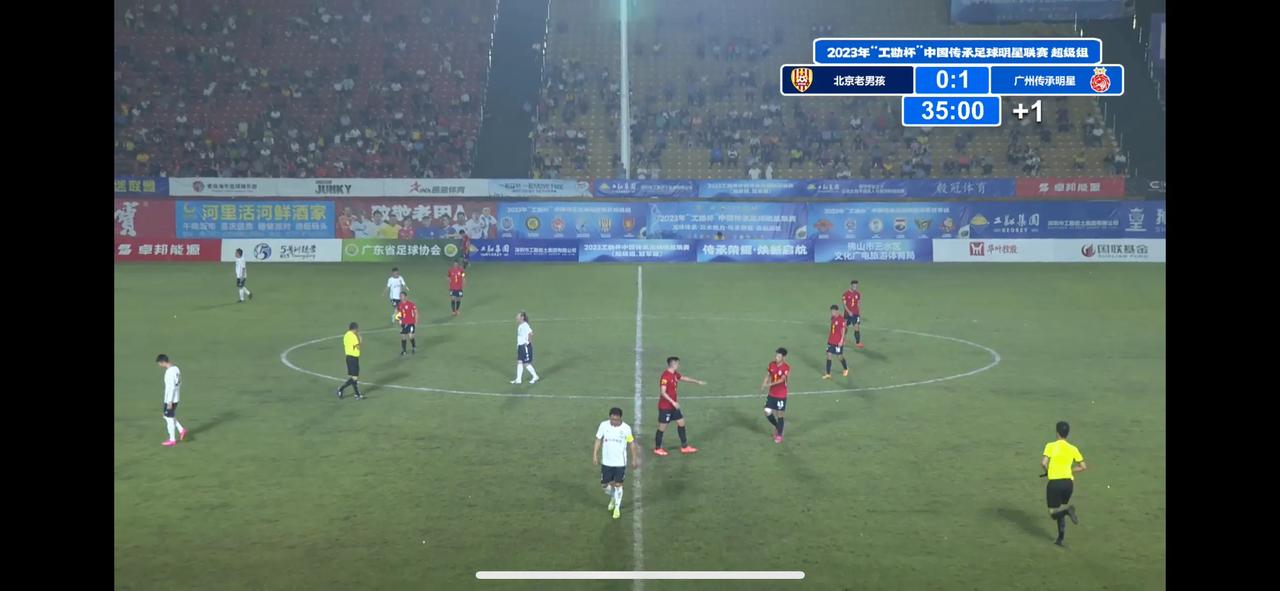 广州传承明星队对北京老男孩队,广州队这可是四代同堂,老的有彭伟国、胡志军等广州太阳神球员,年轻的也有郜林、卢琳、李建华等人。虽然比赛场面不好看,不过这个不重要,看的是情怀,看到小时候的偶像还在踢,感觉真好!