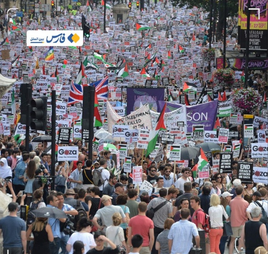 这真是难得一见的世界人民大团结的火爆场面!地点在英国首都伦敦,时间是11月11日。数十万人走上街头抗议以色列对巴勒斯坦人民的无差别屠杀。