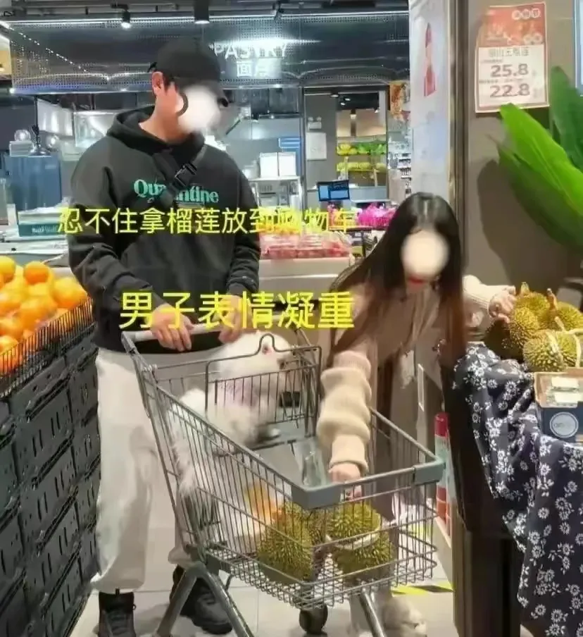 男子看到女孩拿了很多榴莲进购物车后,没有提出任何异议或询问,而是选择了离开。
