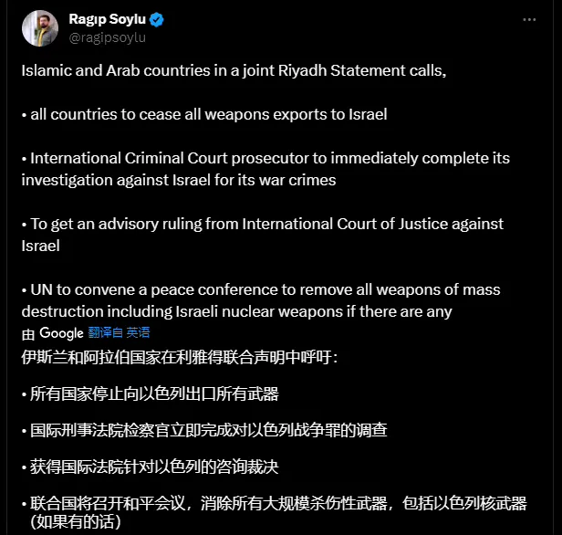 当地时间11月11日下午,在伊朗总统莱西发表重磅讲话后,沙特外长在利雅得郑重宣读了阿拉伯-伊斯兰峰会就巴以冲突达成的重大共识。