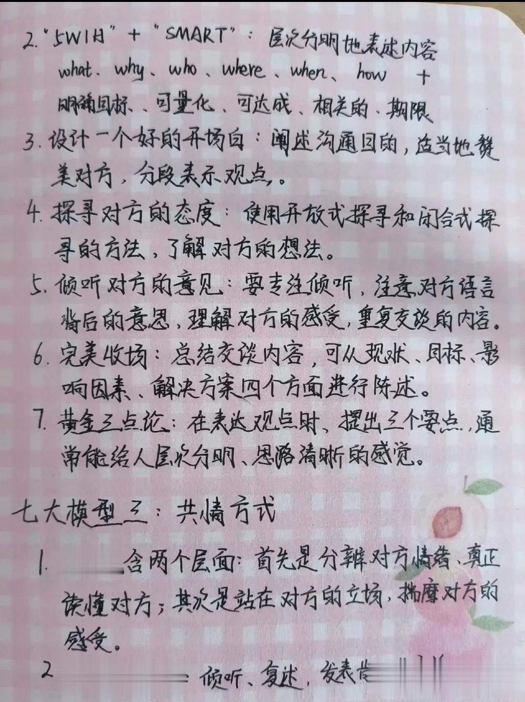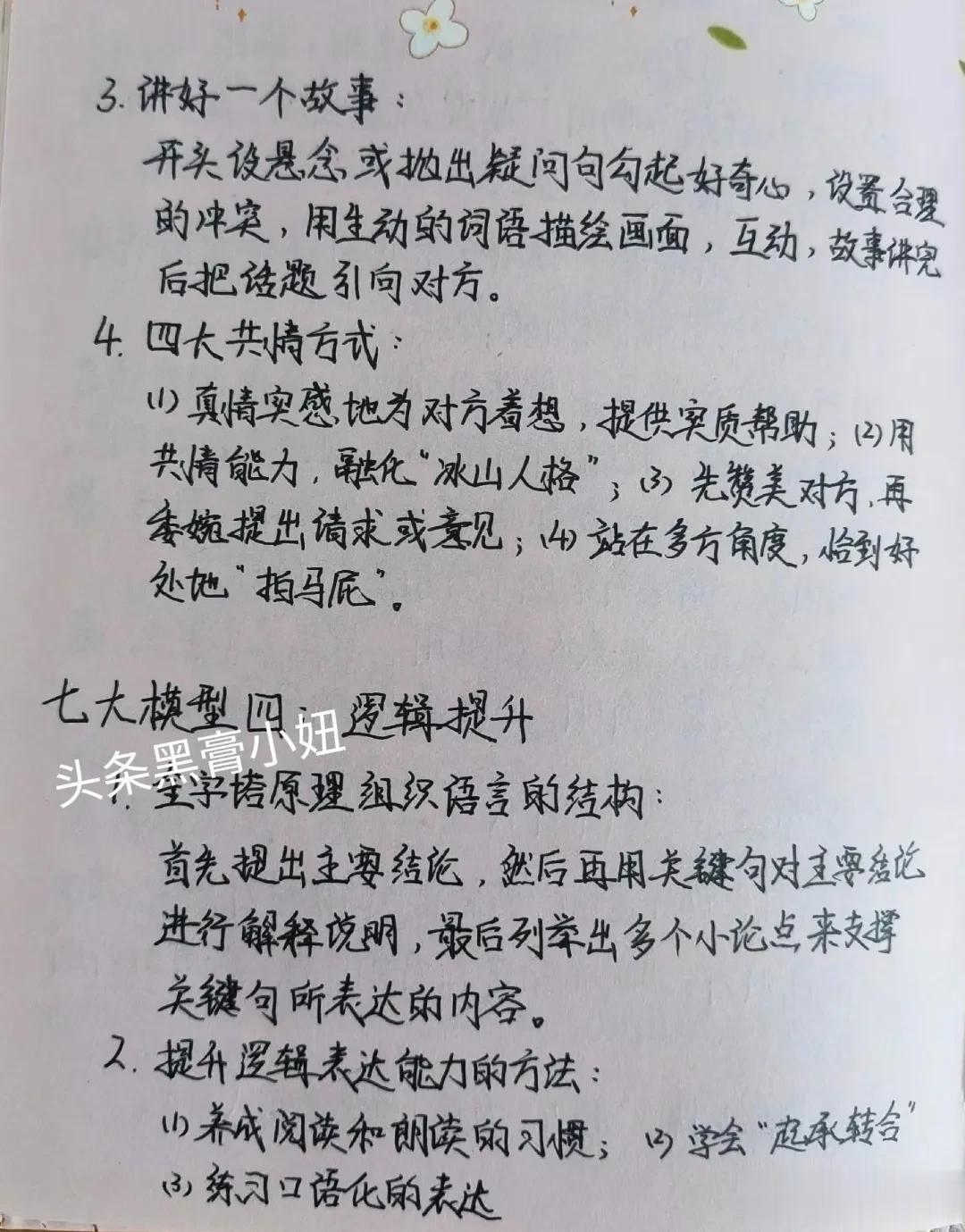 真正厉害的人,都是精准表达的高手,把话说到心坎里!跟着大咖的手写笔记来学习,提升自己的表达能力,获取提升机会,扩大交际范围,说好想说的话,说好难说的话,提高说话技巧,改变一生命运。 沟通不是说话,不是找碴儿,就某件事达成共识,解决问题。善于讲话不等于善于沟通。沟通的效果取决于我们最终对沟通内容的理解情况,只有沟通双方真正理解了对方所表达的内容并达成共识才算沟通成功。能和多少人达成共识,决定了一个人的最终成就。 精准表达把话说到点上