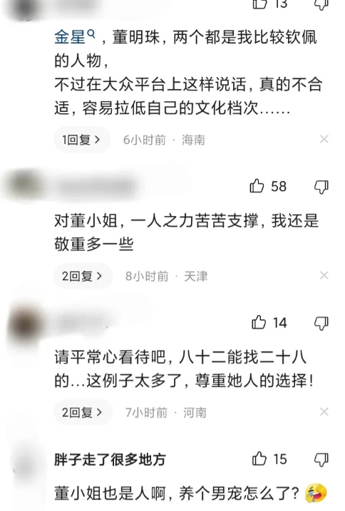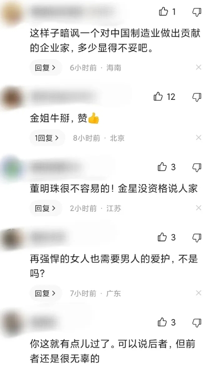 一个拿着国有资本尽情挥霍的老女人,和利用职务之便养男宠的故事而已…金星说错什么了?企业家用来形容董明珠就是多企业家最大的污辱!