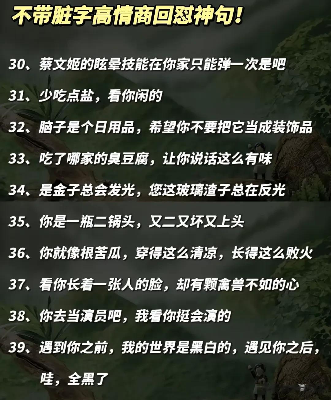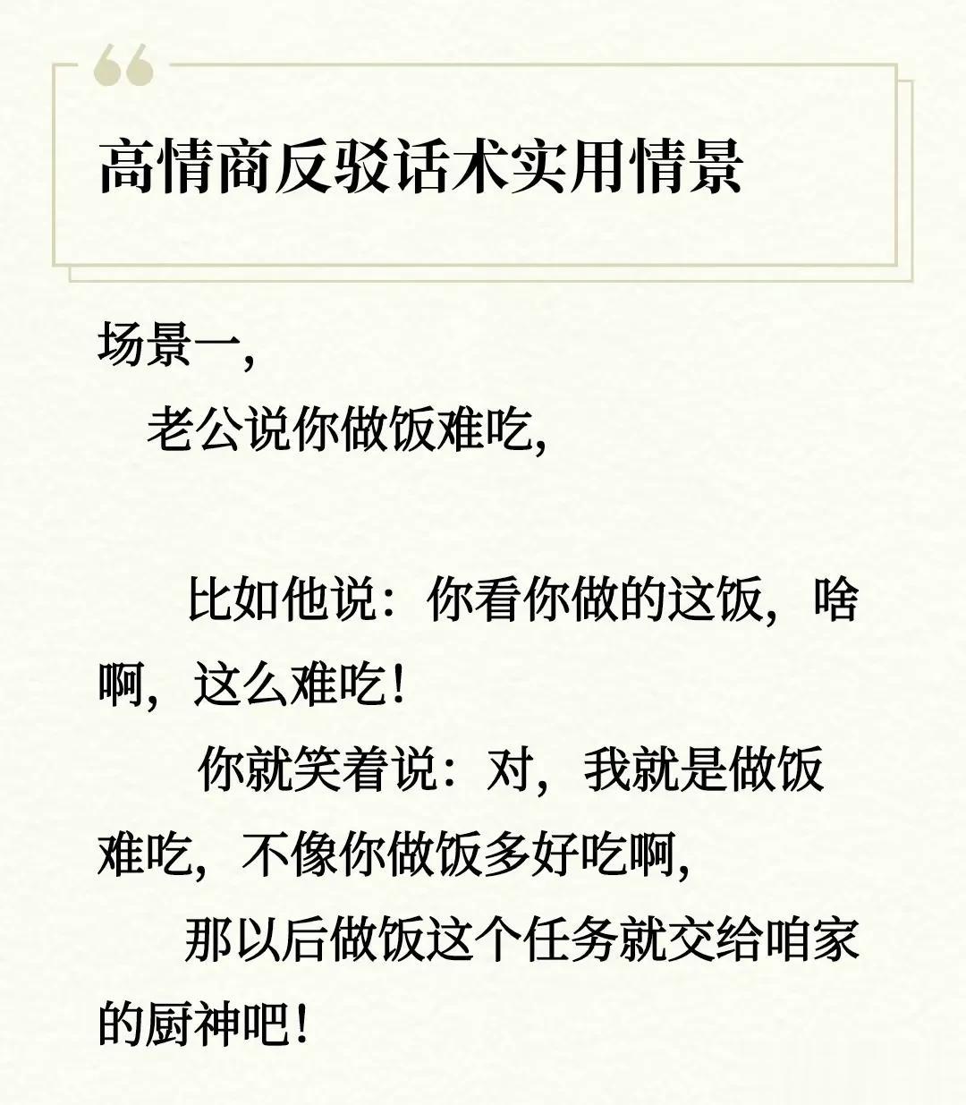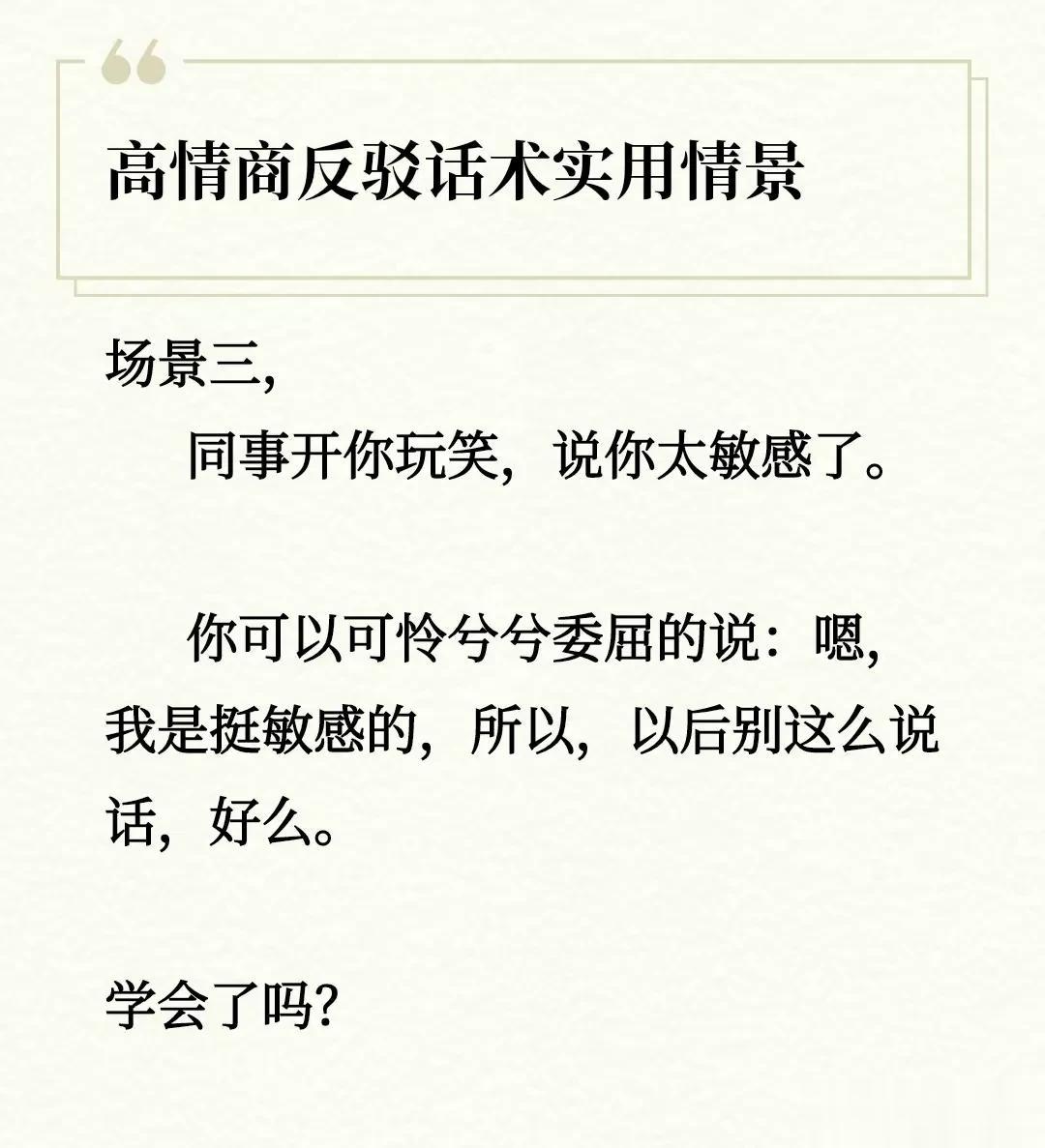天呐!这才是反驳界的天花板,高情商回怼,顺着说效果更好。吵架、反驳,不一定要回怼,顺着说更能事半功倍。特别是在职场上那些明里暗里的话,掌握回话的精索,既保护了自己,又不伤害别人;既让别人感觉很好,又维护了良好的关系。升职加薪的机会大大增加!! 会说话,好办事,不伤人的技巧要学会哦! 牢记这几个高情商反驳话术和万能公式,工作生活随时能用上,从此回话滴水不漏,下次你遇到了,直接就套用。更多说话办事技巧,下方链接系统的学走起! 漫画图解回话技术