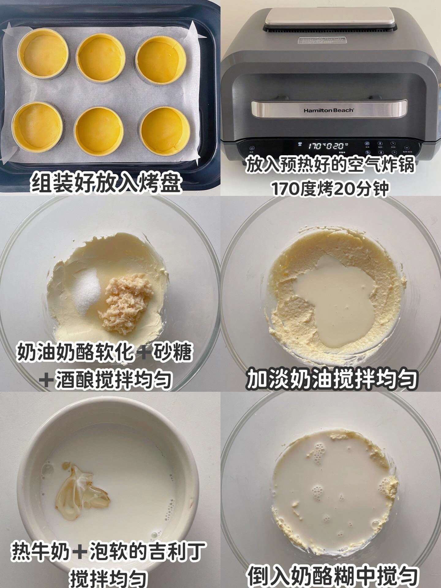 3、将圆形和边边组装到挞膜中,预热好的空气炸锅170度烤20分钟左右,取出晾凉。