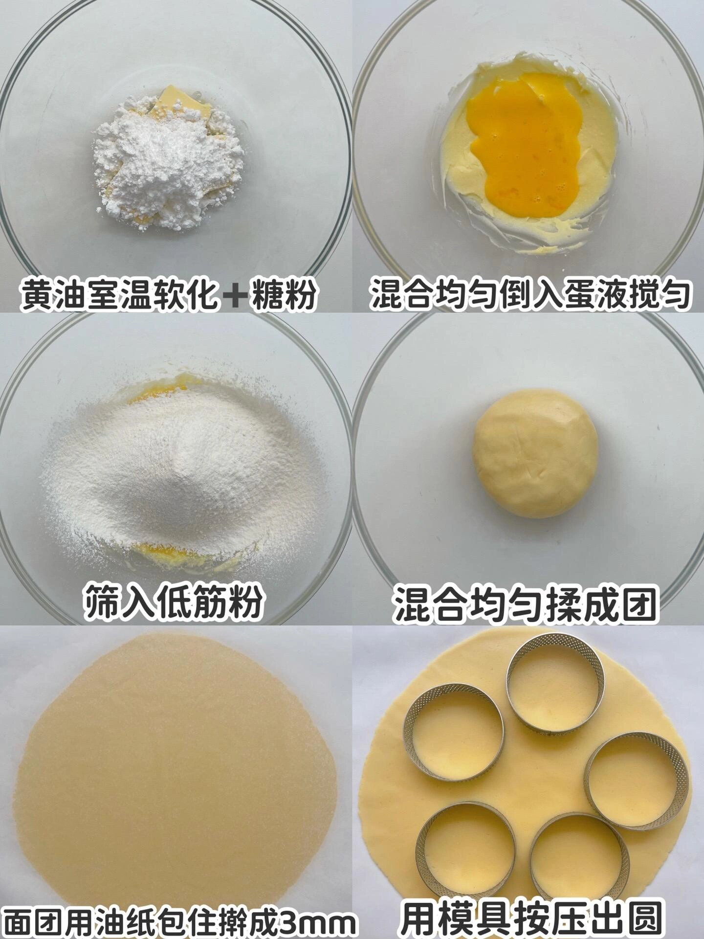 挞壳做法:1、黄油室温软化➕糖粉混合均匀,倒入全蛋液搅匀,筛入低筋粉混合均匀揉成团。