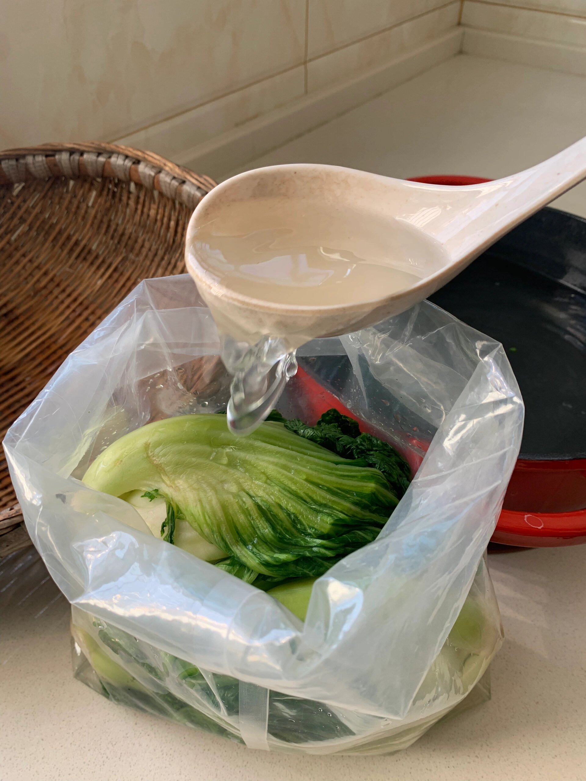 3、水中+ 2勺盐+ 1勺生粉(帮助发酵)淘米水也可以