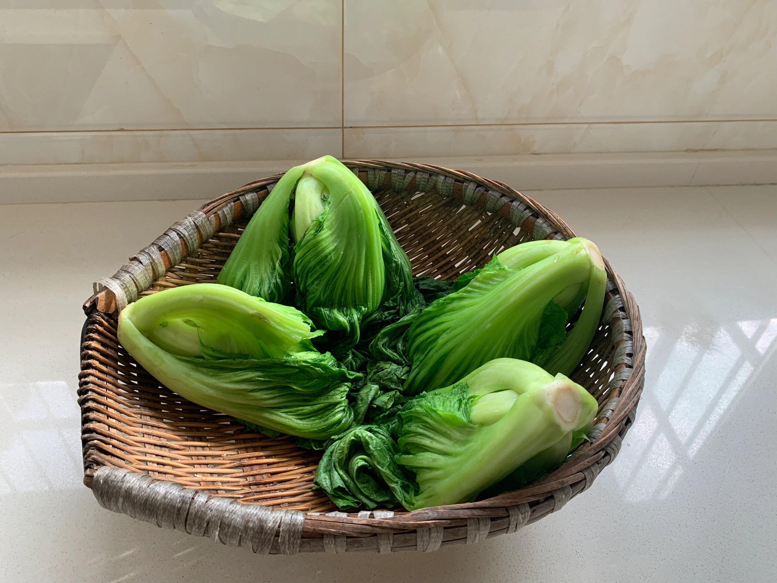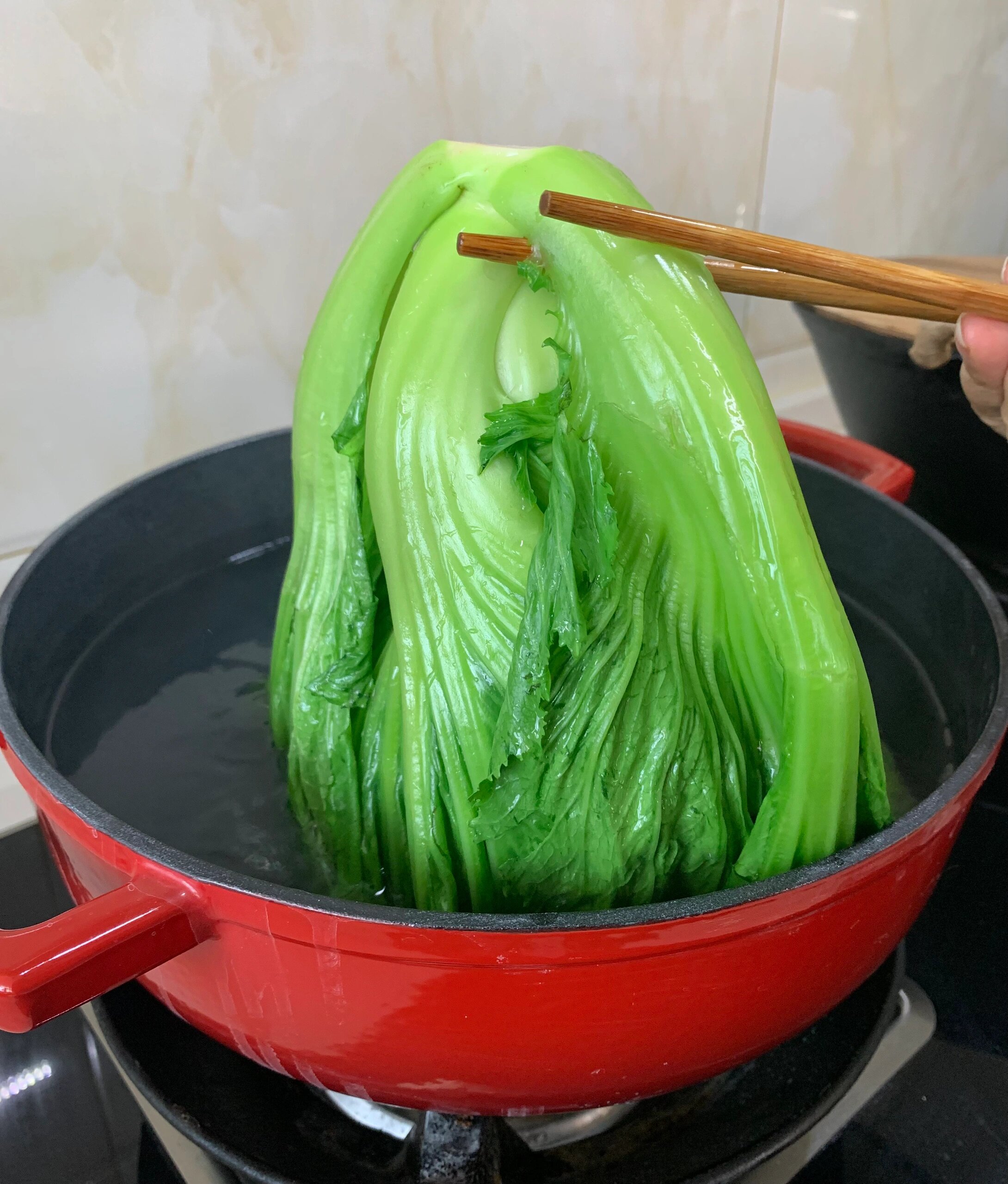 4、煮开后,芥菜在水中烫一下。捞出晾凉