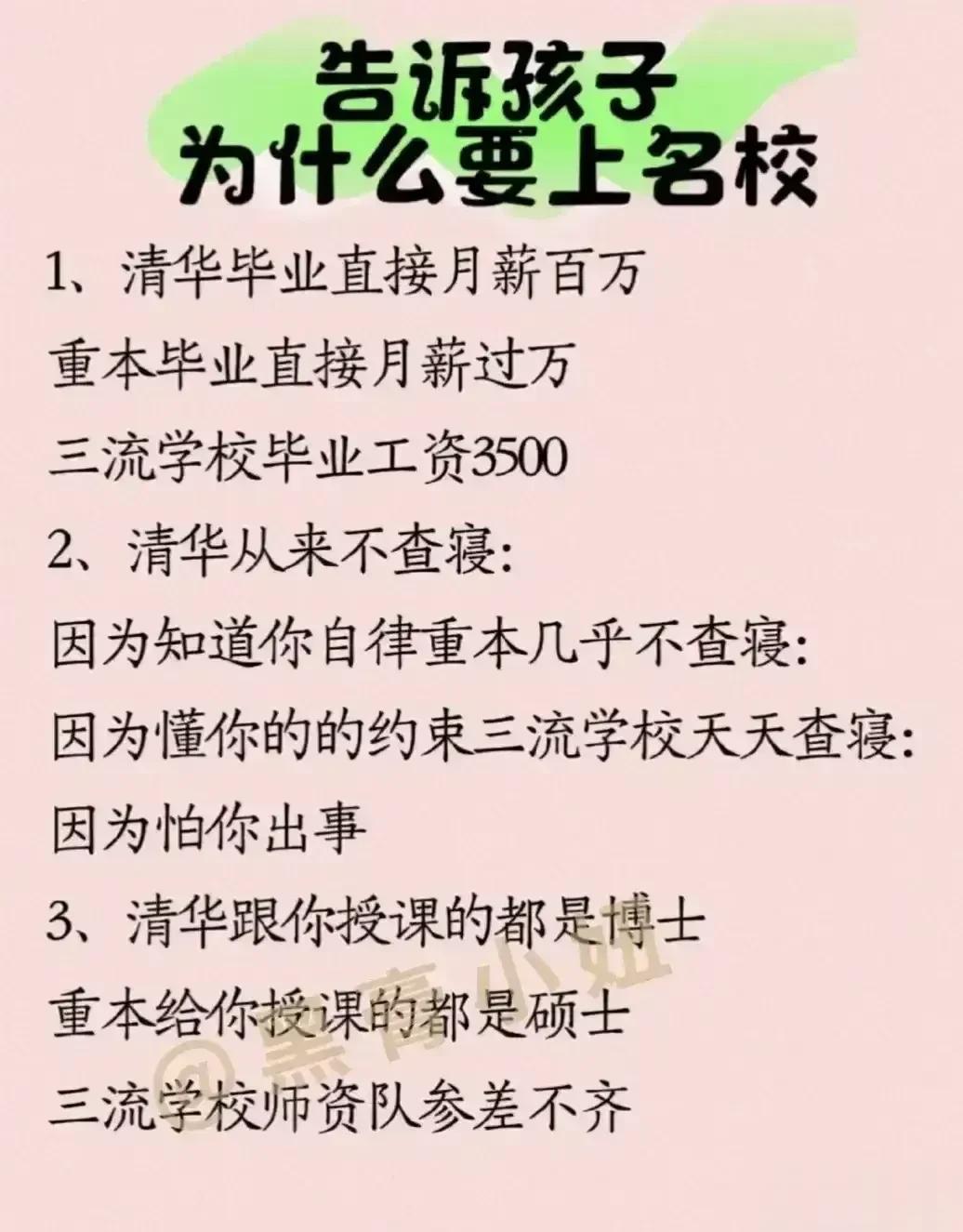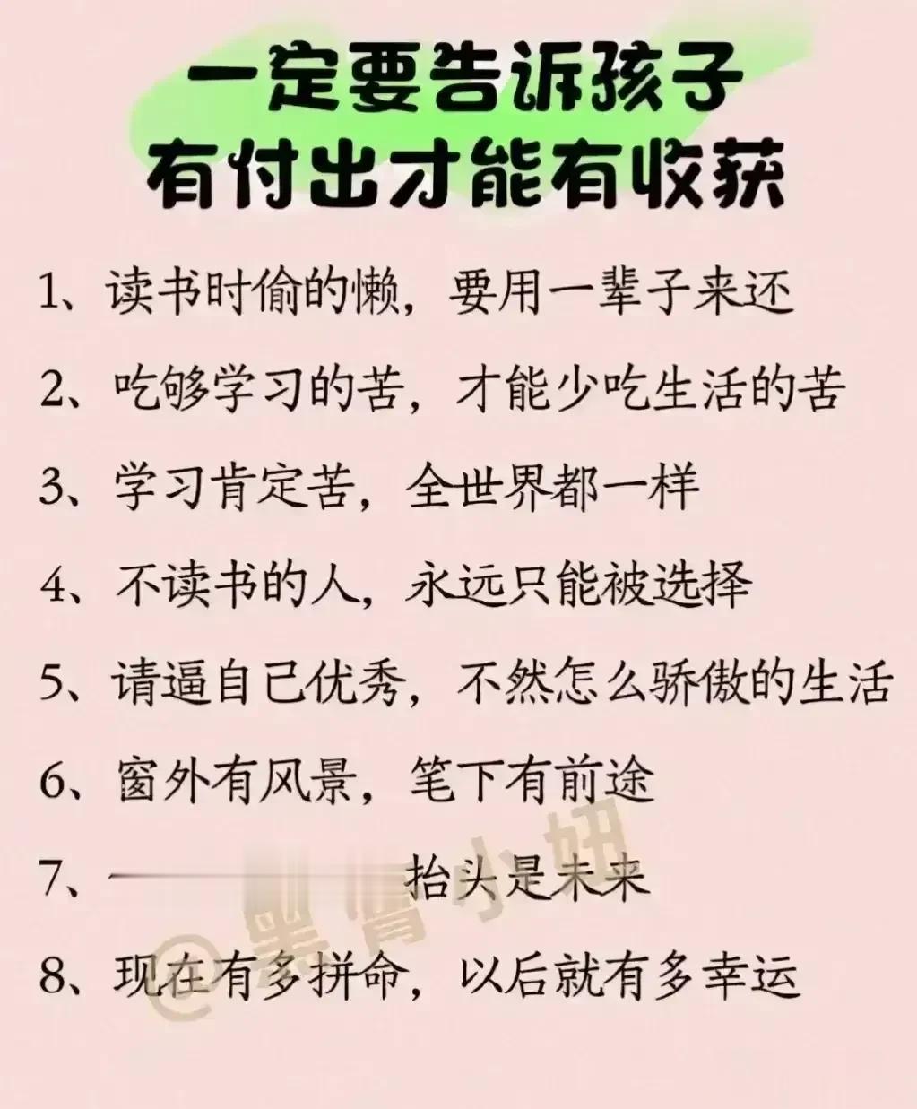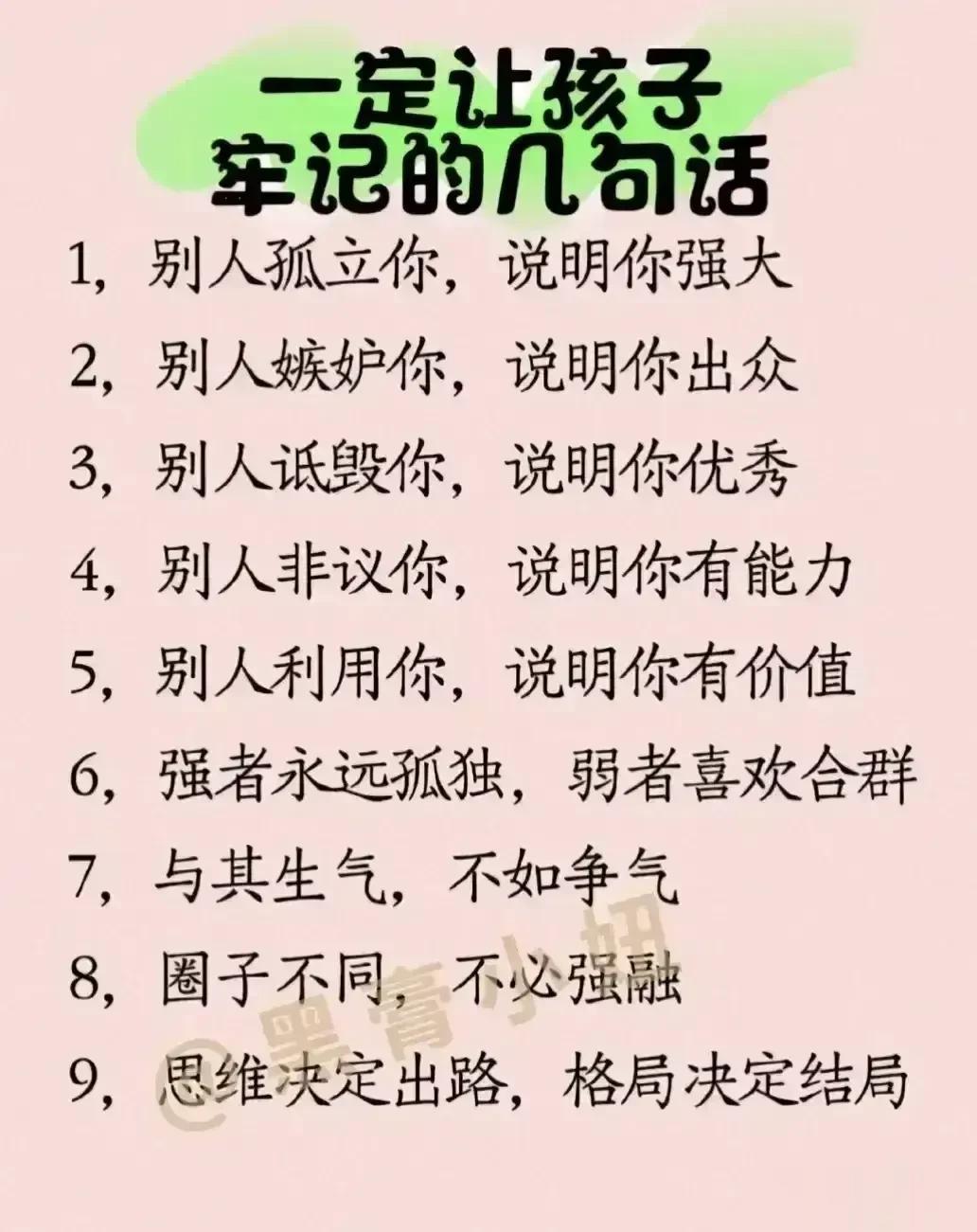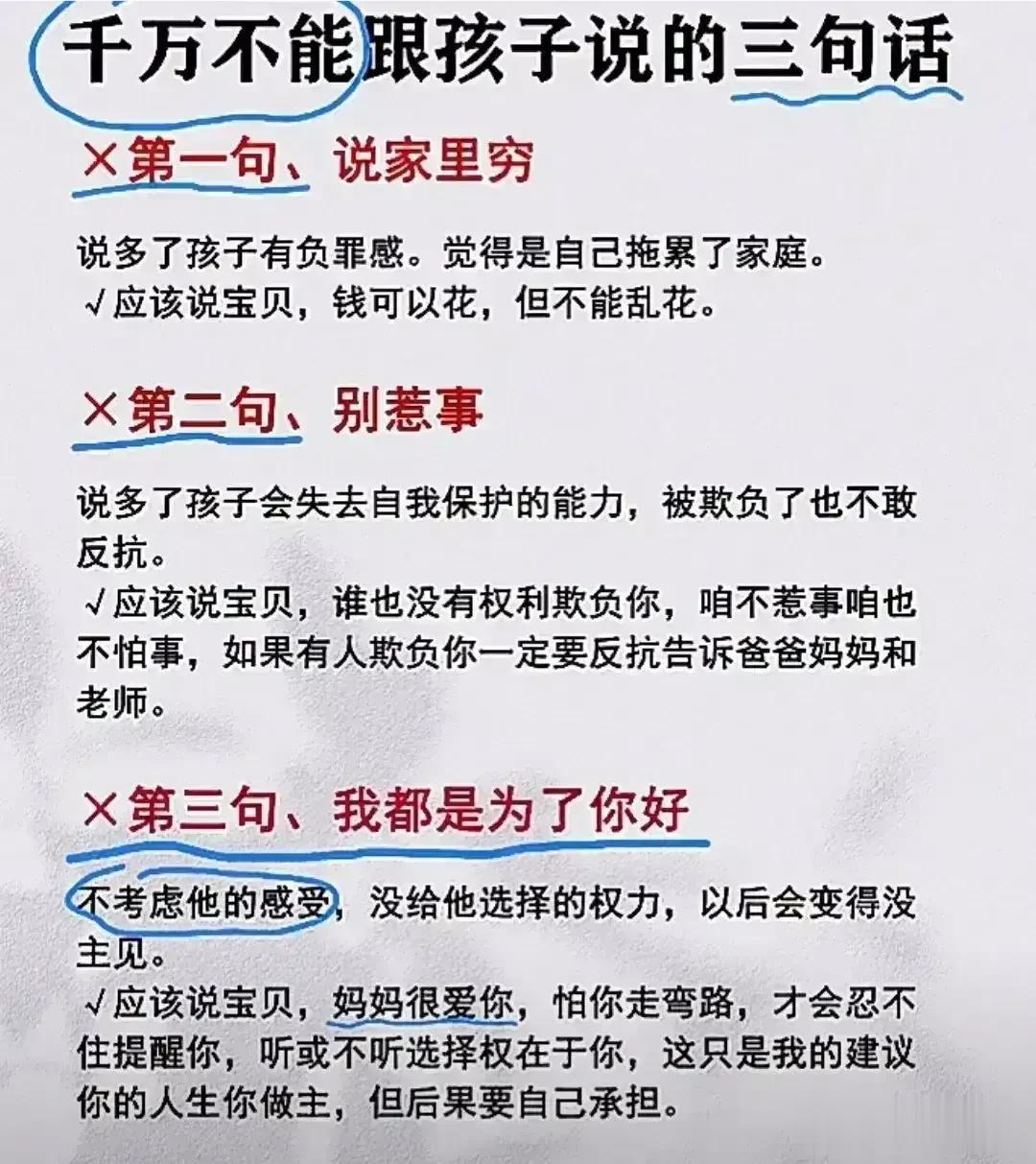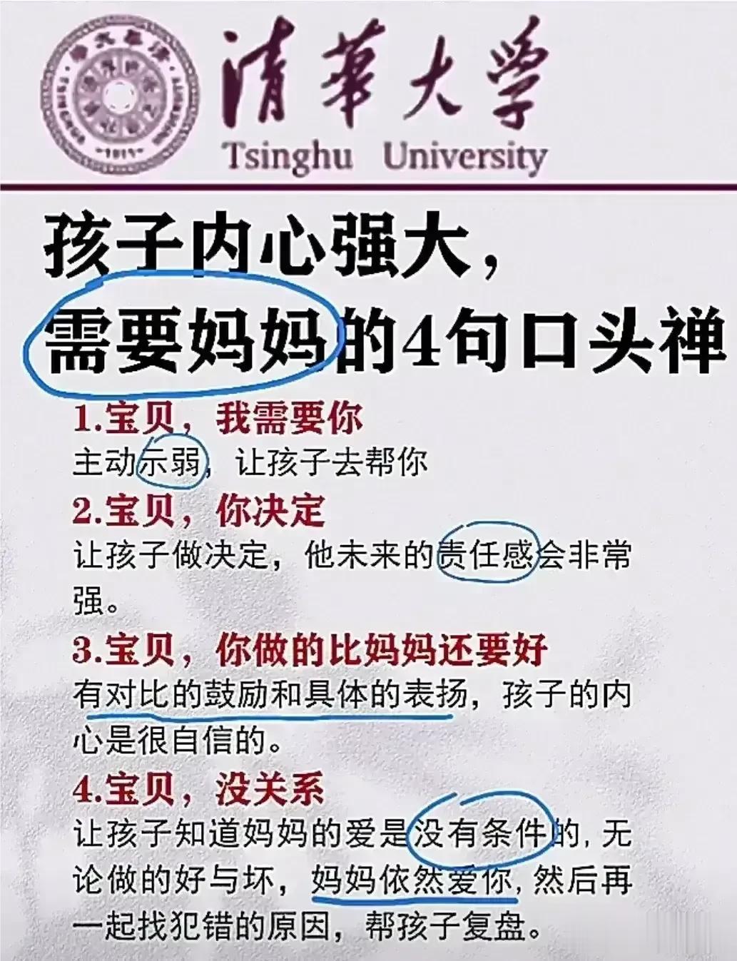 “太精辟了!!”无论儿女多大,父母要经常把这些话讲给孩子听,胜过千万房产和存款,不愧是清华博士妈妈的教育心得。看完之后,不得不说,原来父母对孩子的每一句都至关重要,能影响该子的三观,甚至一生,家有孩子的赶紧收藏保存下来,没事多在孩子耳边叨叨,能提升孩子的情商,为人处世,以及学习能力! 父母话术亲子沟通技巧