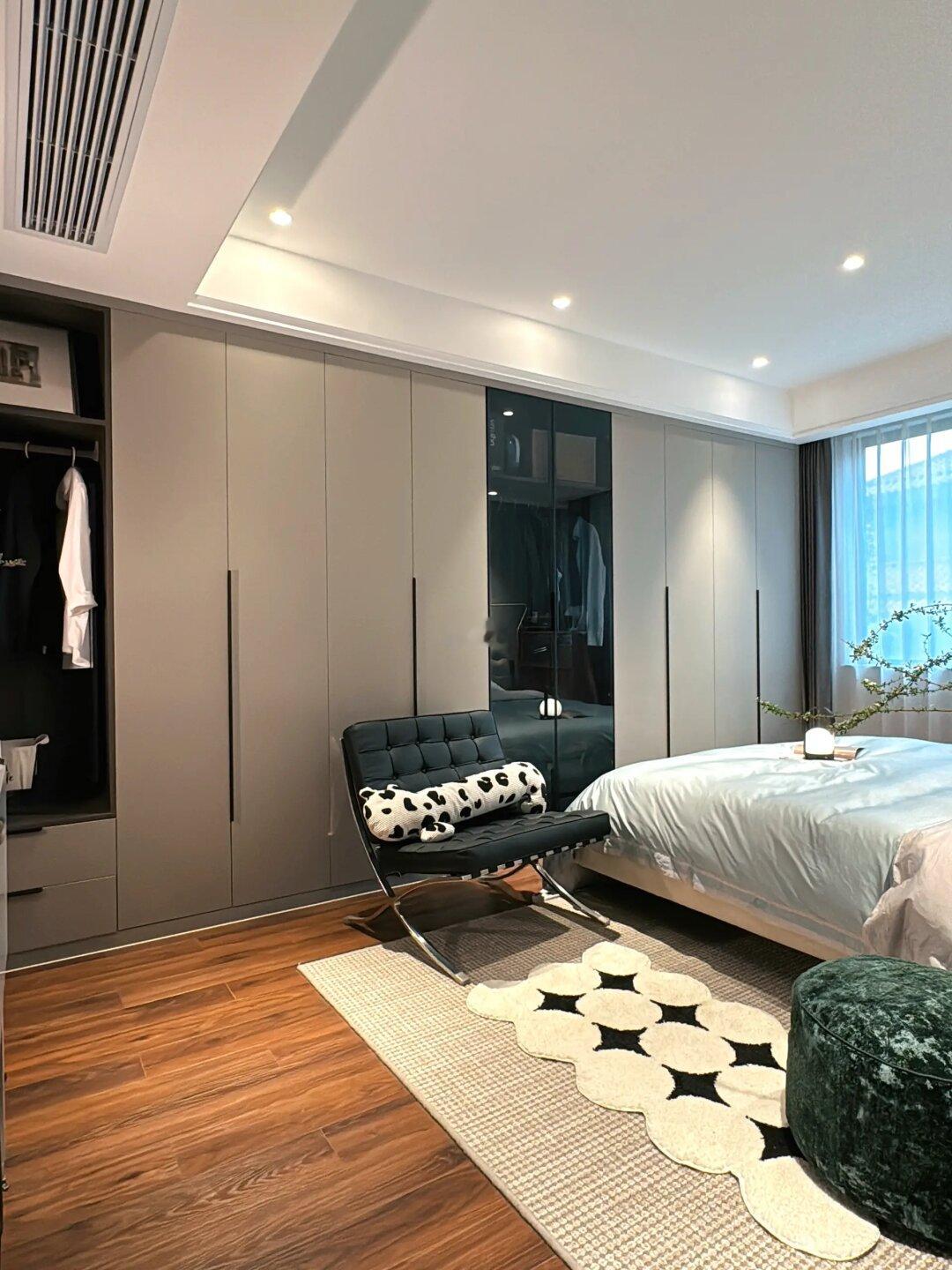 ✍️满墙衣柜要考虑床尾到衣柜距离,通常60以上比较舒适也不影响开门