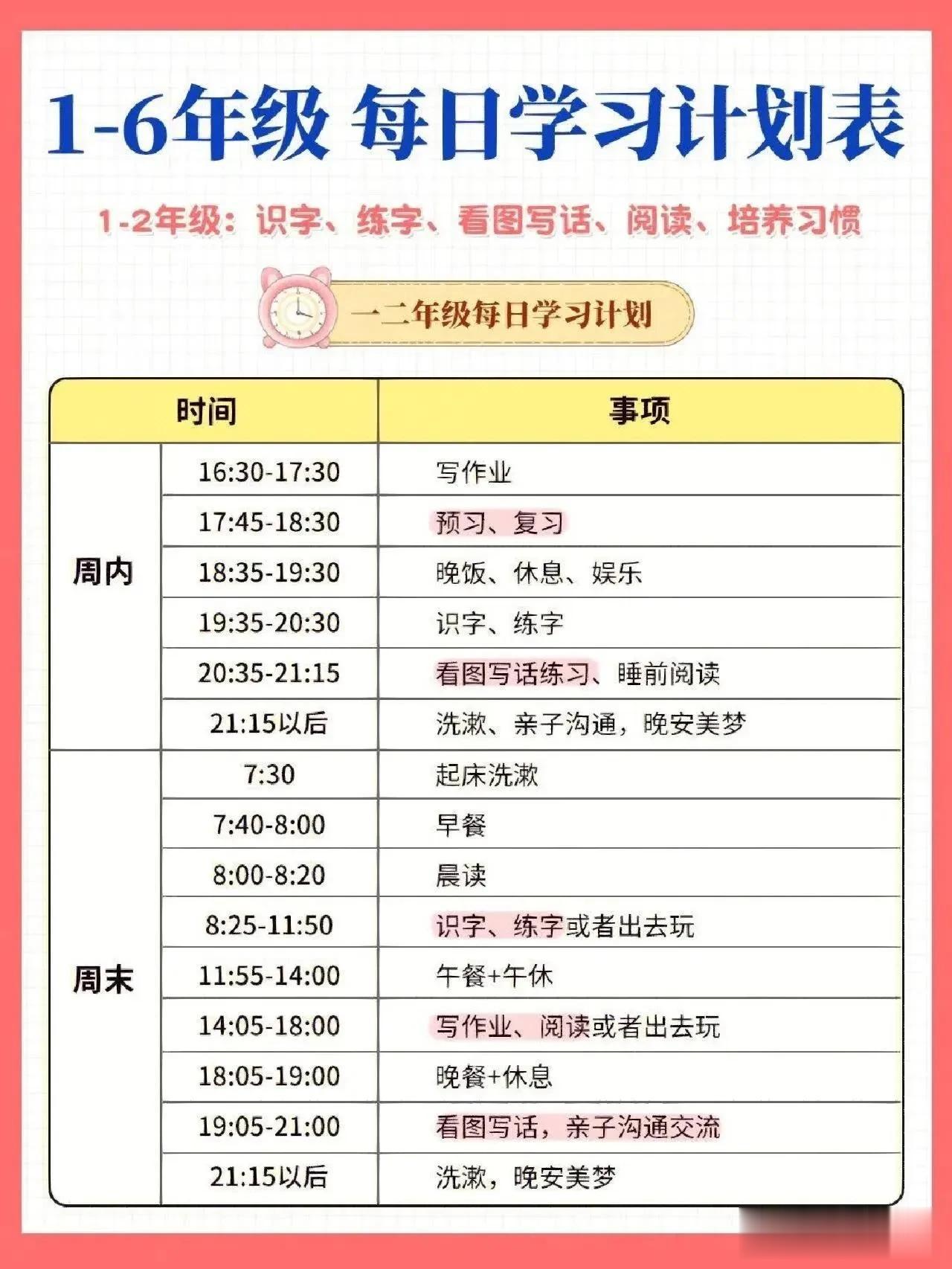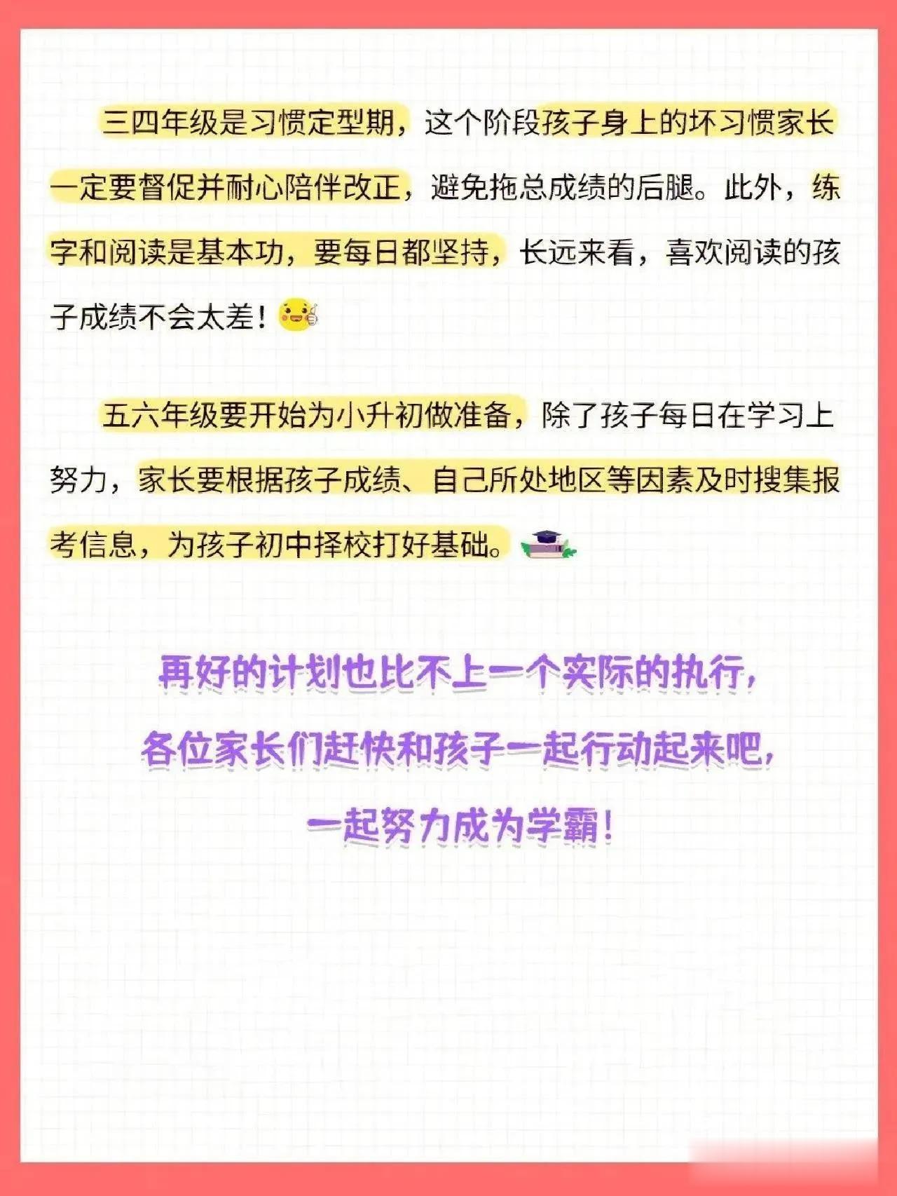 那些海淀妈妈们都在用的鸡娃神器!1-9年级的学习规划!看完之后,才明白,原来每一个学霸背后都有一个会规划的老母亲!!各位家长们赶快和孩子一起行动起来吧,一起努力成为学霸! 孩子的教育需要父母提前规划,前期给孩子多操心,后面孩子就会让父母更省心。坚持每天让孩子去执行操作,孩子的成绩想不好都难! 不懂怎么给自己孩子规划安排的,可以借鉴这个,也推荐下方这套漫画版沟通小技巧和学霸妈妈的修炼,沟通指南和规划指南全都有,让你轻松培养娃! 妈妈有规划孩子成学霸