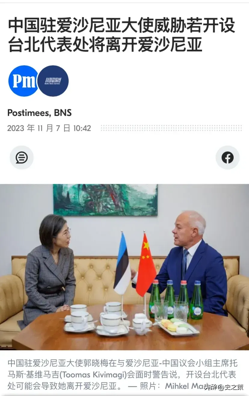 特别有意思的是,有些国家则反应迟钝,比如“波罗的海三傻”中的爱沙尼亚。当地时间11月7日,台湾省伪政府官员吴钊燮窜访爱沙尼亚,爱沙尼亚方面称:“我们允许台湾设立代表处,其实是为了和欧盟的外交政策保持一致。”我国驻爱沙尼亚大使郭晓梅立刻约谈爱沙尼亚-中国议会小组主席托马斯·基维马吉,称“如果爱沙尼亚允许台湾设立代表处,那么我将离开爱沙尼亚”。