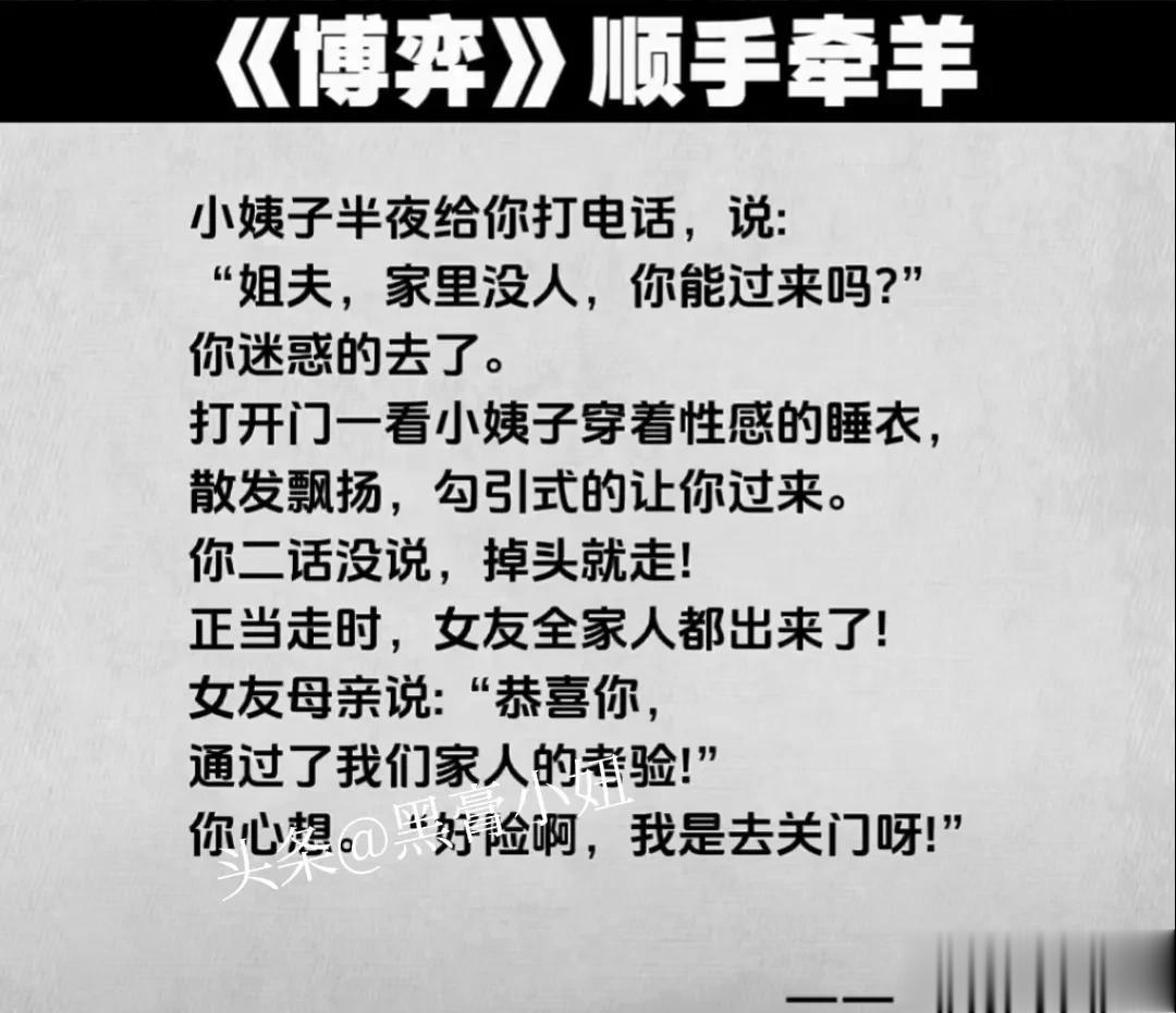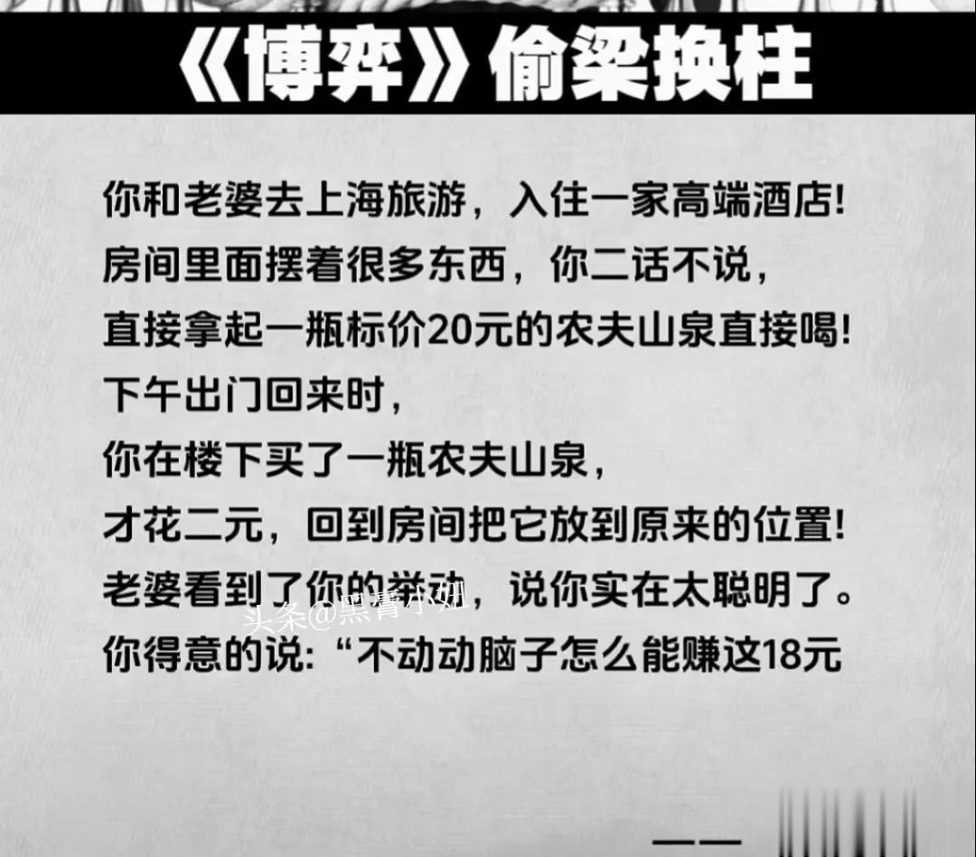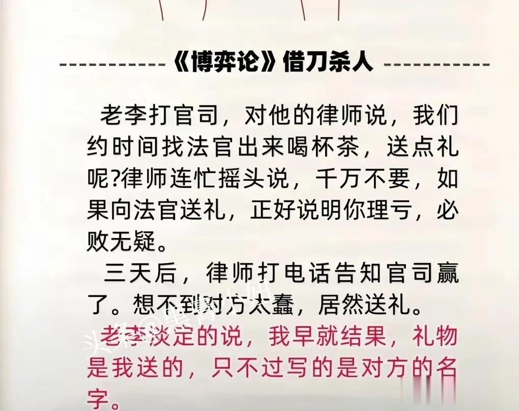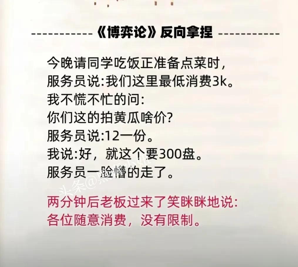 “太可怕了”!!那些轻松干掉竞争对手或者干掉一个人,原来拥有人际交往的博弈思维和智慧!怪不得能轻松拿捏各种场合!看完这些谋略智慧之后,简直惊掉你下巴!学会一二你也可以成为高手!什么顺手牵羊、瞒天过海、偷梁换柱、欲情故纵、以柔克刚、反向拿捏、控制人心等等,33个博弈策略,全方位揭秘博弈的秘密,拥有生活中的主导权! 想在职场商场越混越好,一定要懂点博弈思维!赶紧下方链接系统的学起来! 博弈论心理洞察术