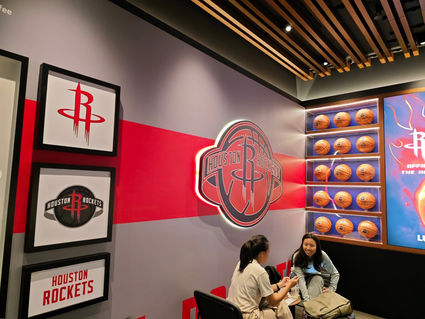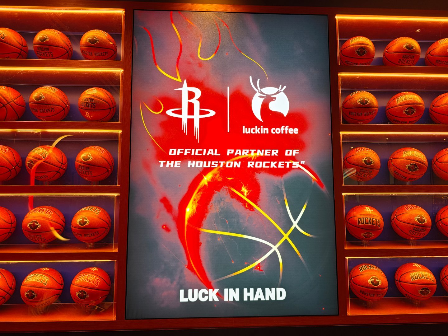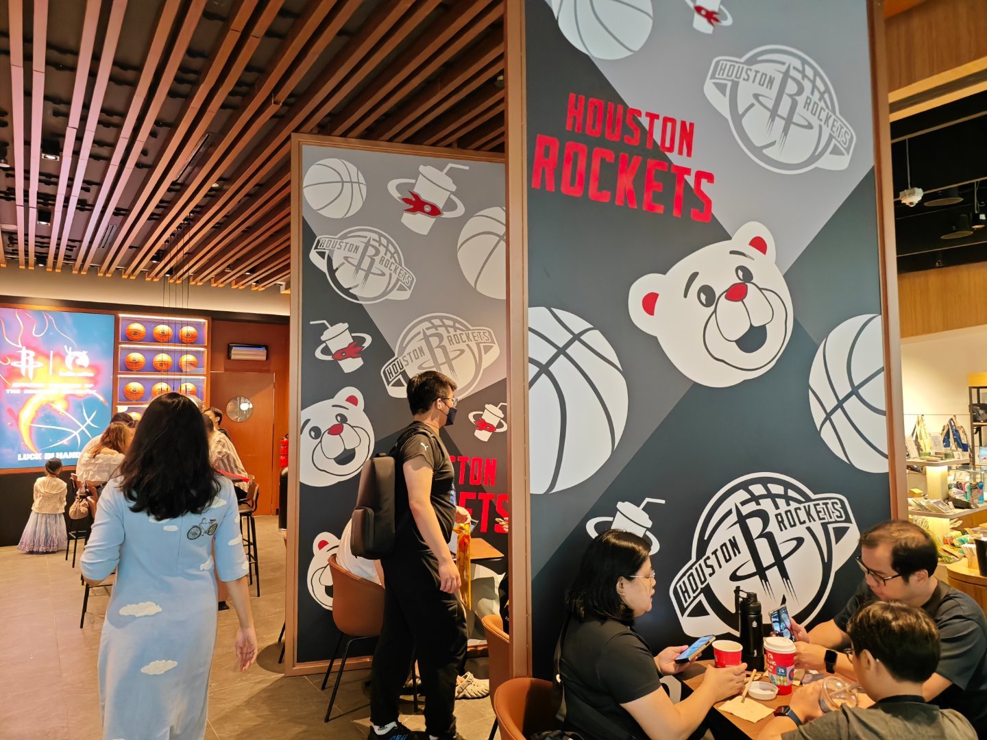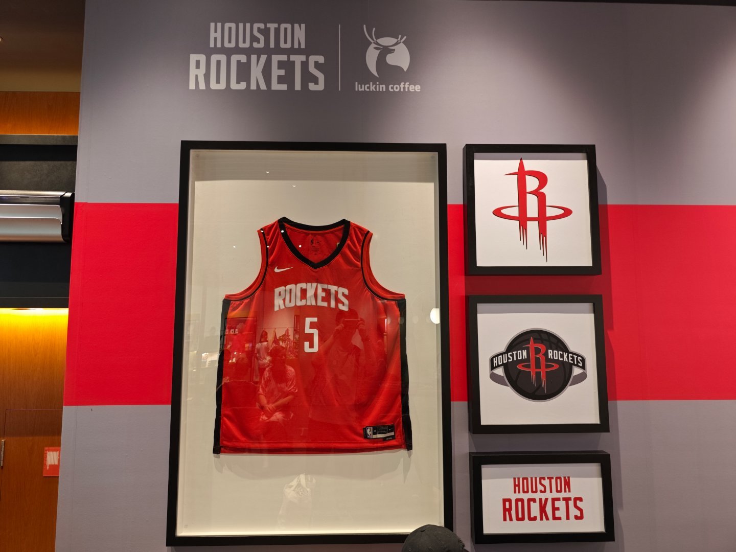瑞幸咖啡*休斯顿火箭主题店联名整体装修都融入了火箭队元素据说是全球首家火箭队咖啡