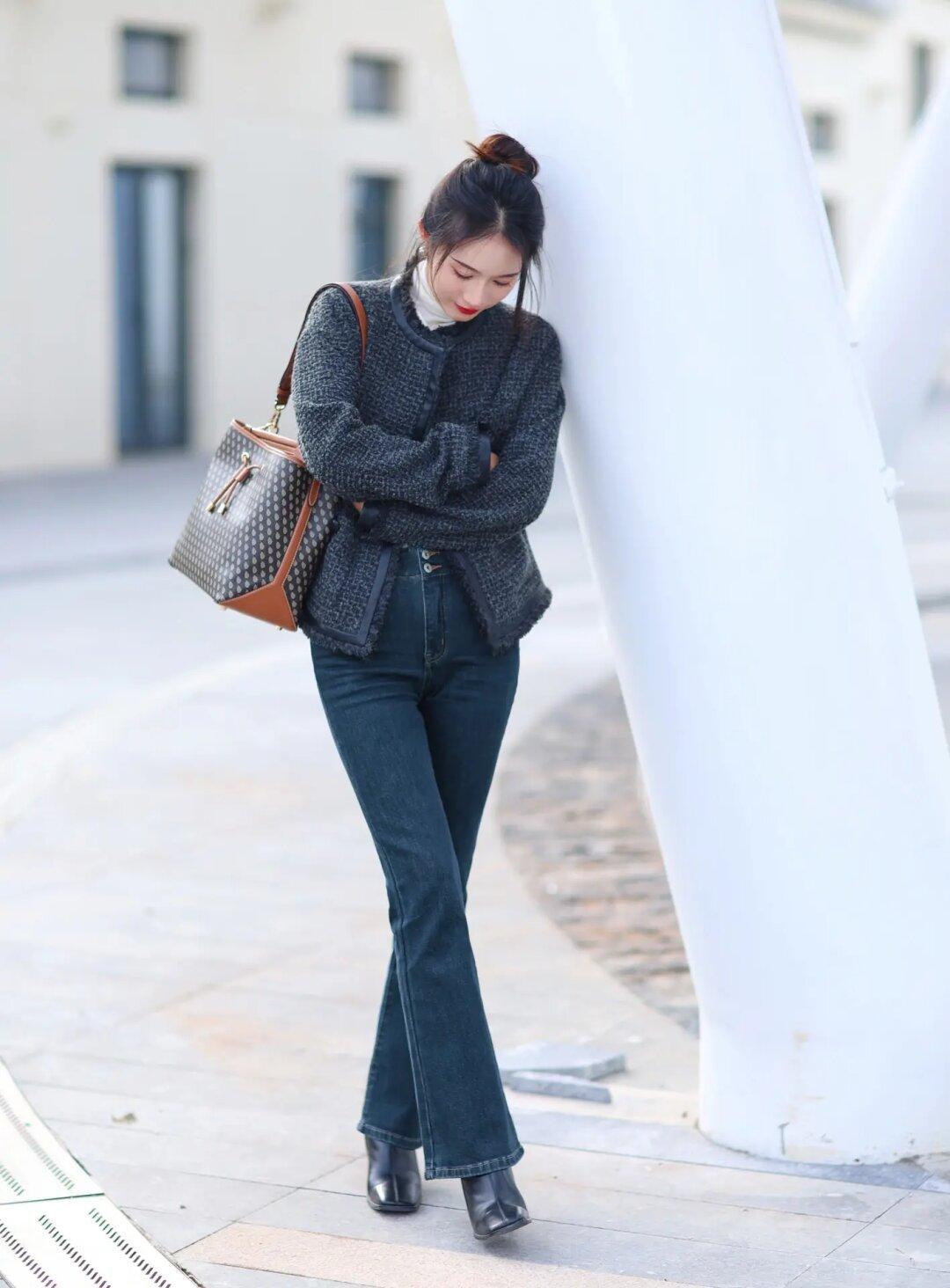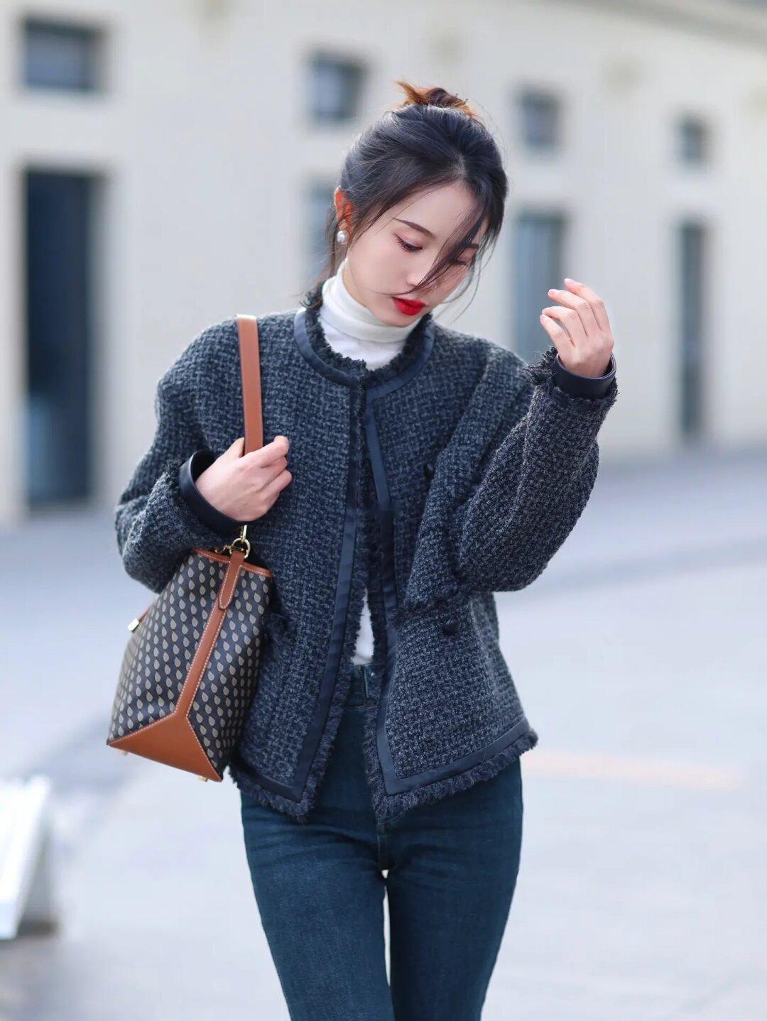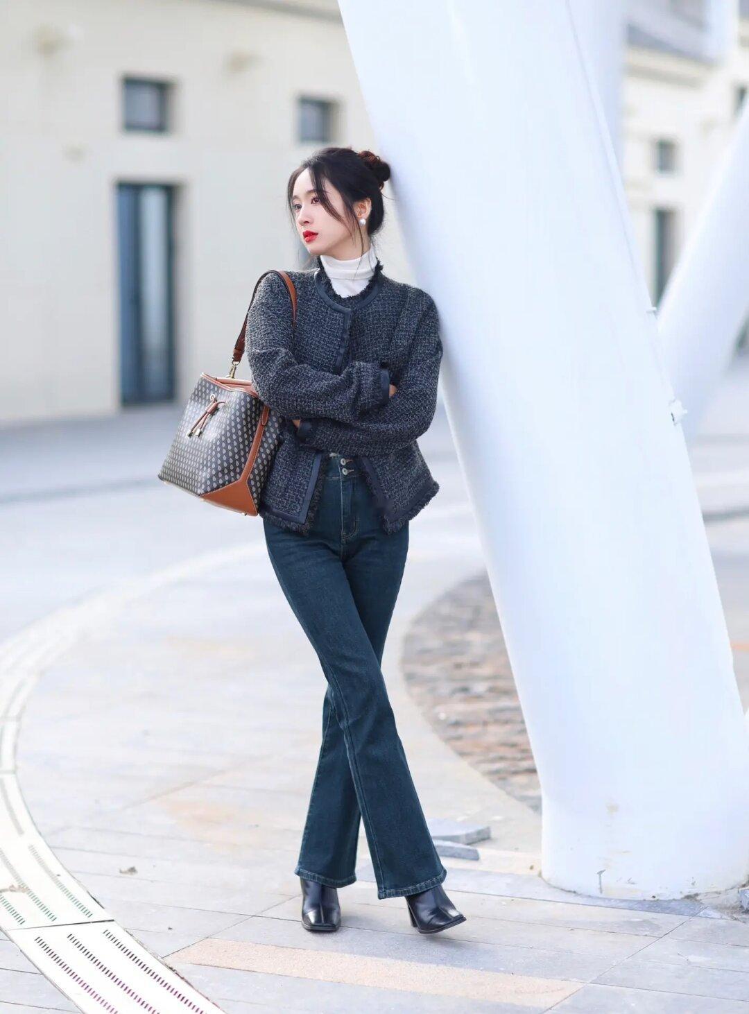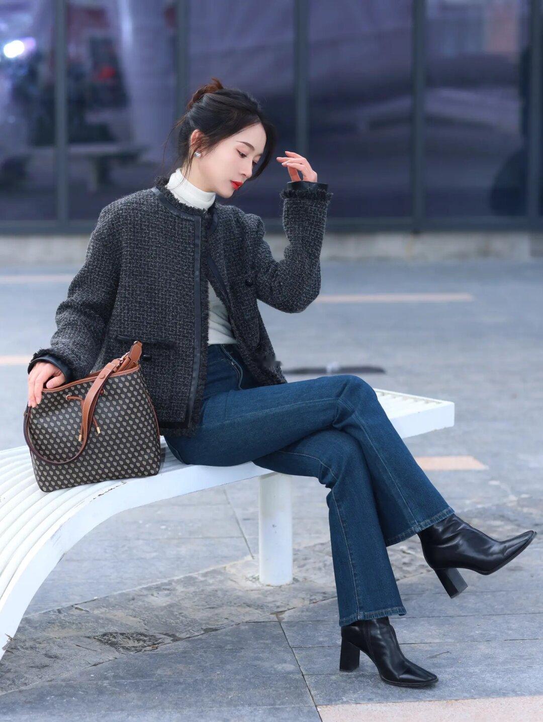 小香风➕高领打底➕牛仔裤 显瘦显高不露腿 温度和气质都要