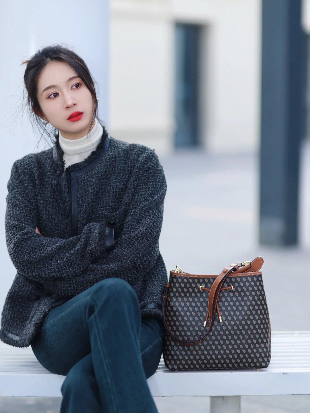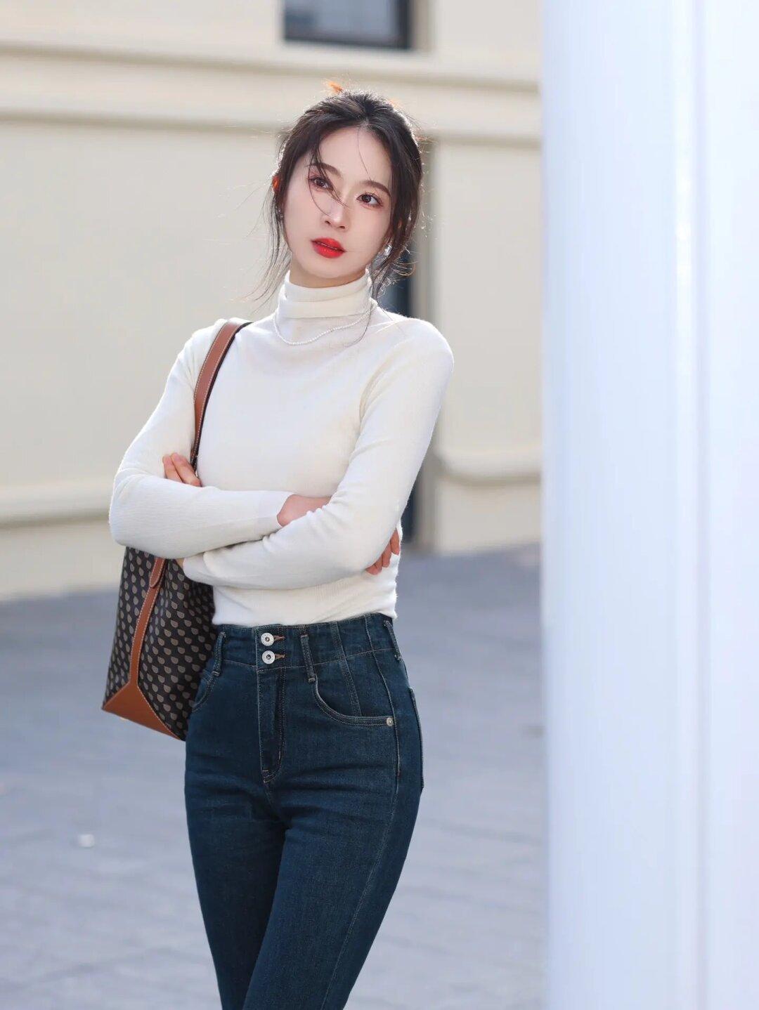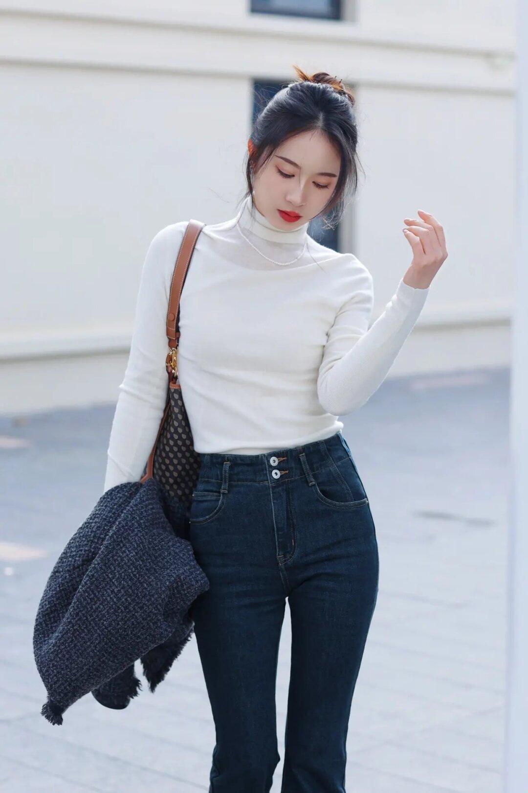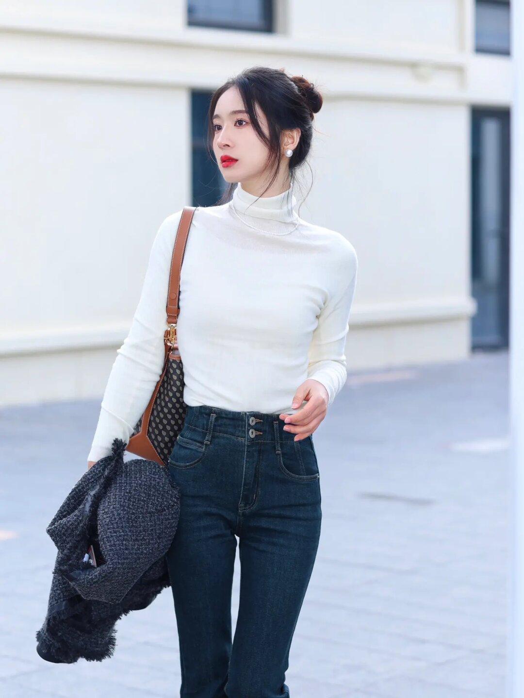 小香风➕高领打底➕牛仔裤 显瘦显高不露腿 温度和气质都要