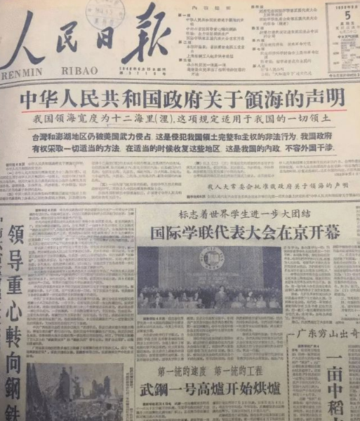 1958年,中国向世界发布声明,宣布领海范围为12海里。这为中国的海洋权益奠定了基石。然而西方国家立即大肆抨击这一声明,认为中国违反国际法。