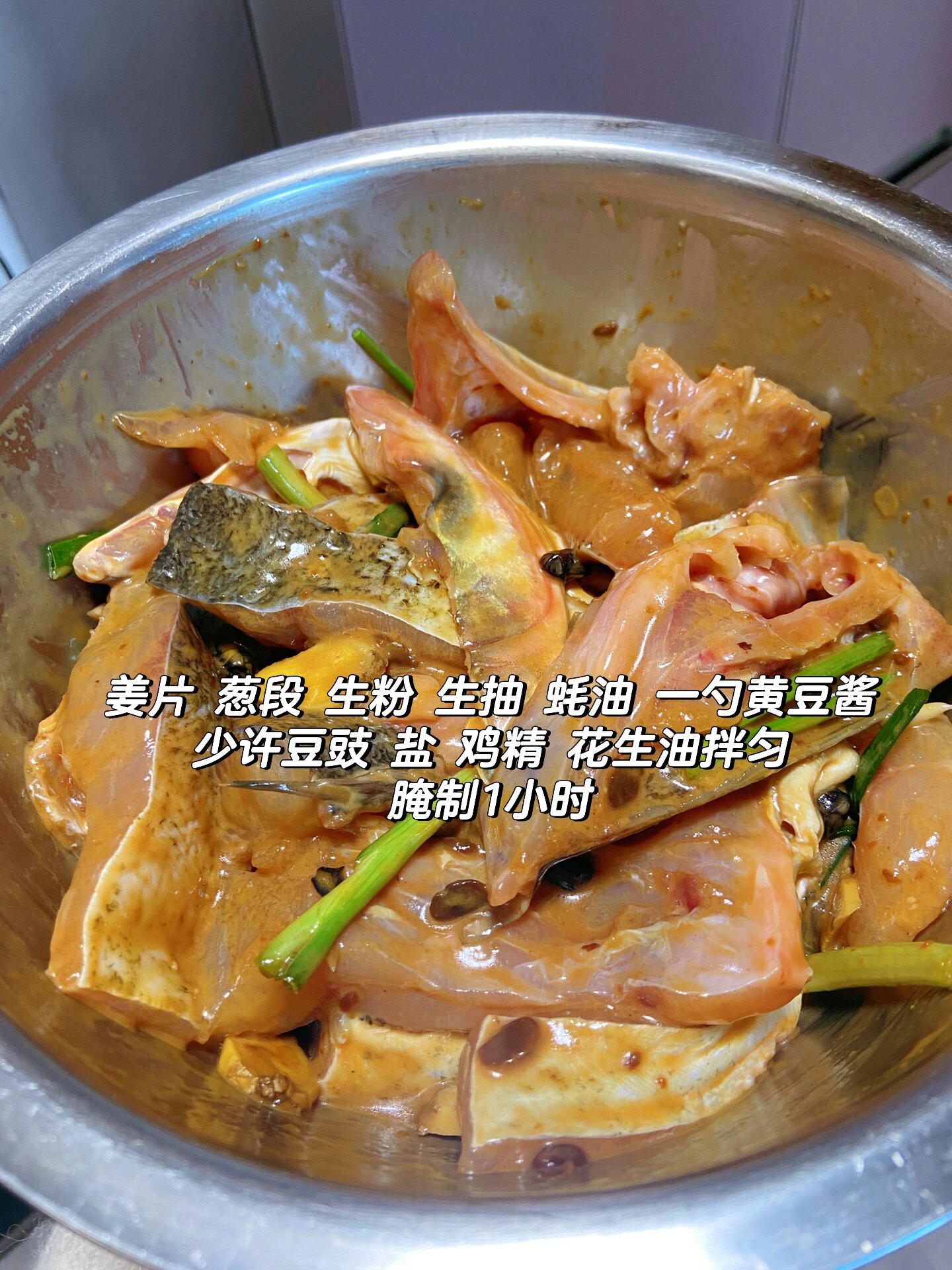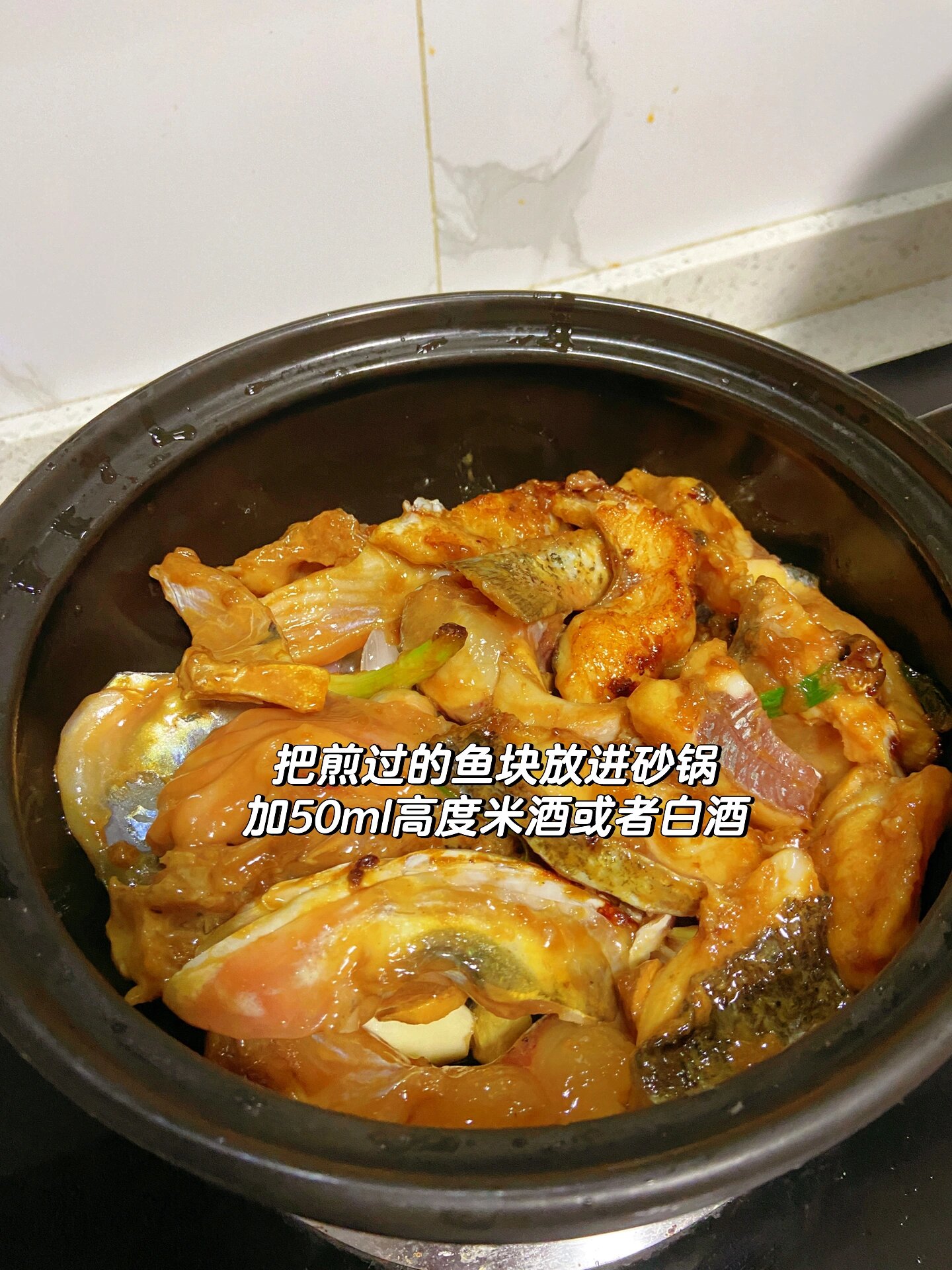 1. 鱼肉处理干净切块,加姜片 葱段 生粉 生抽 蚝油 一勺黄豆酱 少许豆豉 盐 鸡精 花生油拌匀,腌制一小时。 2. 锅里烧油到微微冒烟,把鱼块铺下去,不要翻动,煎至金黄。 3. 砂锅倒油铺上洋葱 姜 蒜,爆香,把煎好的鱼放进去,加50ml高度米酒,盖盖子中火焗5分钟,转大火焗3分钟,撒葱花辣椒即可。