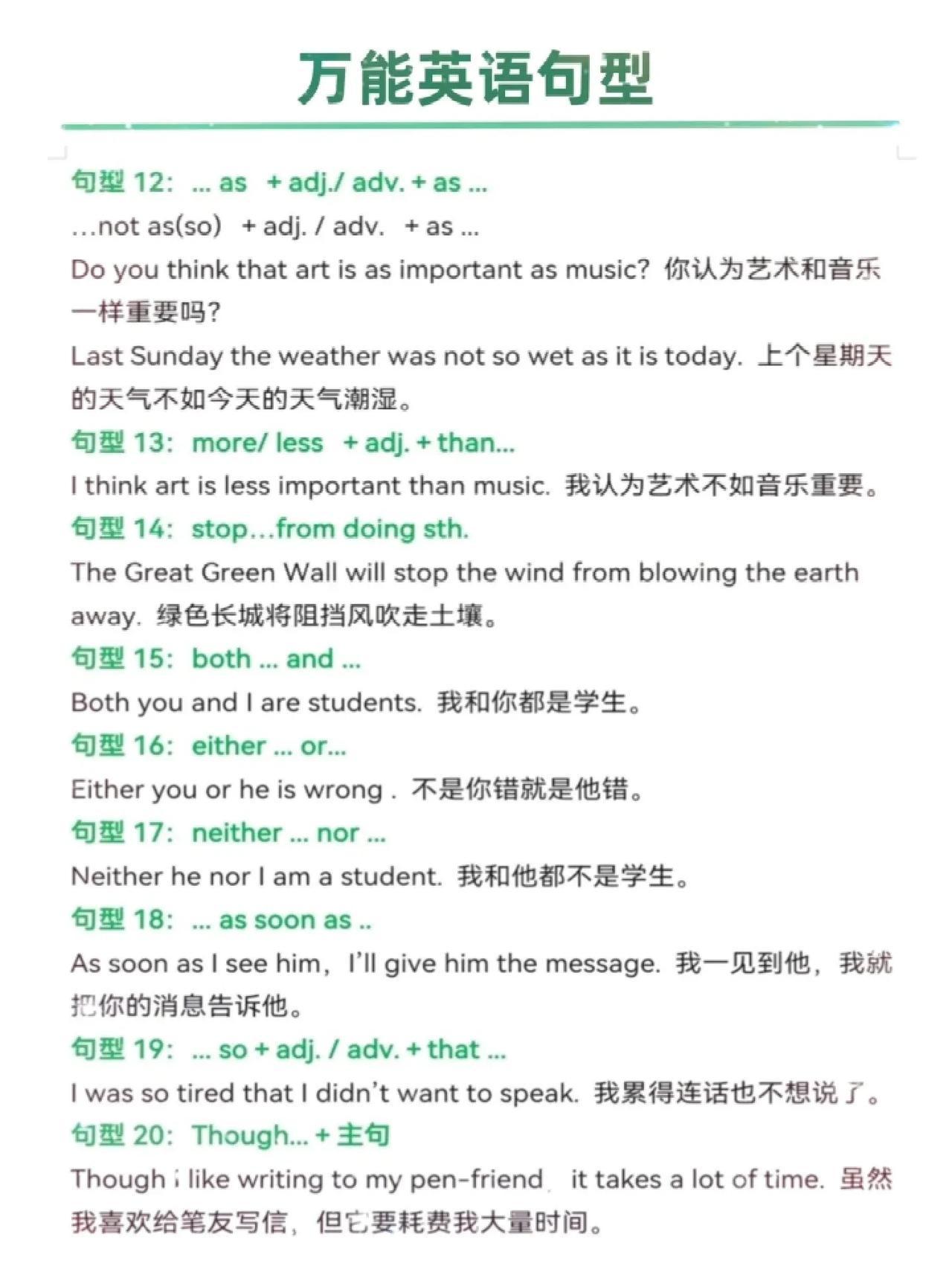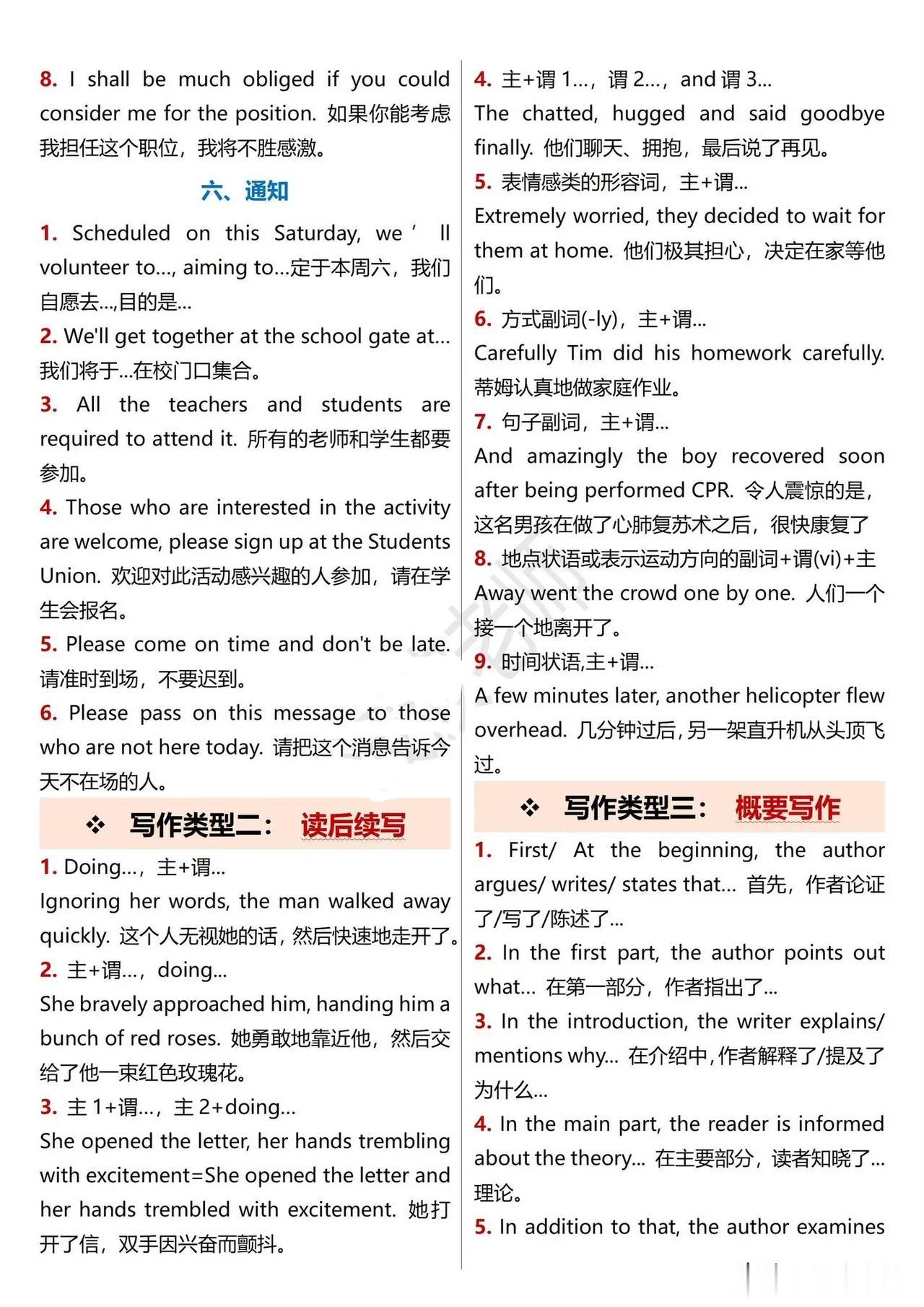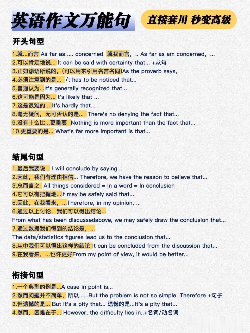 写作小心机,英语书面表达“天花板”,背会就能提分!高频句式+万能写作模板,写作时纵享丝滑,运用到作文中惊艳老师,高分跑不了!赶紧收藏! 英语作文也是有模板的,更多模板下方链接已经为你准备好万能的满分作文模板了。帮助学生深入了解模板的公式作用,更加方便使用。每个主题配有主题词汇和句型。帮助学生丰富写作素材,让学生在写作的同时积累词句,从而在写作中更加得心应手。 小学初中英语写作模板