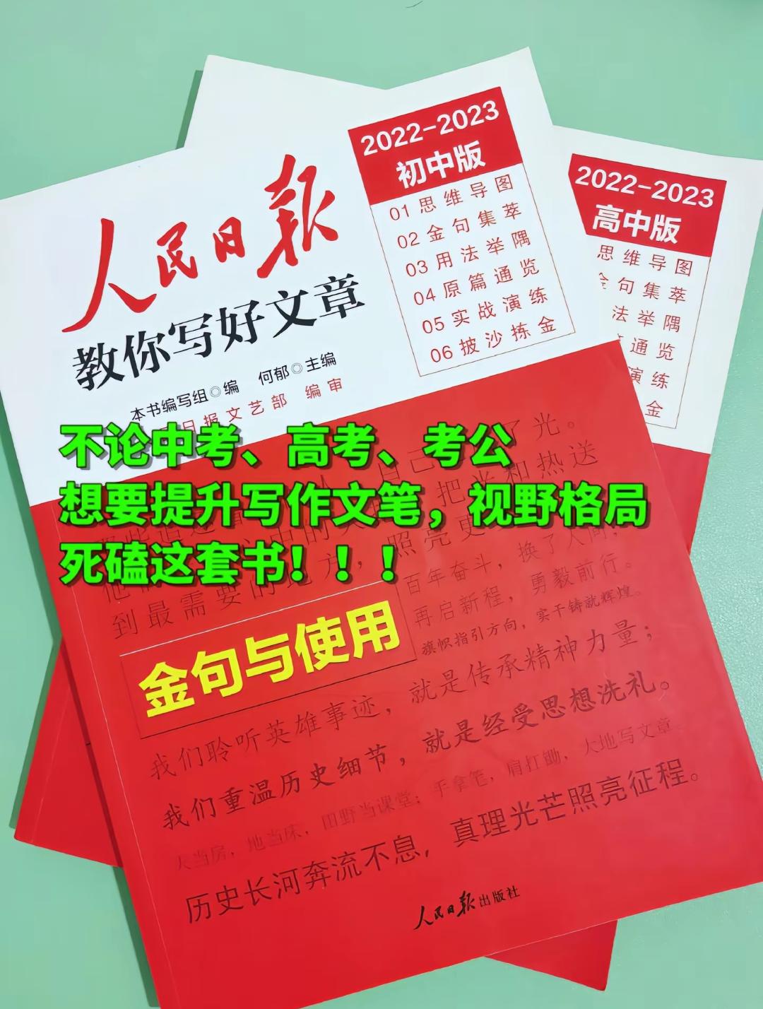 人民日报的金句,写进作文,你就是老师眼里最靓的仔! 想要提升写作文笔,视野格局,不论是中考,高 考,还是考公,狠狠的读《人民日报教你写好文 章》这套书!#写作技巧 #素材积累 #人民日报 #作文 #语文