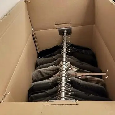就连搬家时的衣服,也是用的大号的纸箱子,挂着衣服搬的,可以说,衣服一点也没褶皱!