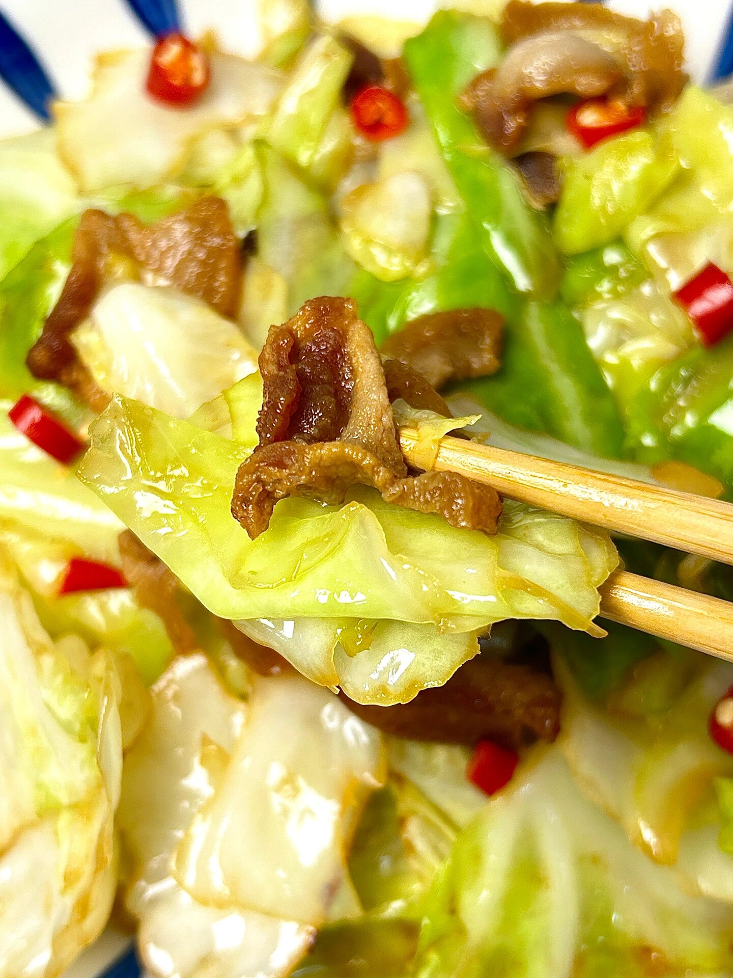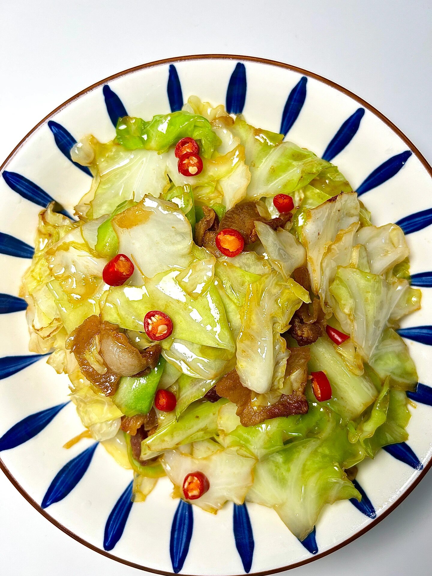 难怪火爆全网,巨好吃下饭的干锅手撕包菜 家人们好呀!今天做简单好吃的家常菜~ 干锅手撕包菜,真的太下饭了,巨巨好吃的,我一个人炫光一盘 做法也很简单,喜欢的姐妹们一起试试吧! 食材:五花肉,包菜,千辣椒,蒜片,葱段 做法:1、五花肉切片,包菜洗净撕小块! 2、锅里热油放葱段蒜片炒香,放五花肉翻炒变色,加一勺料酒,一勺生抽,一勺蚝油,放入包菜炒软炒软,加辣椒,一起翻炒均匀即可出锅啦!