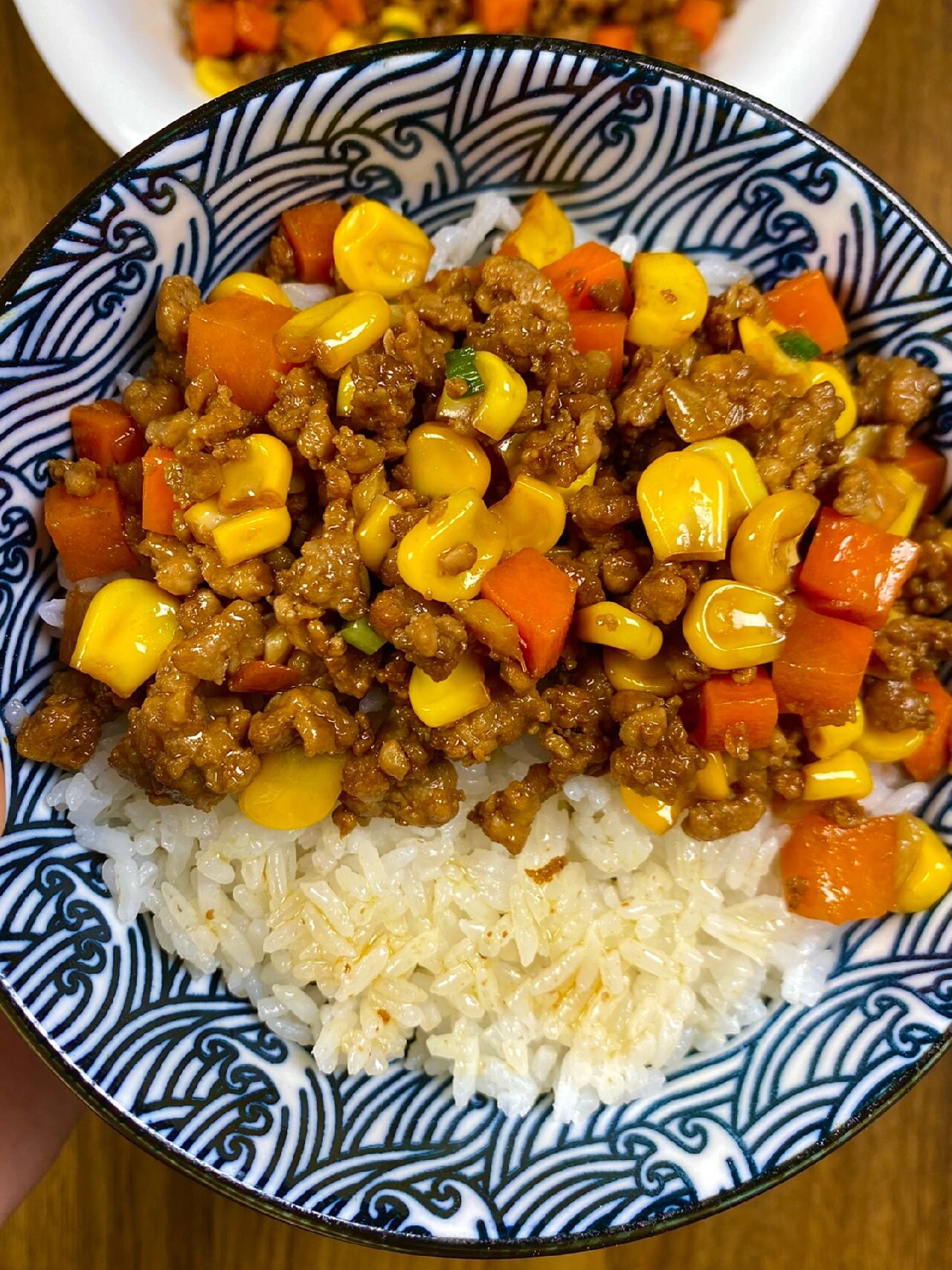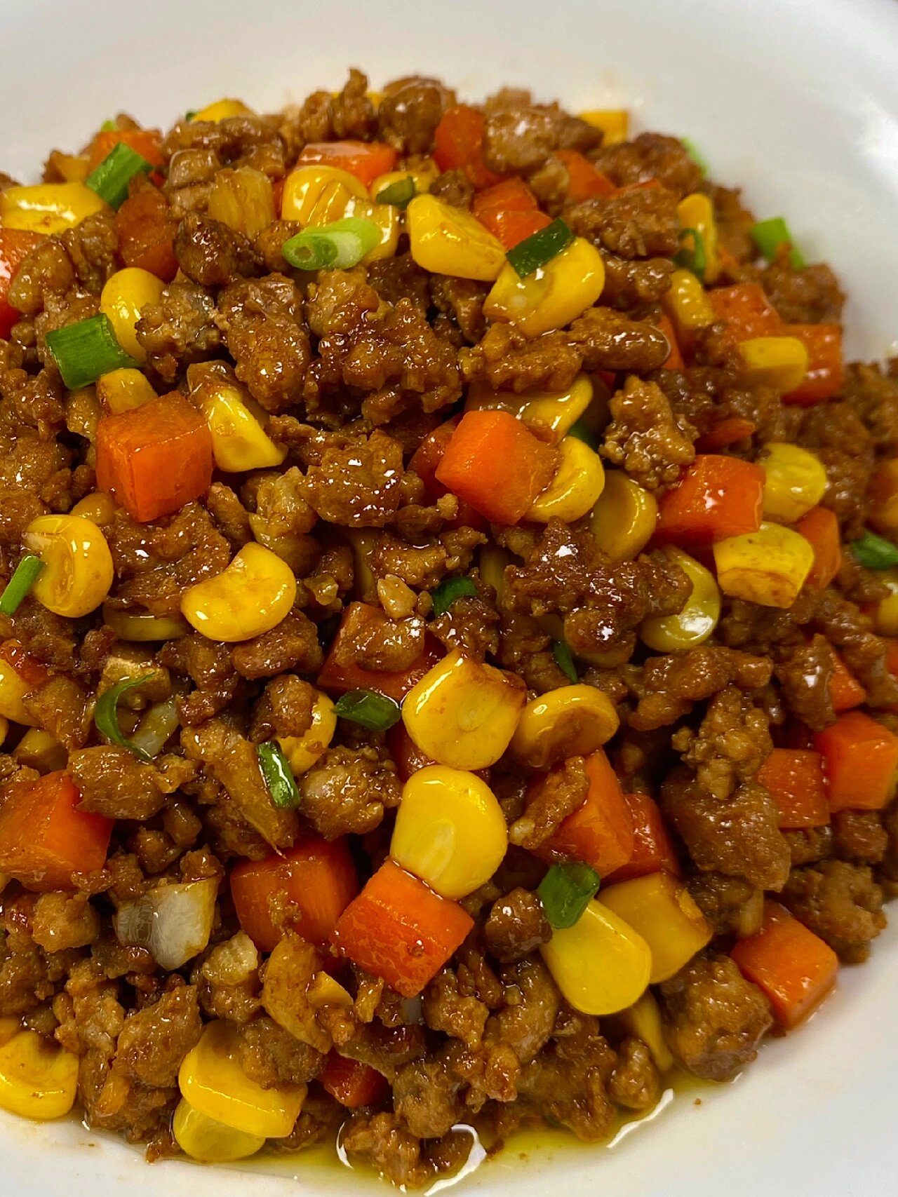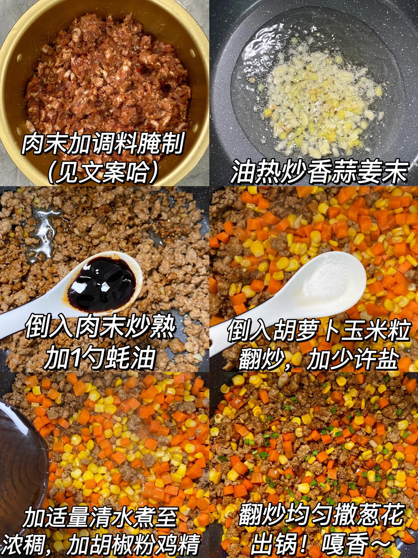 这道玉米粒炒肉末拌饭是真的香哇!! 炫了好几碗,好好吃!家人都夸好吃,清甜有嚼劲,玉米粒香甜可口,记得多煮点米饭哦 食材:肉末、玉米粒、胡萝卜、姜蒜、葱 腌制:肉末加1勺料酒➕1勺生抽➕半勺老抽、蚝油➕少许盐、胡椒粉➕1勺油抓匀腌制10分钟 做法如图所示哦~