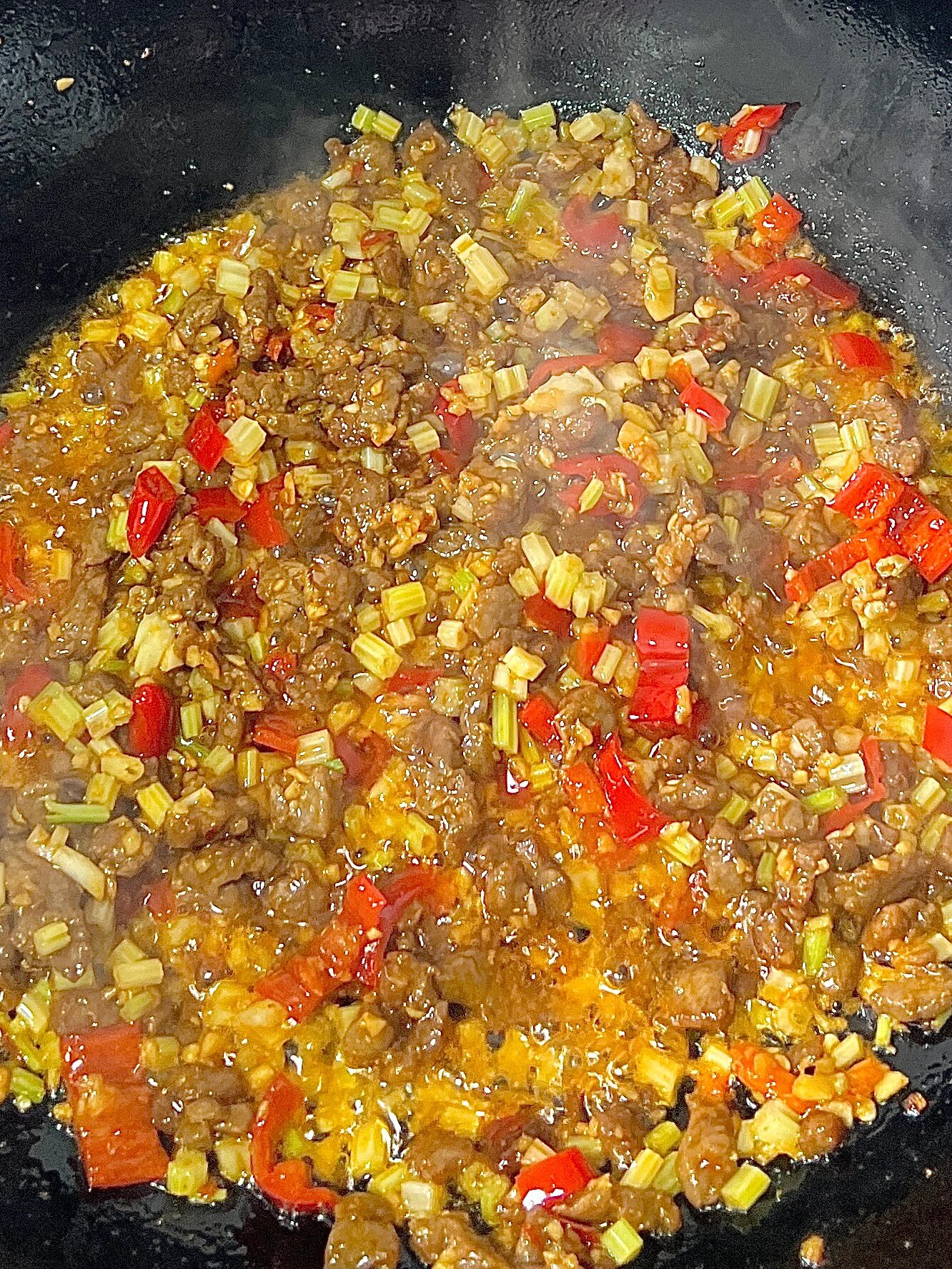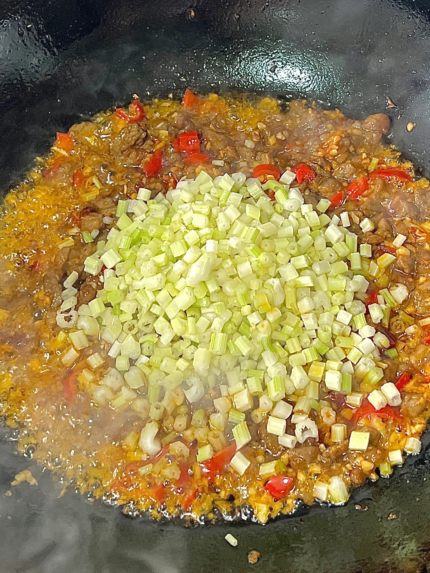这个和烂肉豇豆都是拌饭一绝!超级下饭的芹菜牛肉末,再吃都不腻,吃个两碗米饭没问题,操作步骤简单,食材也方便!加点泡椒炒,真的绝了~